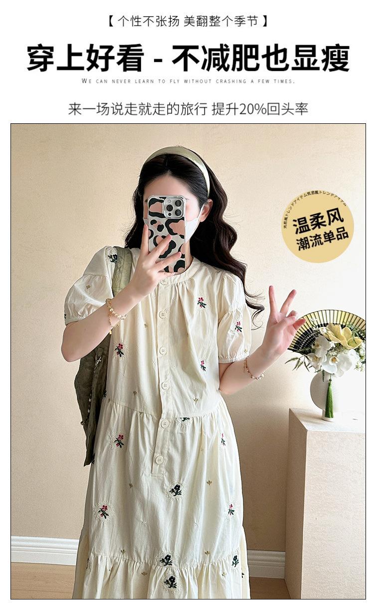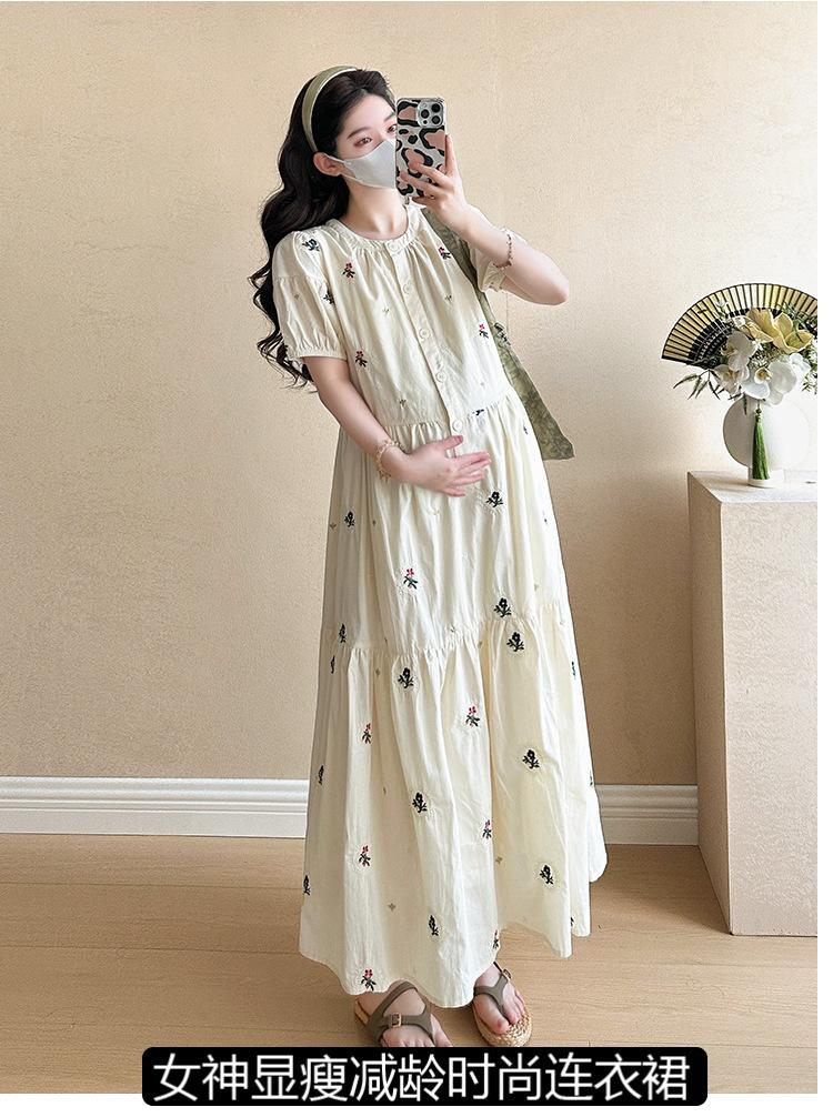 Ropa de Maternidad 2025 Verano Nuevo Estilo Diseño Francés Estilo Princesa Vestido de Maternidad Holgado con Aspecto Adelgazante