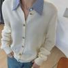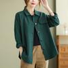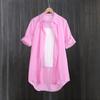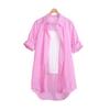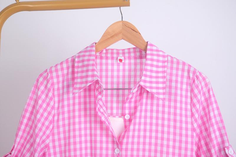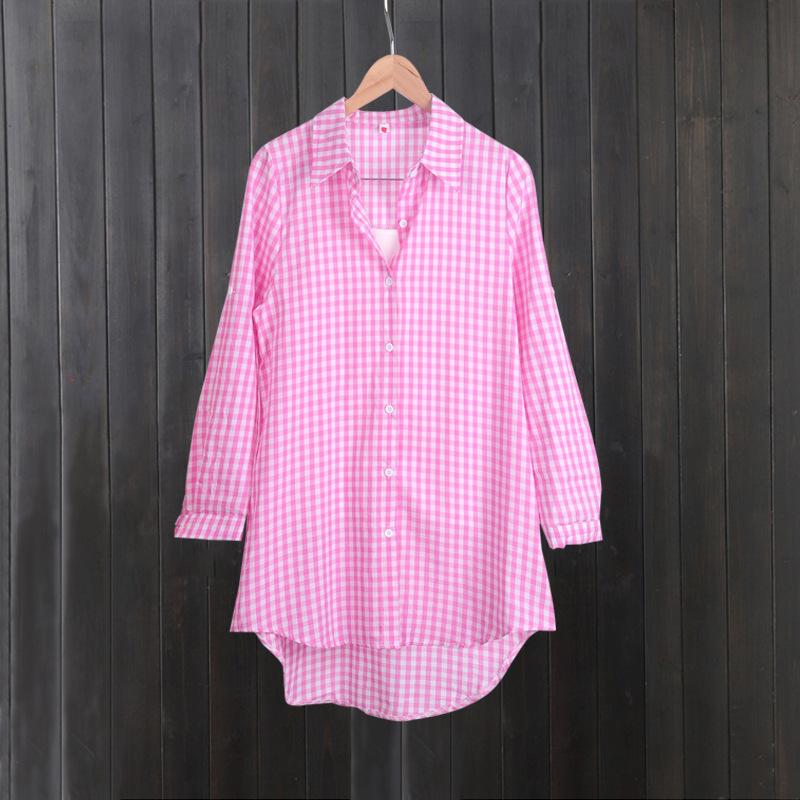 Camisa de Cuadros Transfronteriza para Mujer de Largo Medio Diseño de Moda Elegante Abrigo Delgado Cárdigan Camisa de Color Sólido