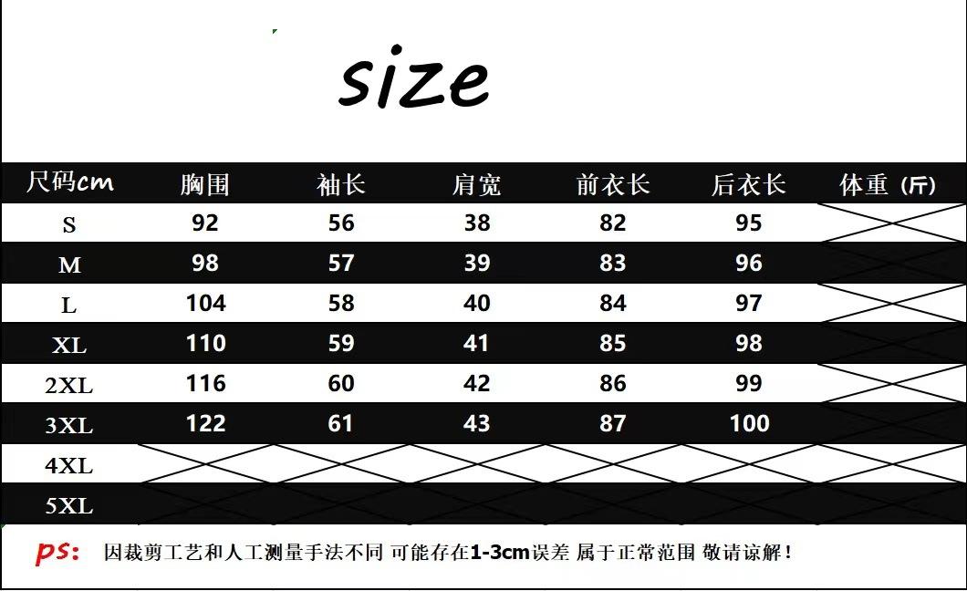 S, M, L, XL, 2XL, 3XL