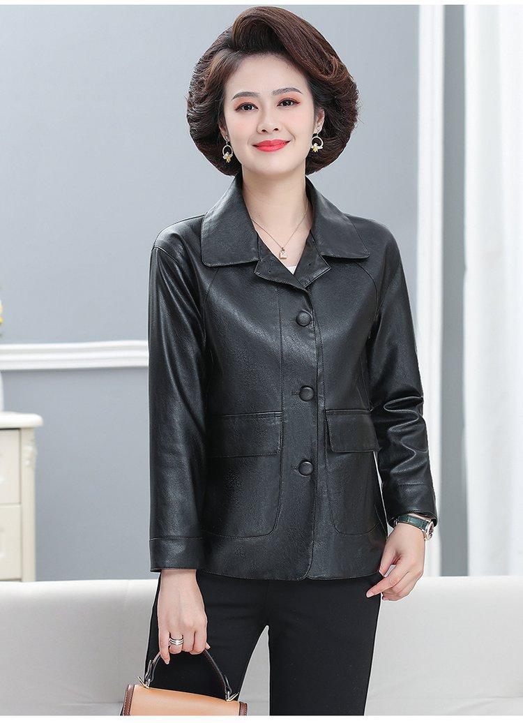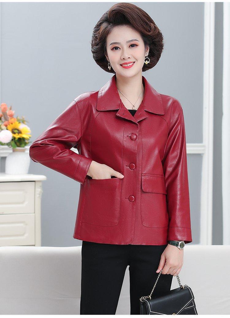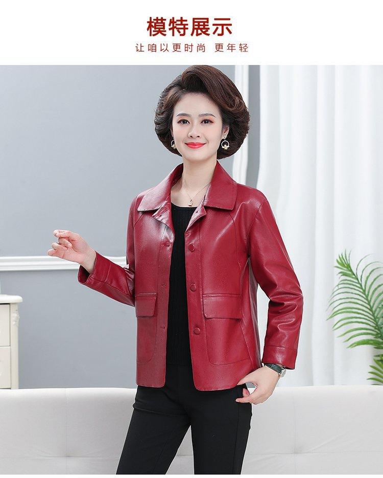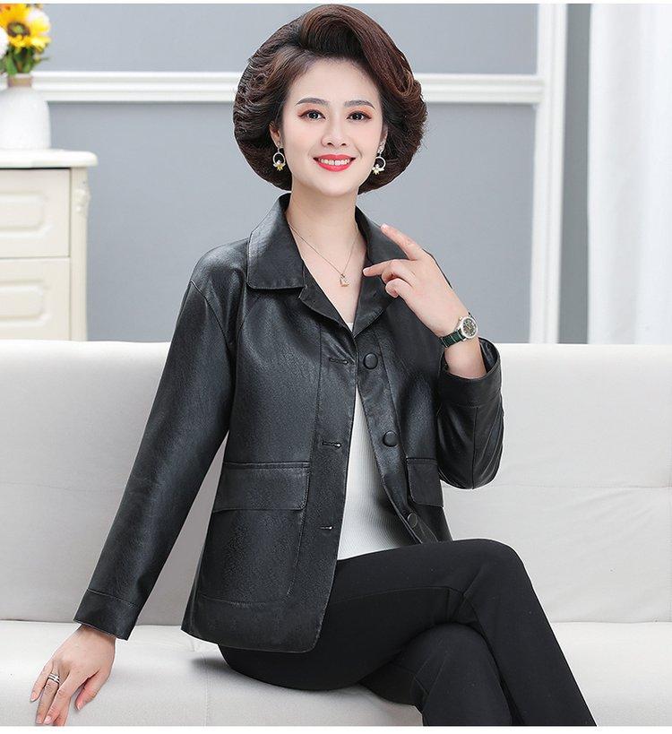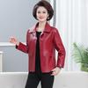 Elegante abrigo de otoño para mamá, abrigo de cuero PU de moda para mujeres de mediana edad y mayores, chaqueta corta de moda para primavera y otoño.