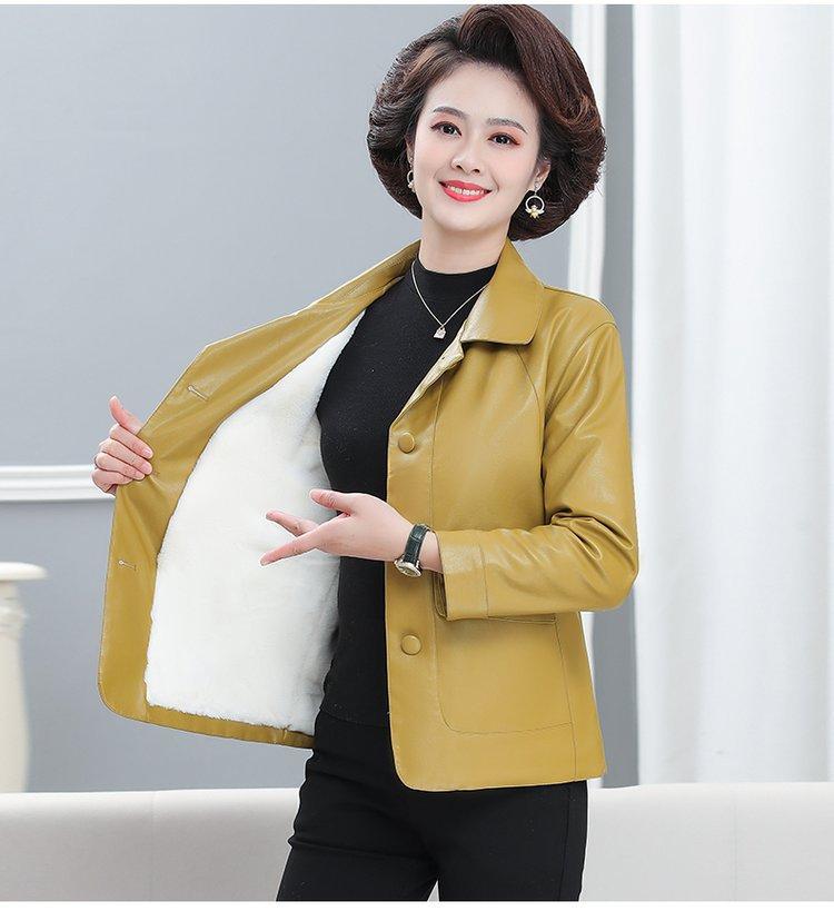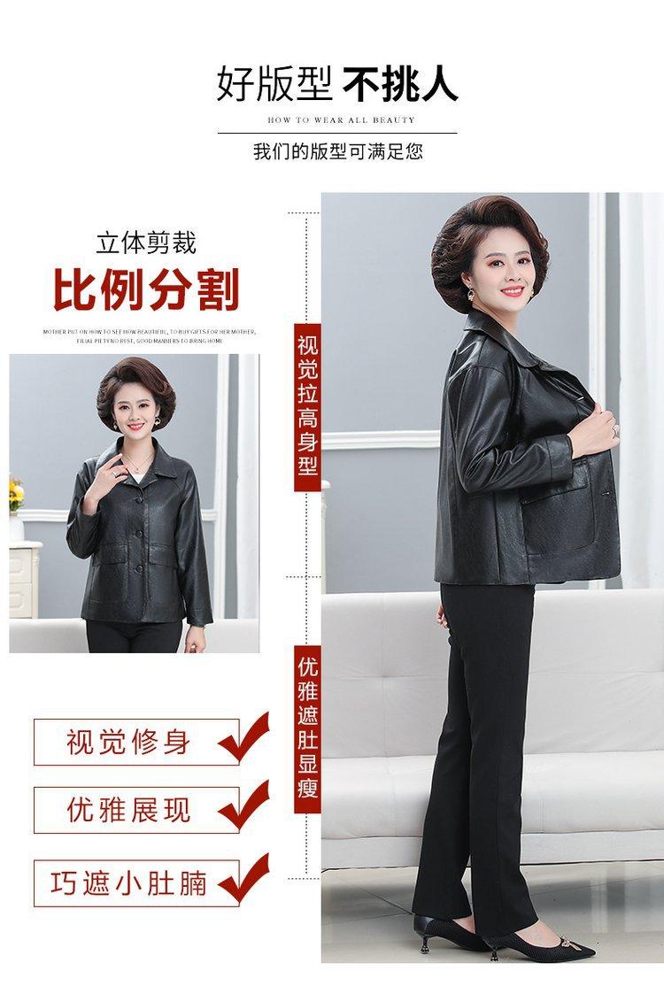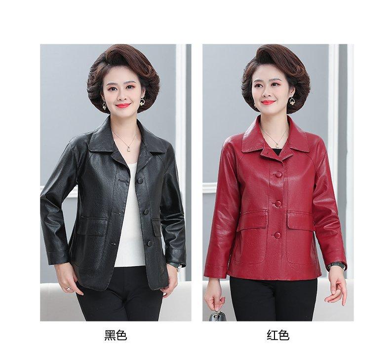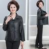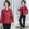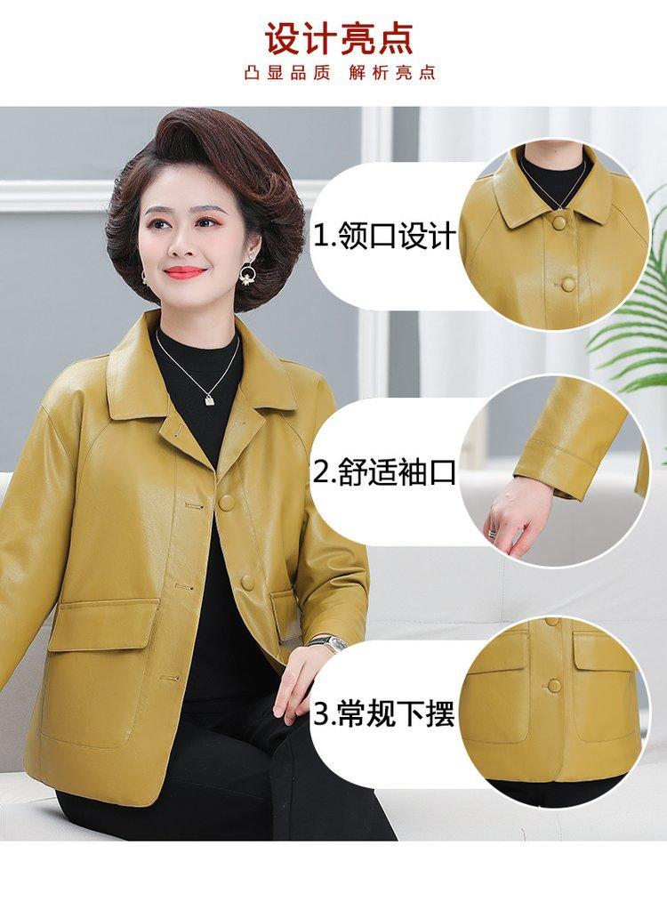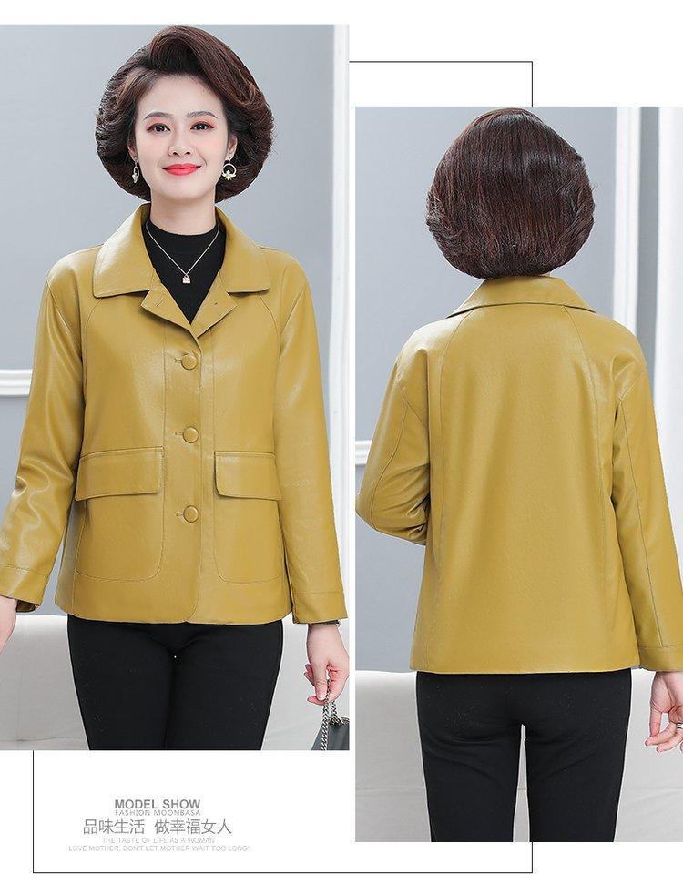 Elegante abrigo de otoño para mamá, abrigo de cuero PU de moda para mujeres de mediana edad y mayores, chaqueta corta de moda para primavera y otoño.