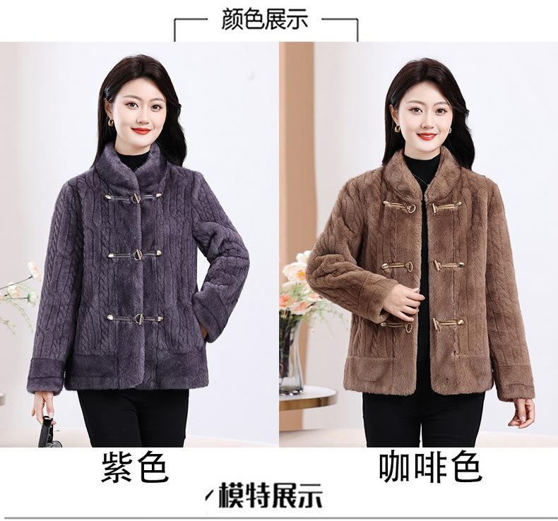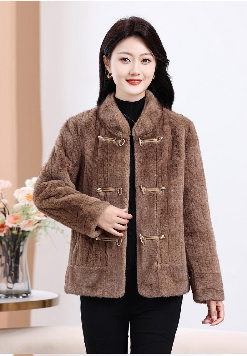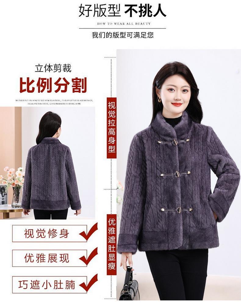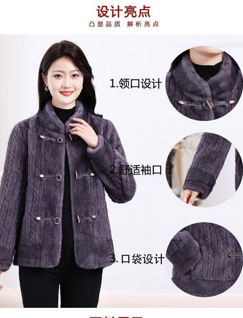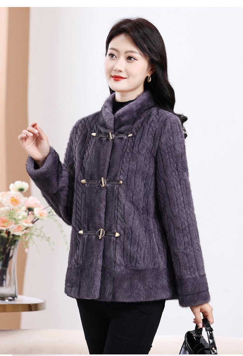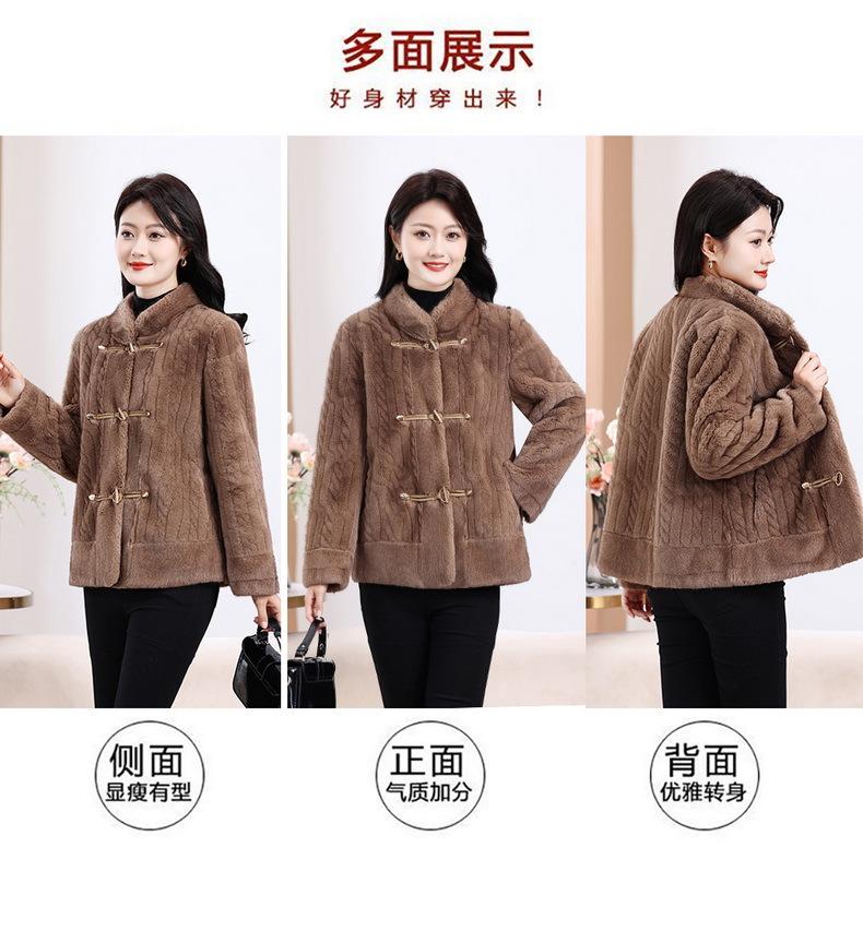 Vestido de Otoño e Invierno para Mamá Imitación Visón Estilo Nacional Abrigo de Moda Piel Corta Top de Una Pieza Nueva Piel para Mediana Edad y Adultos Mayores