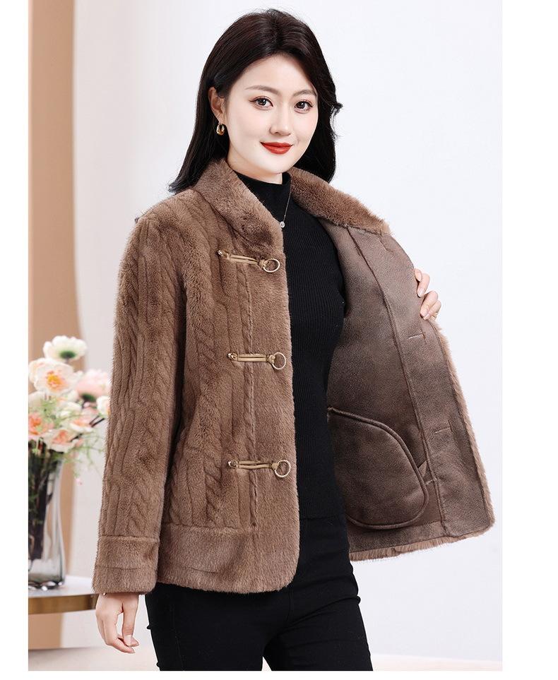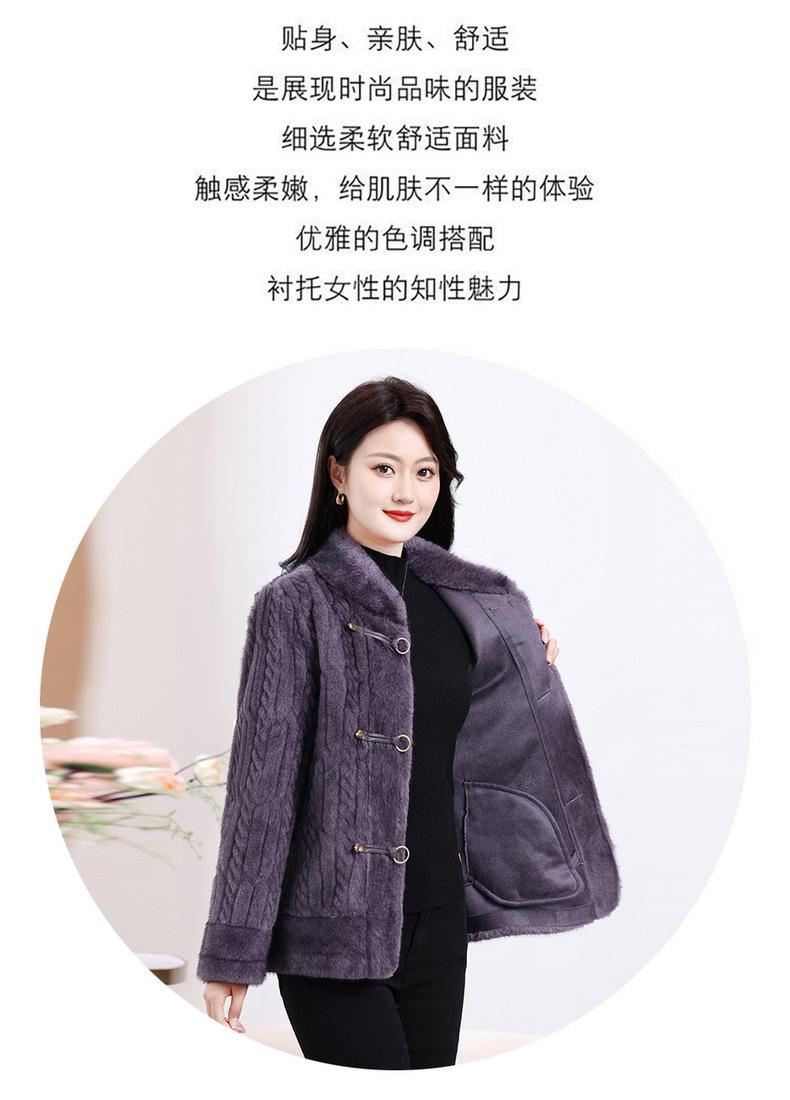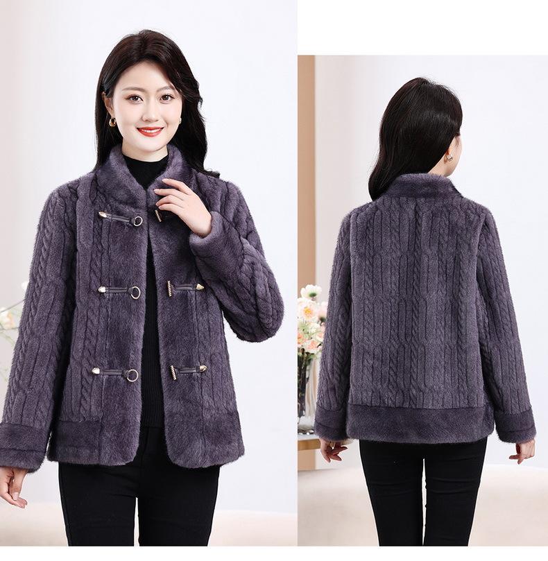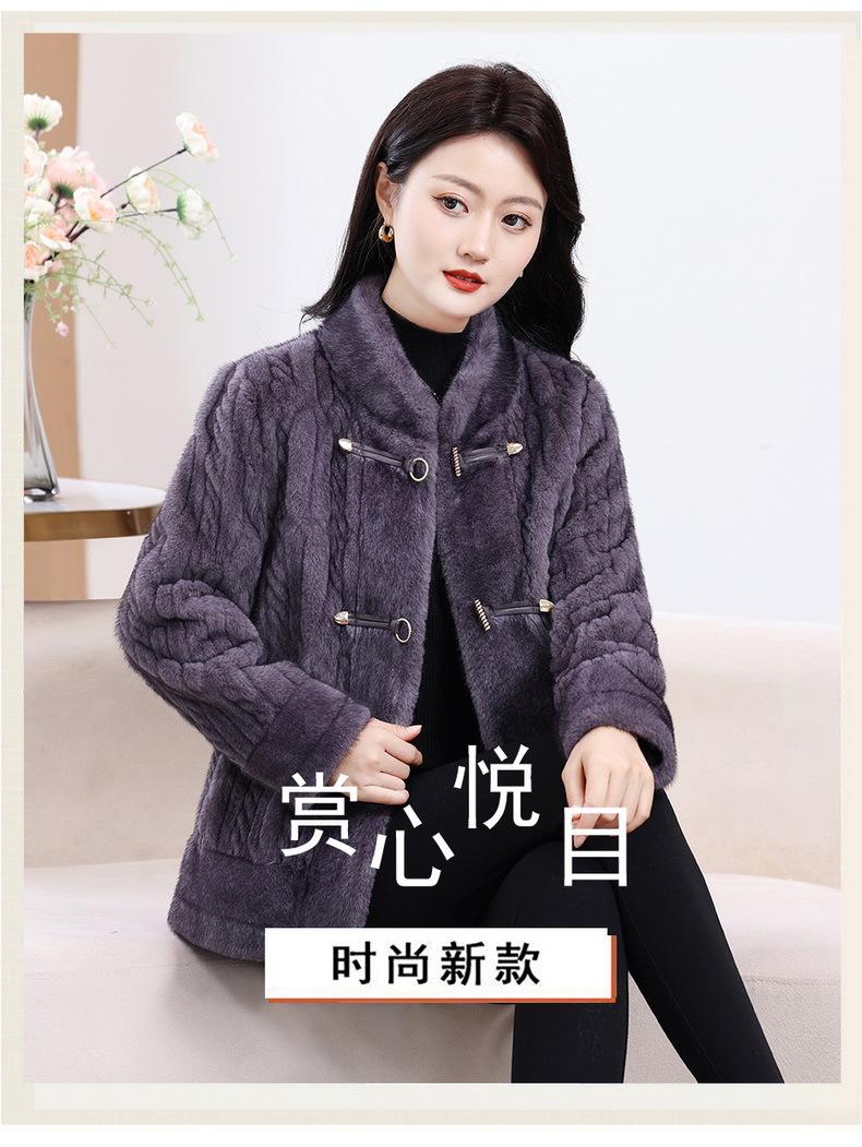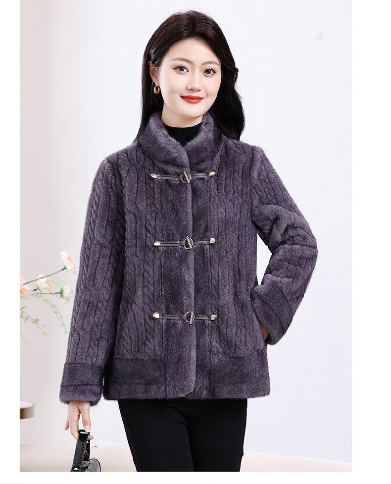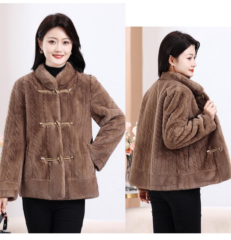 Vestido de Otoño e Invierno para Mamá Imitación Visón Estilo Nacional Abrigo de Moda Piel Corta Top de Una Pieza Nueva Piel para Mediana Edad y Adultos Mayores
