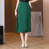 2025 Verano Nuevo Estilo Traje Negro Falda para Mujer Abertura Largo Medio Cintura Alta Drapeada Slim Recta