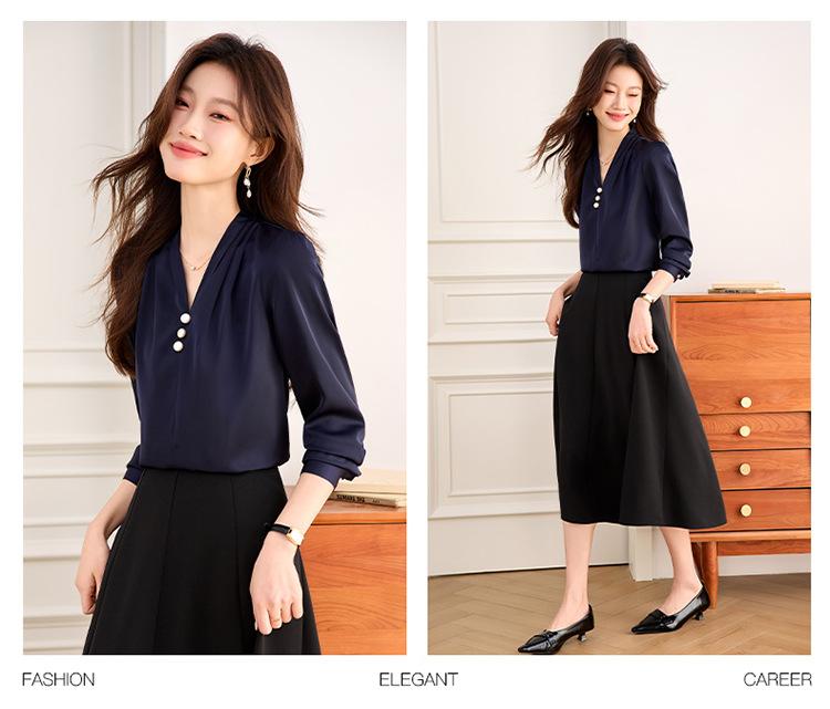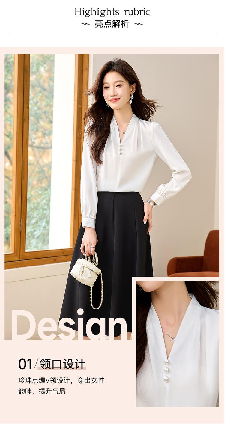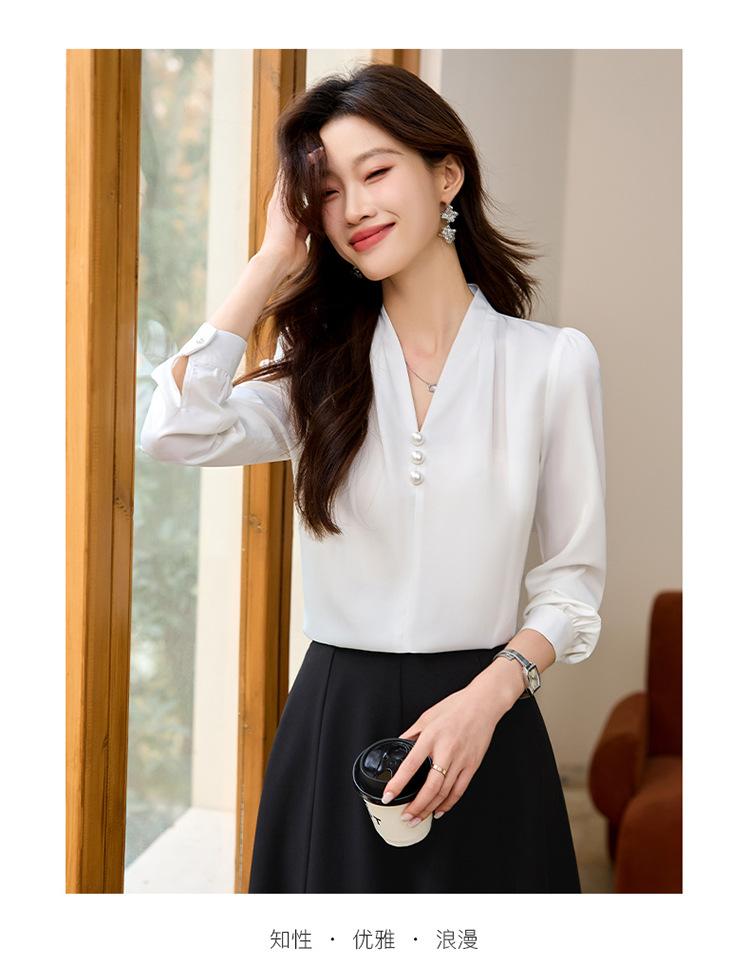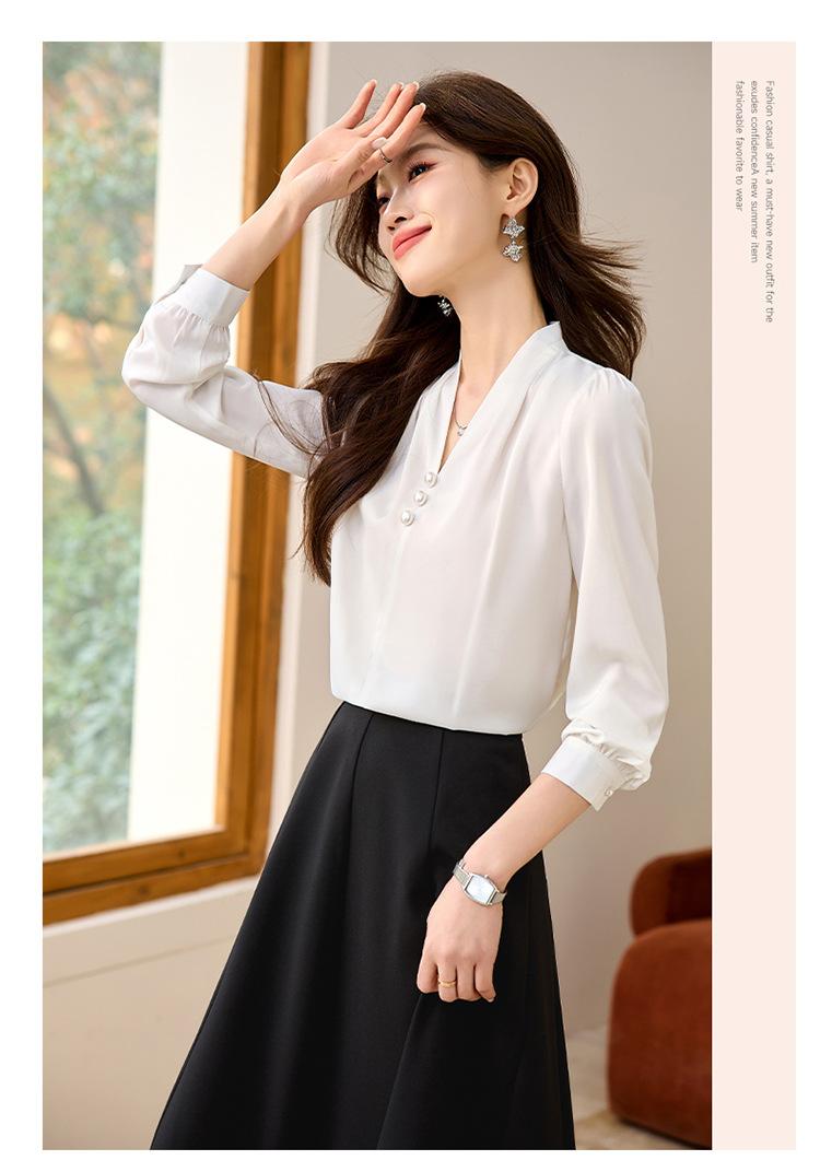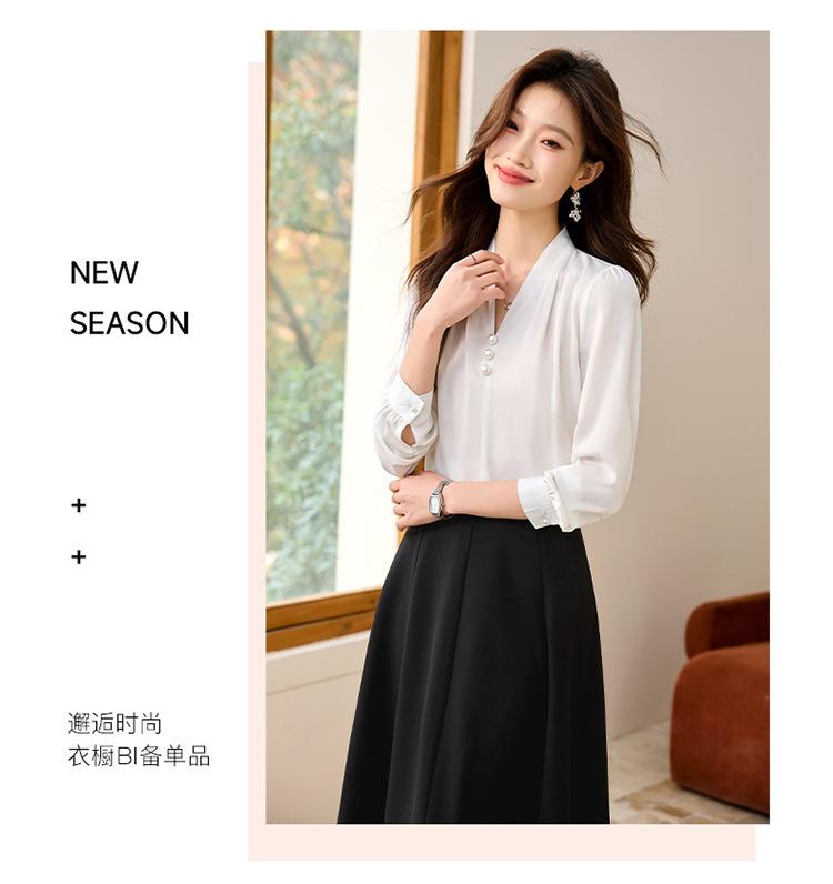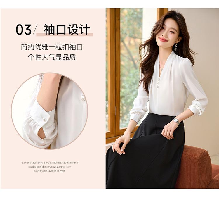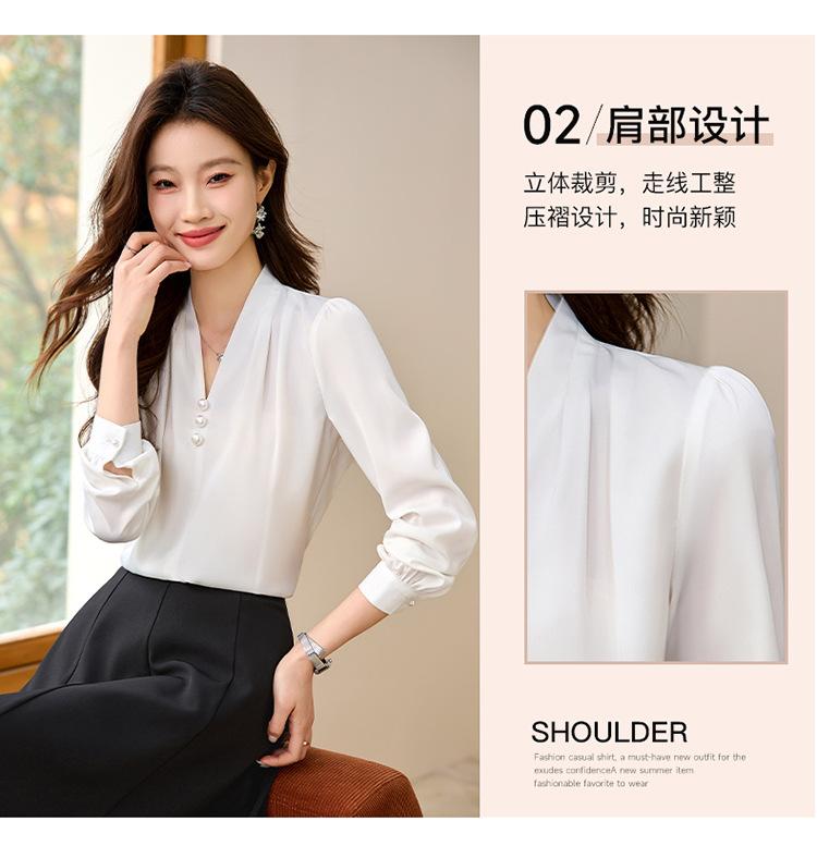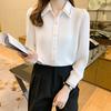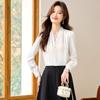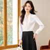 Camisa blanca de manga larga para mujer, nueva llegada de primavera 2025, top de gasa con lazo, elegante vestido camisero profesional que combina con todo.