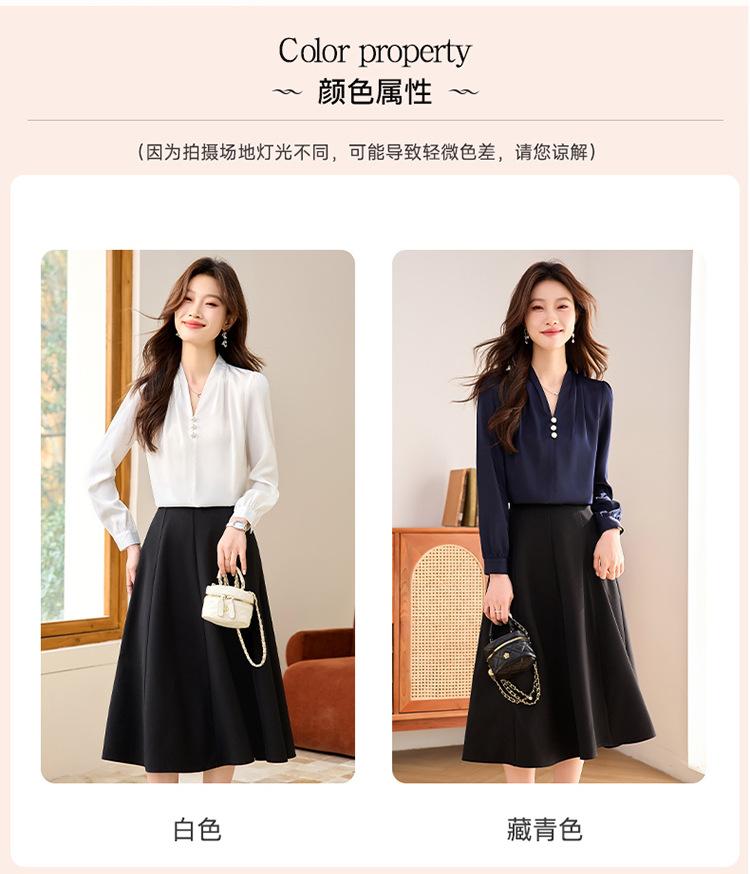 White shirt, White shirt + skirt, Navy blue shirt, Navy blue shirt + skirt, C57 black skirt