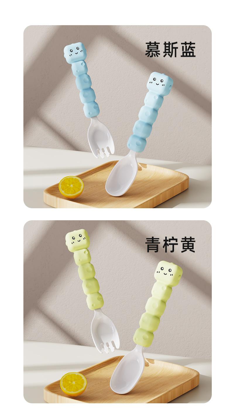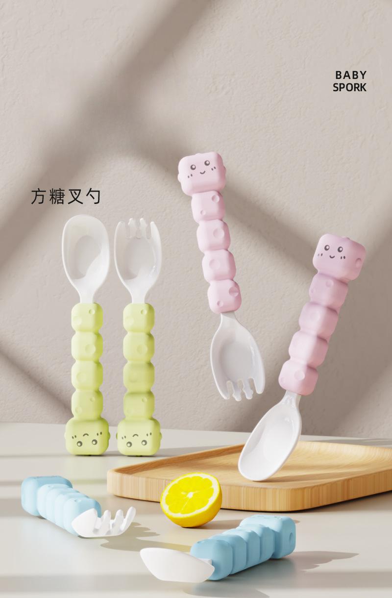 Vajilla infantil divertida y bonita de dibujos animados, tenedor y cuchara para azúcar, complemento alimenticio para bebés, herramienta de entrenamiento para aprender a comer, cuchara y tenedor.
