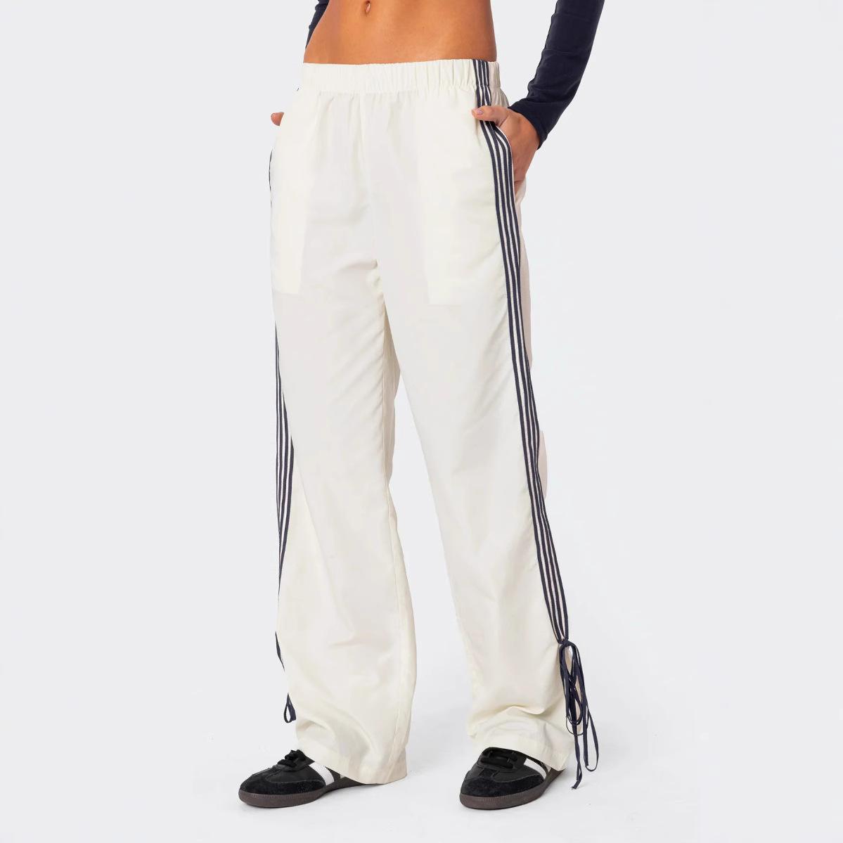 Pantalones de Pierna Ancha con Correa de Algodón Tejido para Mujer Amazon Ins Primavera Nuevo Suelto Pantalones Deportivos Pantalones Casuales