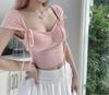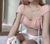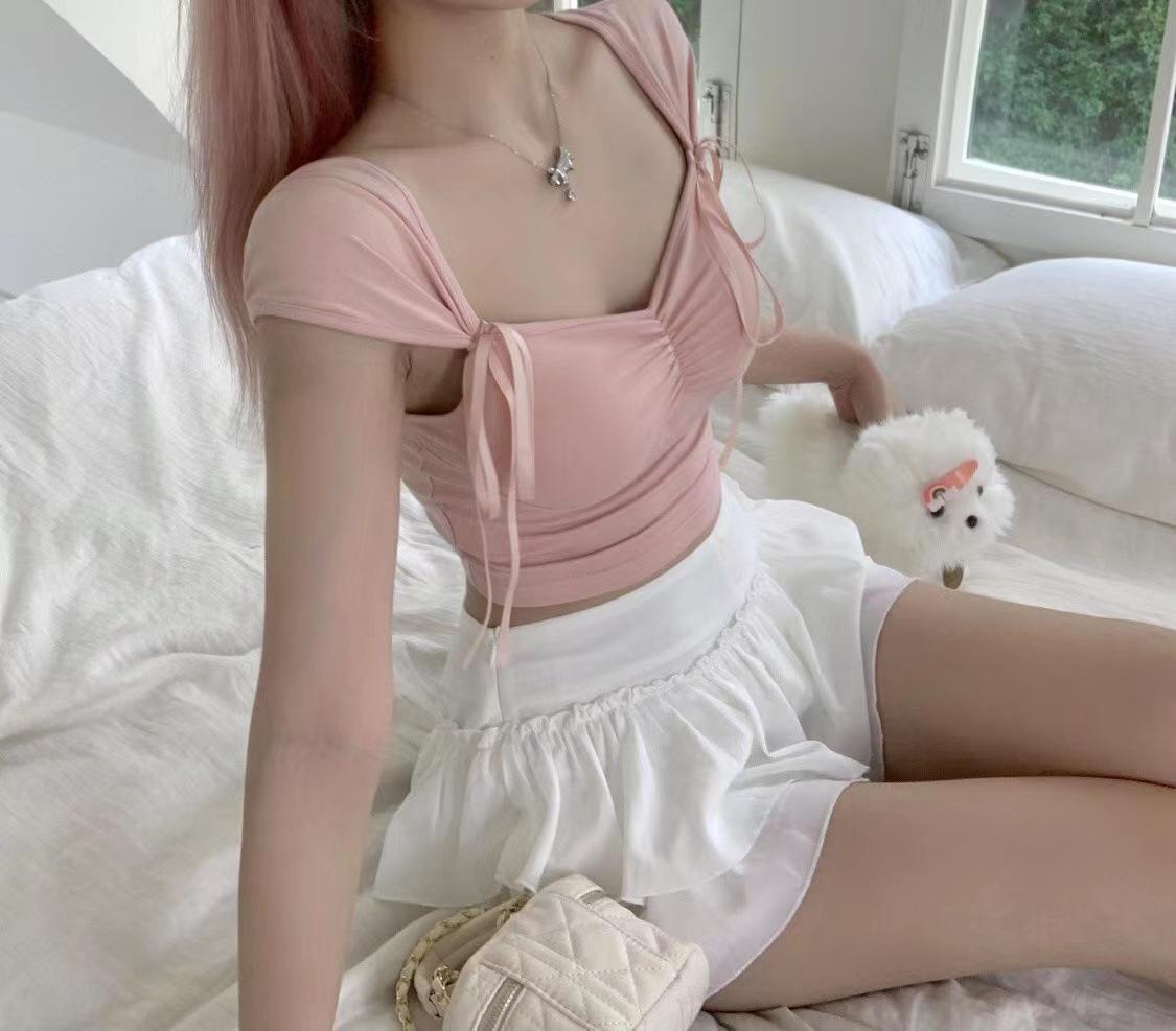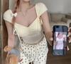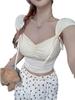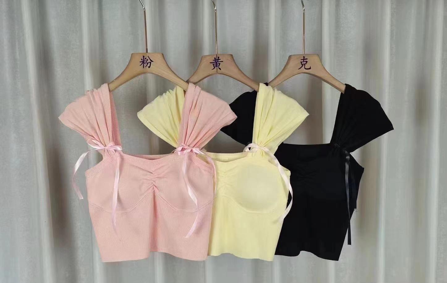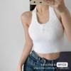 Chaleco pequeño de verano, dulce, con lazo de dos colores y tirantes, camiseta de cuello halter, prenda exterior corta, ajustada, de punto, para adelgazar.
