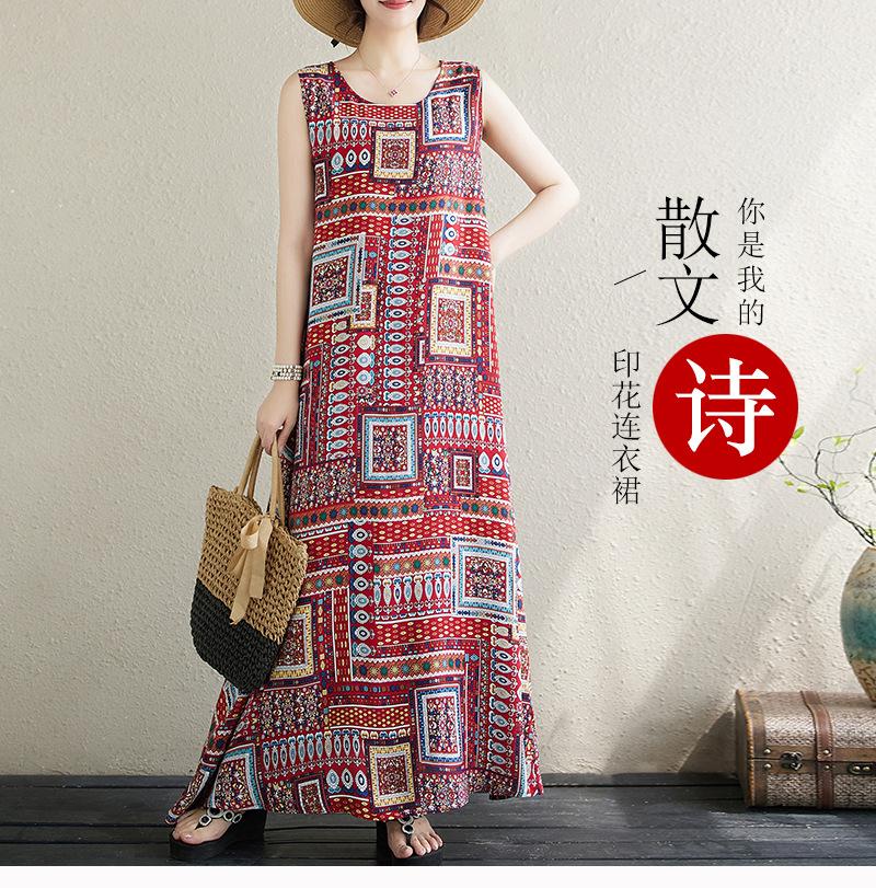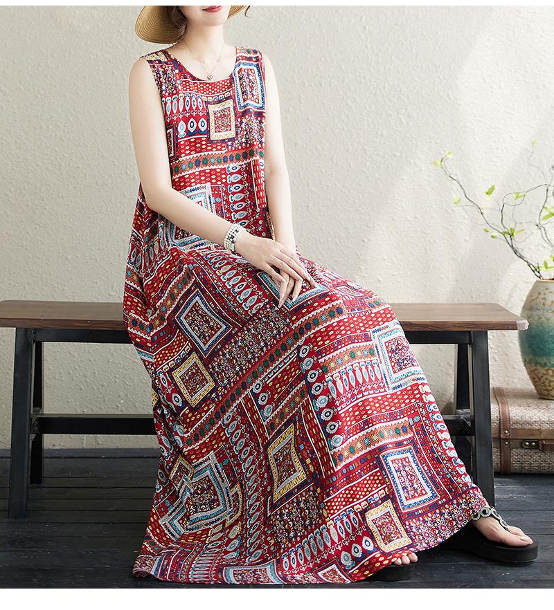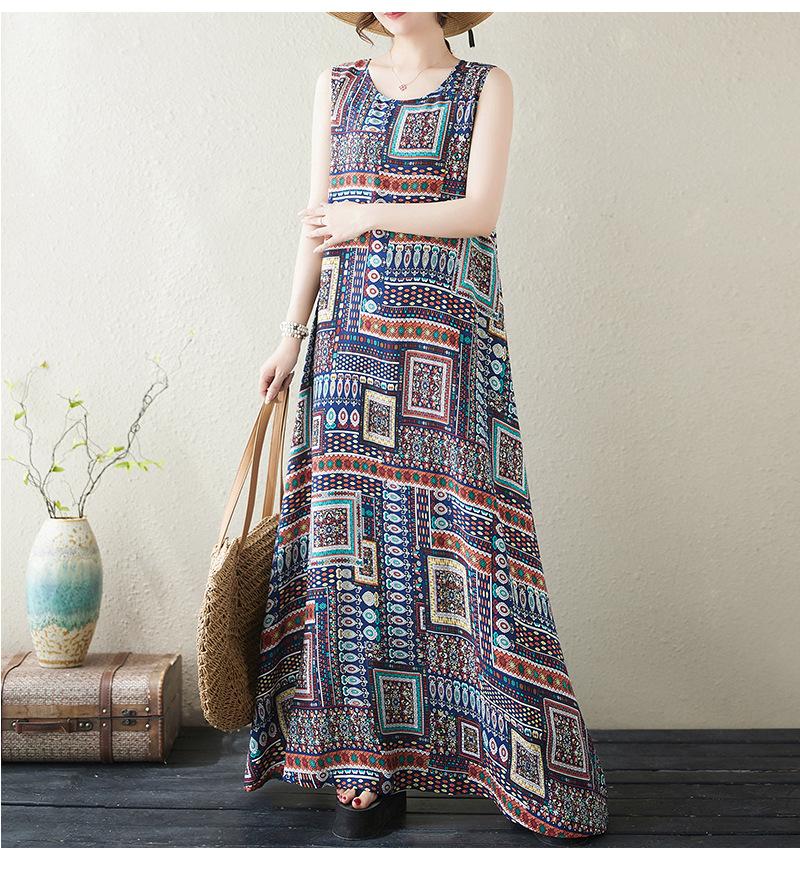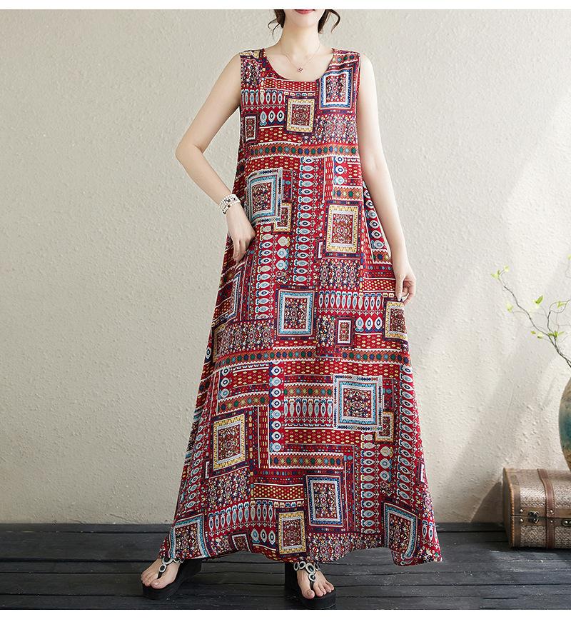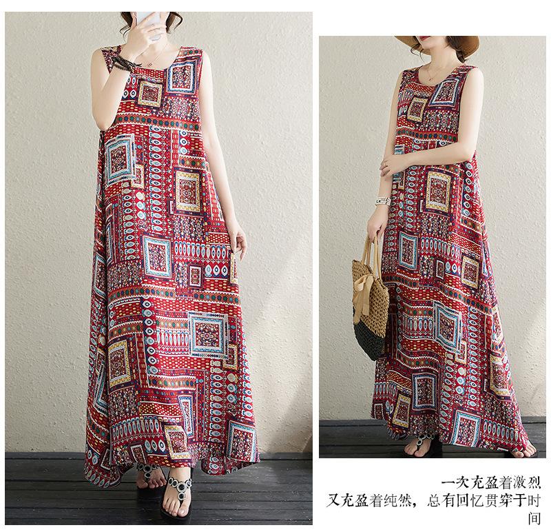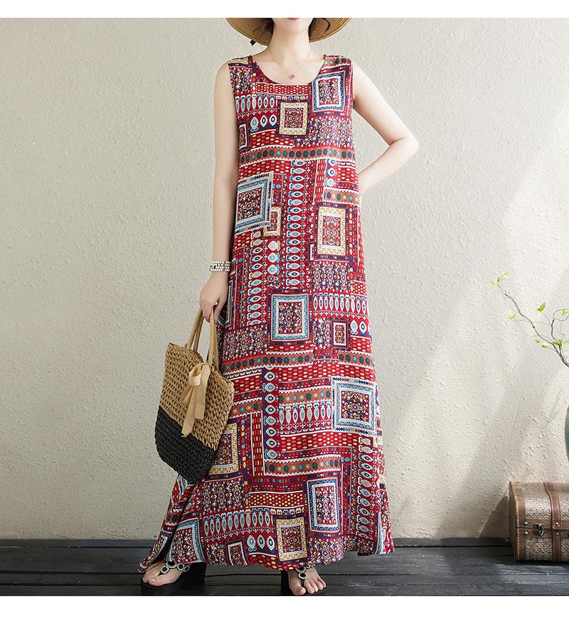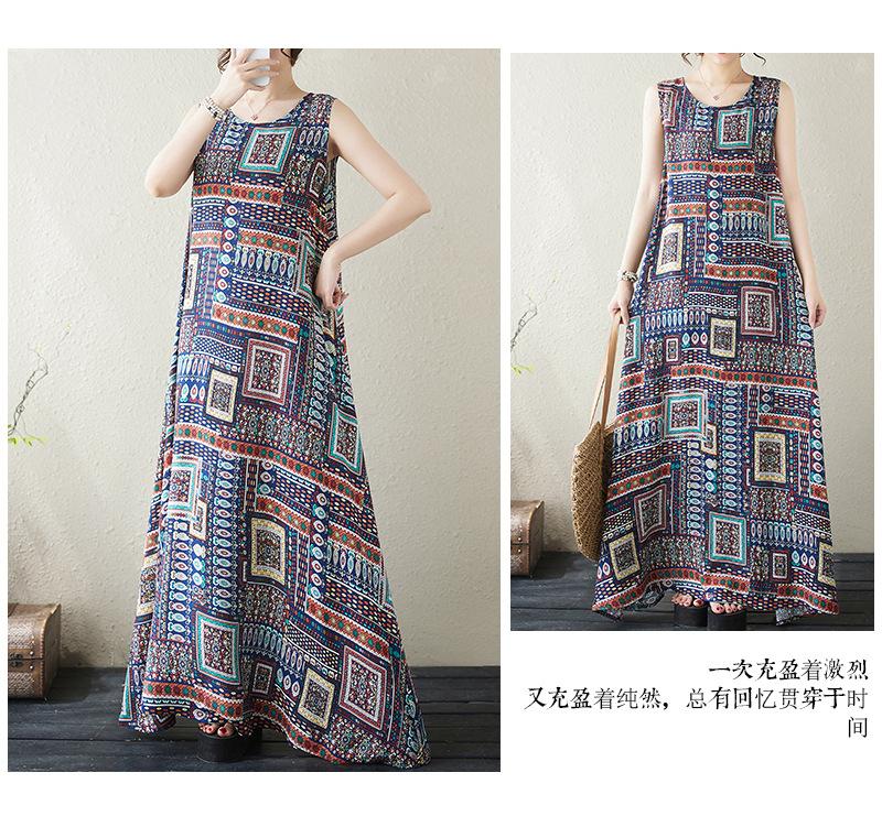 Vestido tipo chaleco sin mangas de playa con falda grande estilo vacaciones suelto de algodón y seda de verano 2024 para mujer