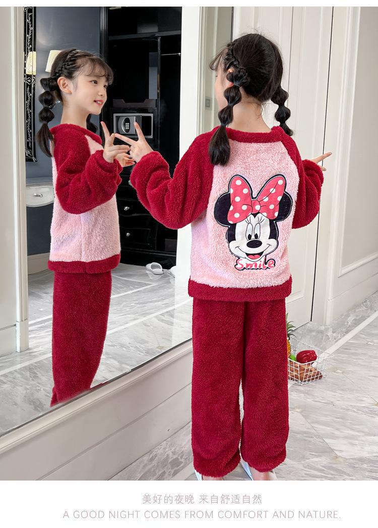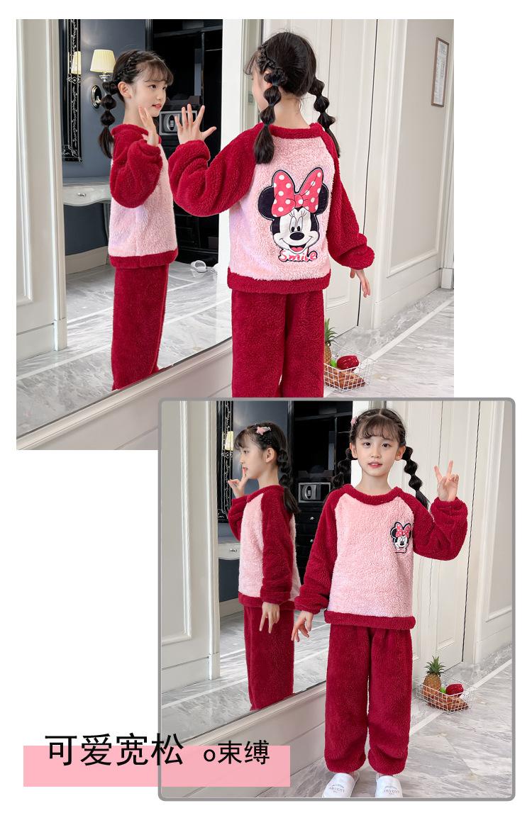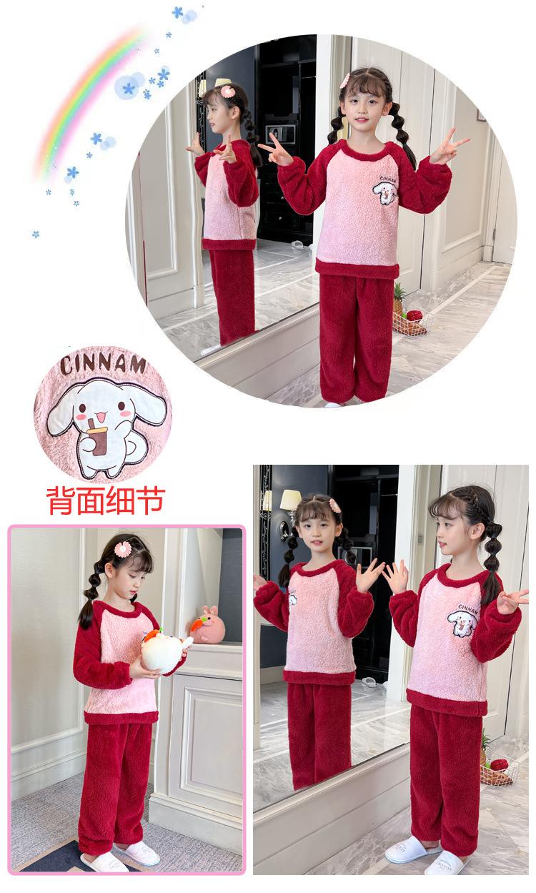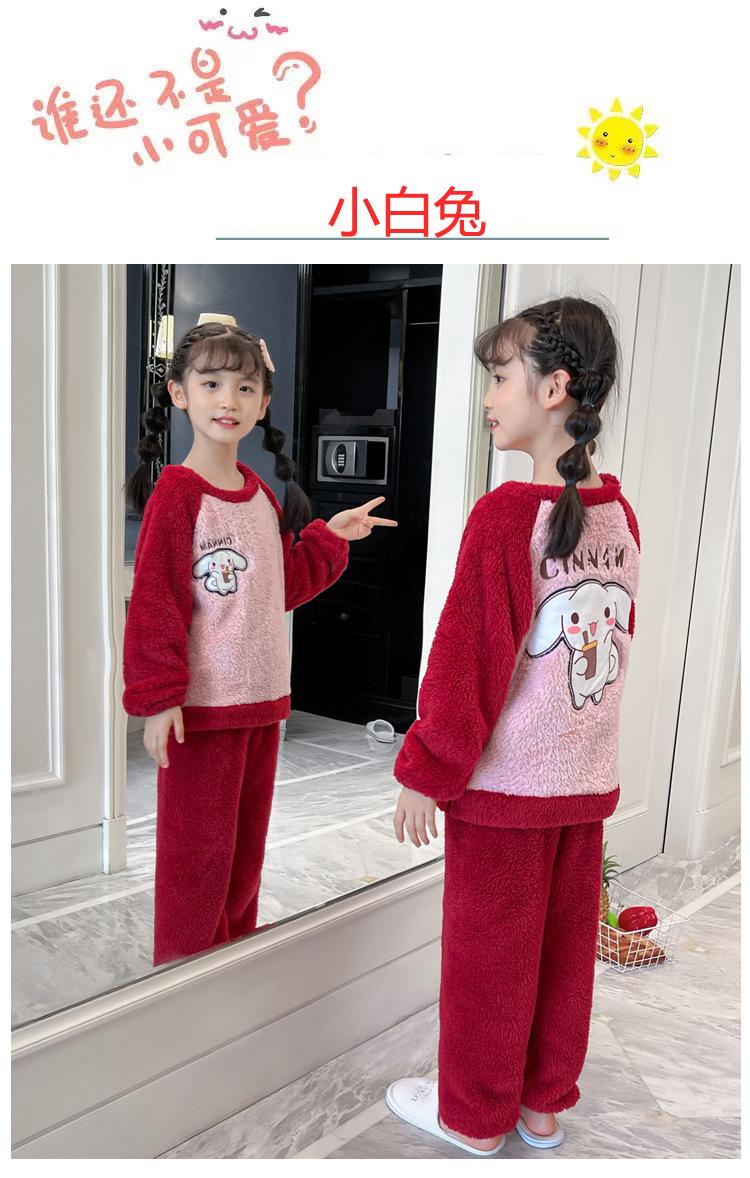 Pijamas de otoño e invierno para niños, de franela, grandes, para niñas y bebés, de forro polar coral con dibujos animados, conjunto de ropa para el hogar
