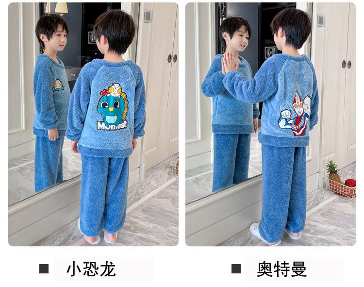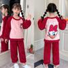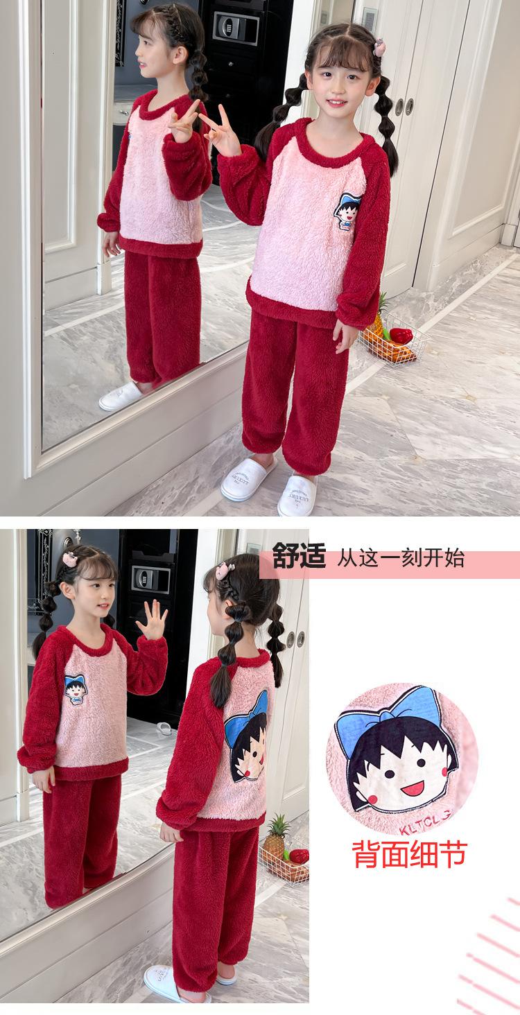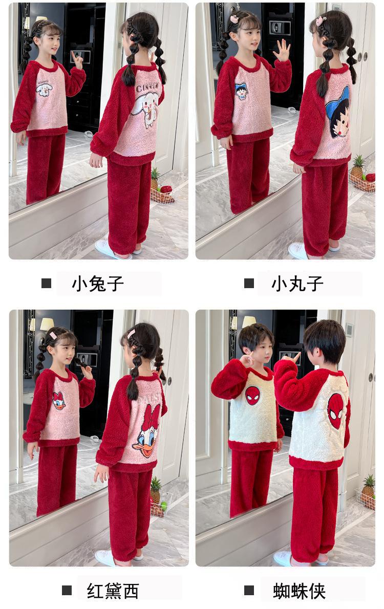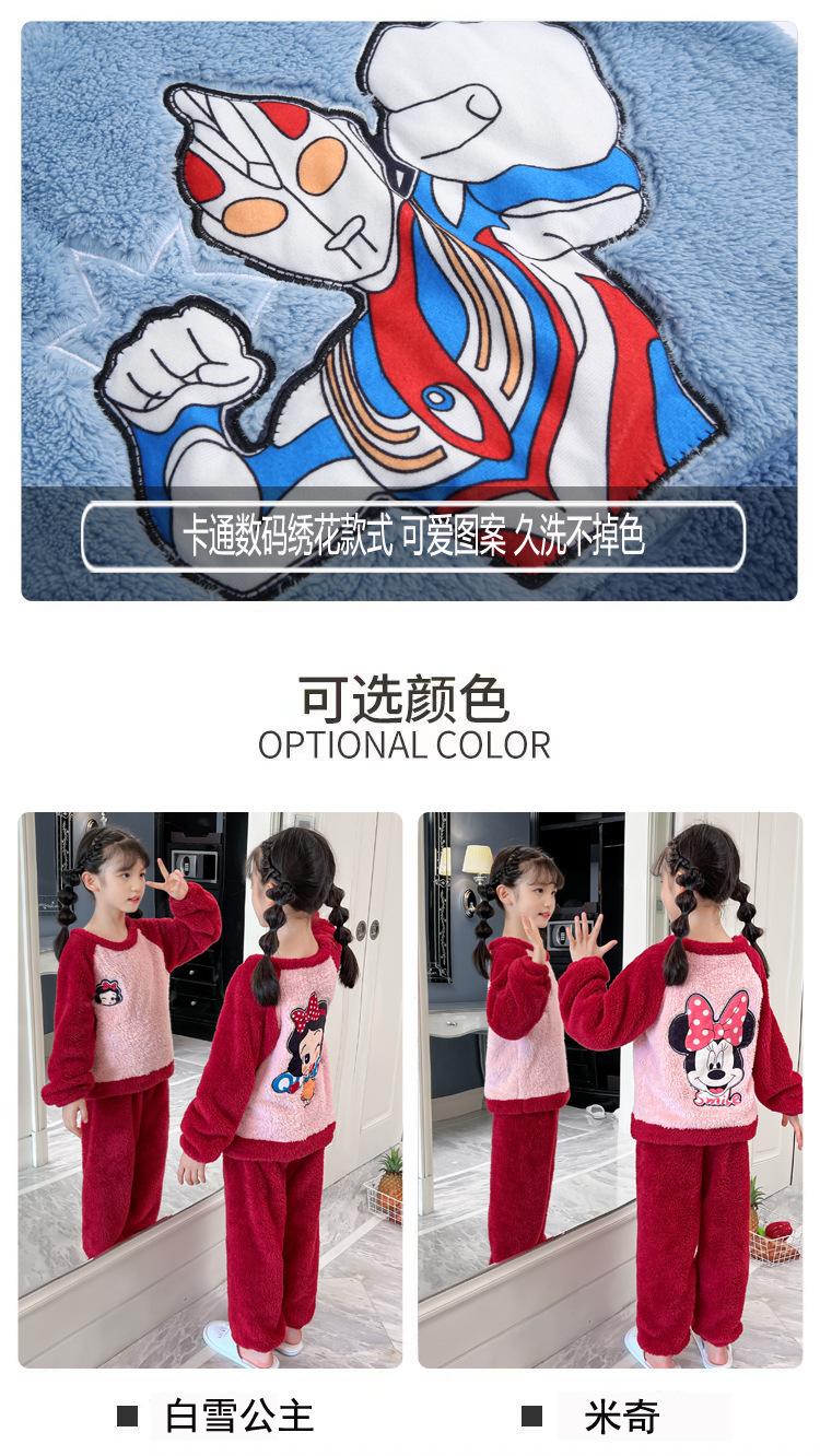 Pijamas de otoño e invierno para niños, de franela, grandes, para niñas y bebés, de forro polar coral con dibujos animados, conjunto de ropa para el hogar