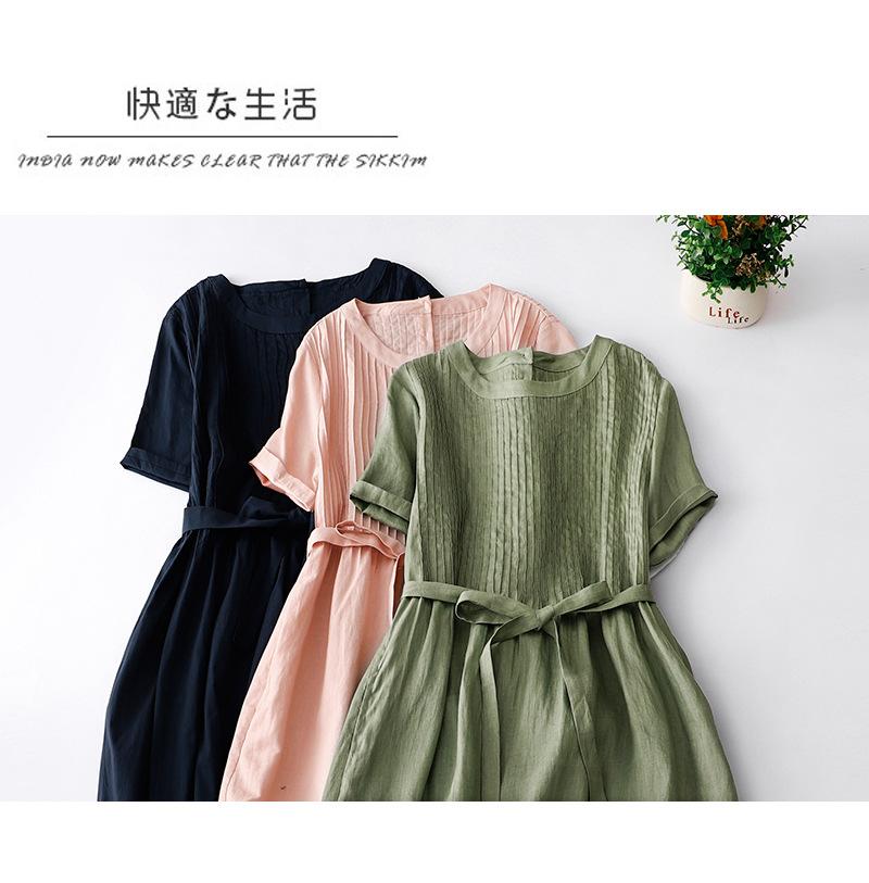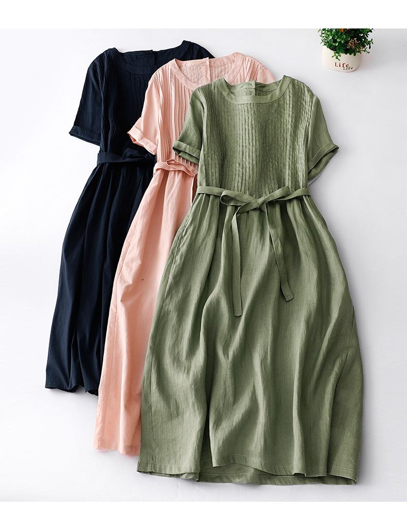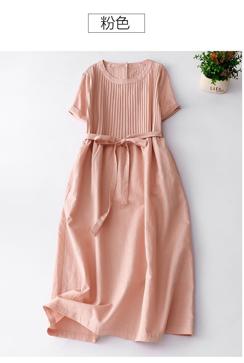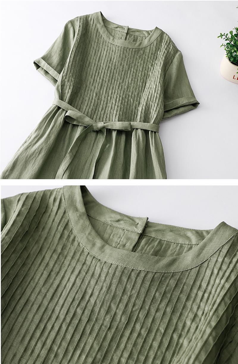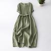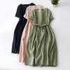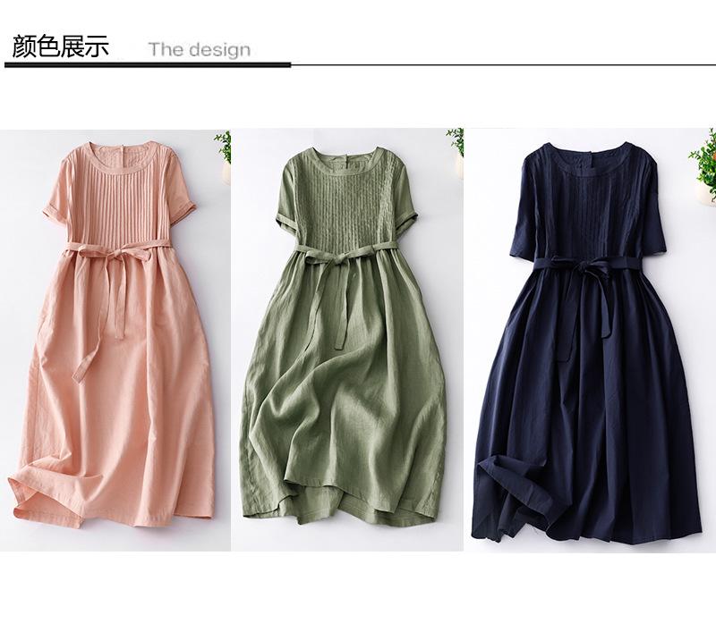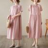 Foto real 2024 verano nuevo algodón y lino coreano literario suelto largo manga corta vestido mujeres