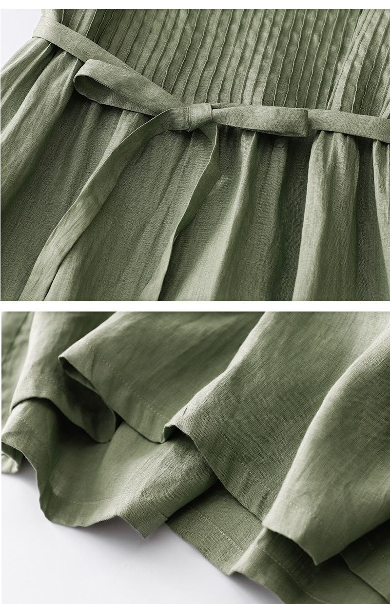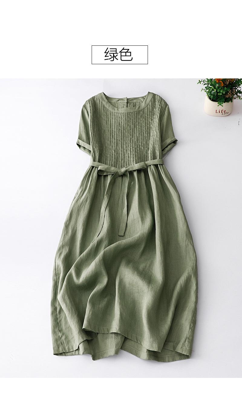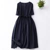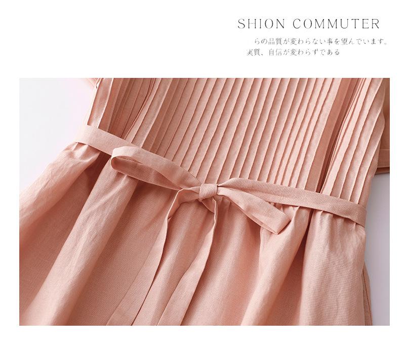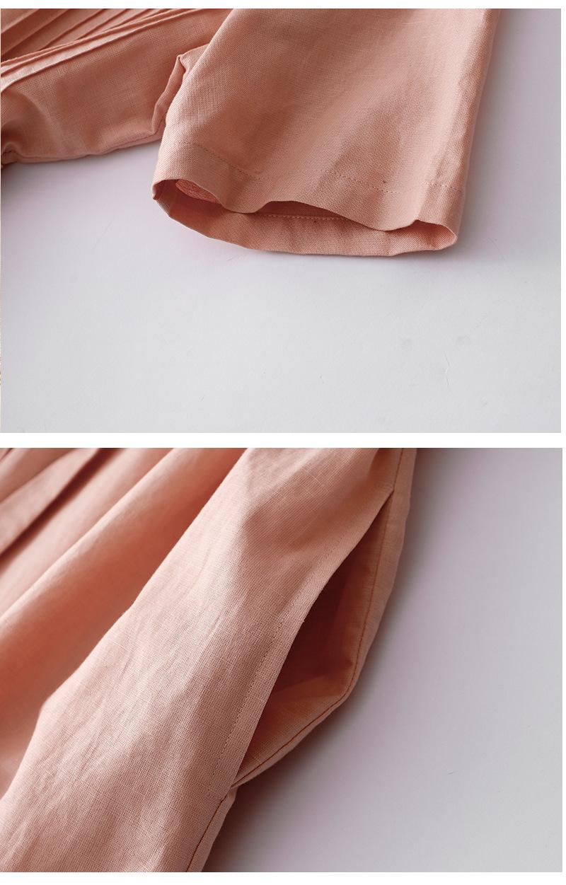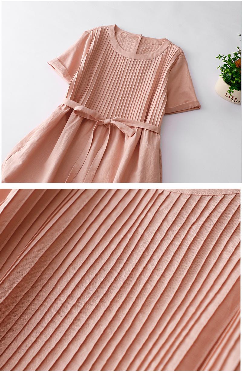 Foto real 2024 verano nuevo algodón y lino coreano literario suelto largo manga corta vestido mujeres