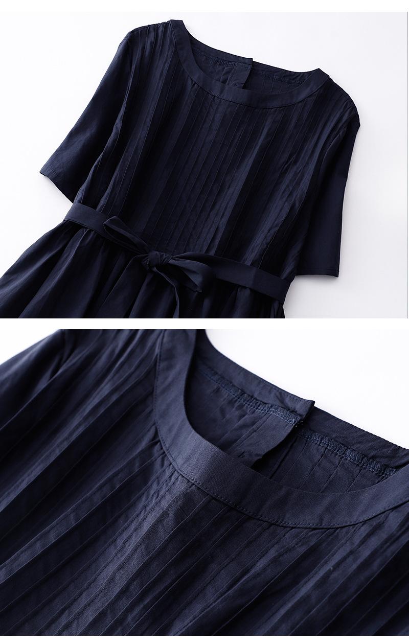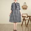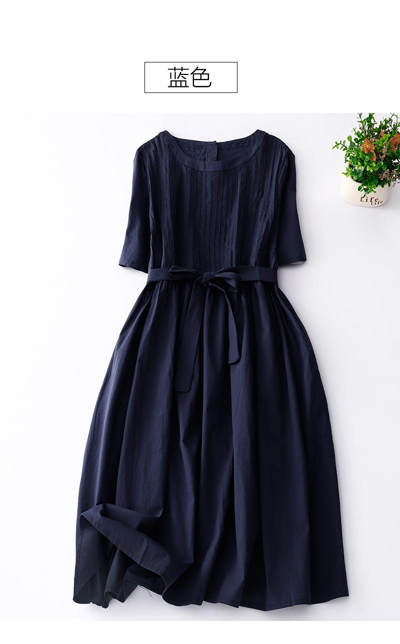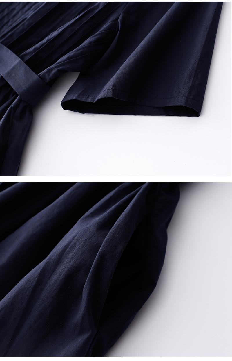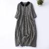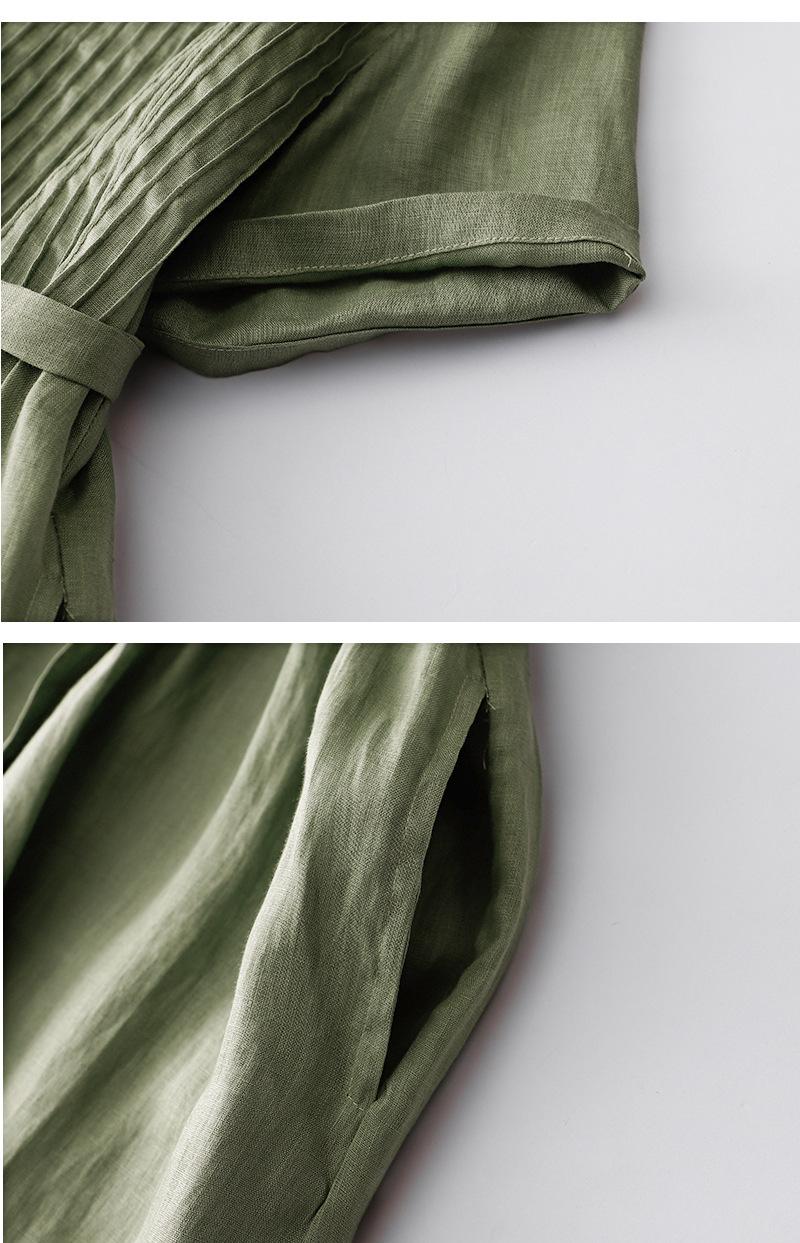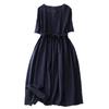 Foto real 2024 verano nuevo algodón y lino coreano literario suelto largo manga corta vestido mujeres