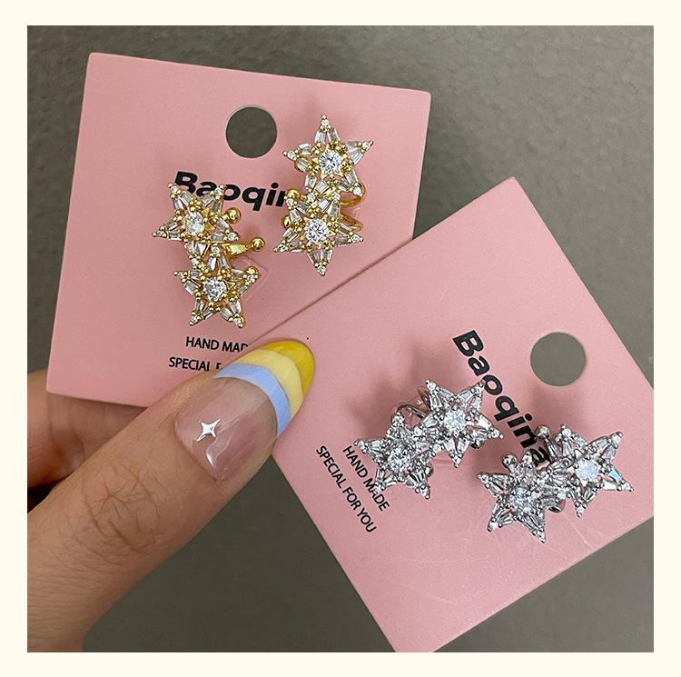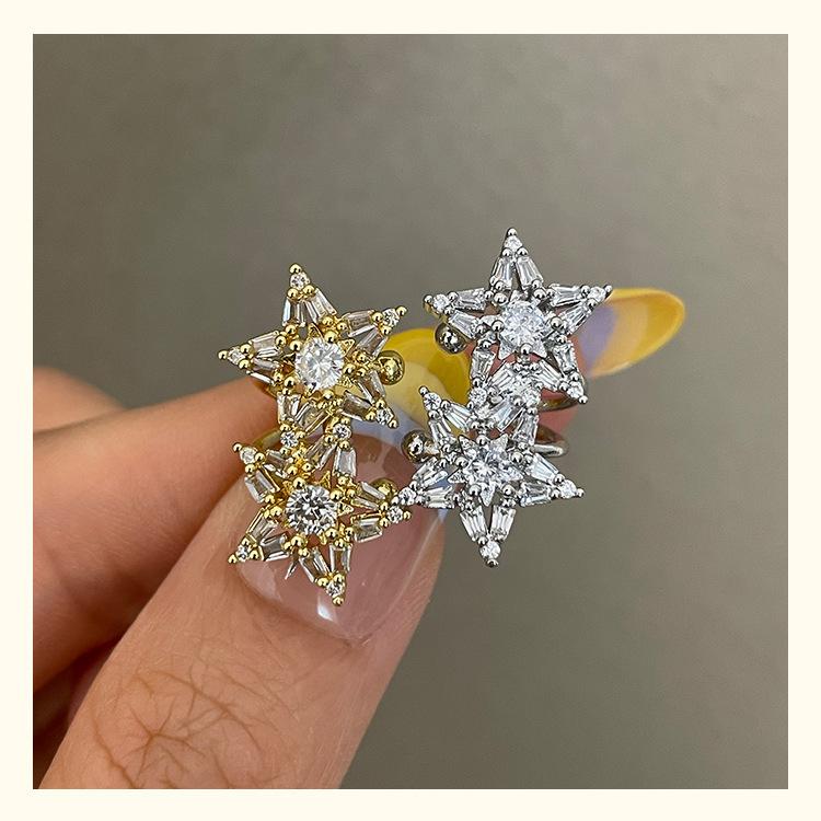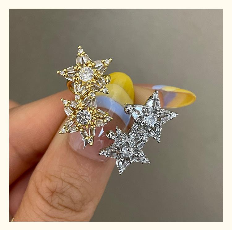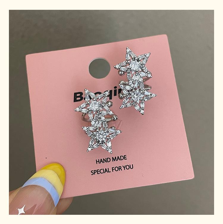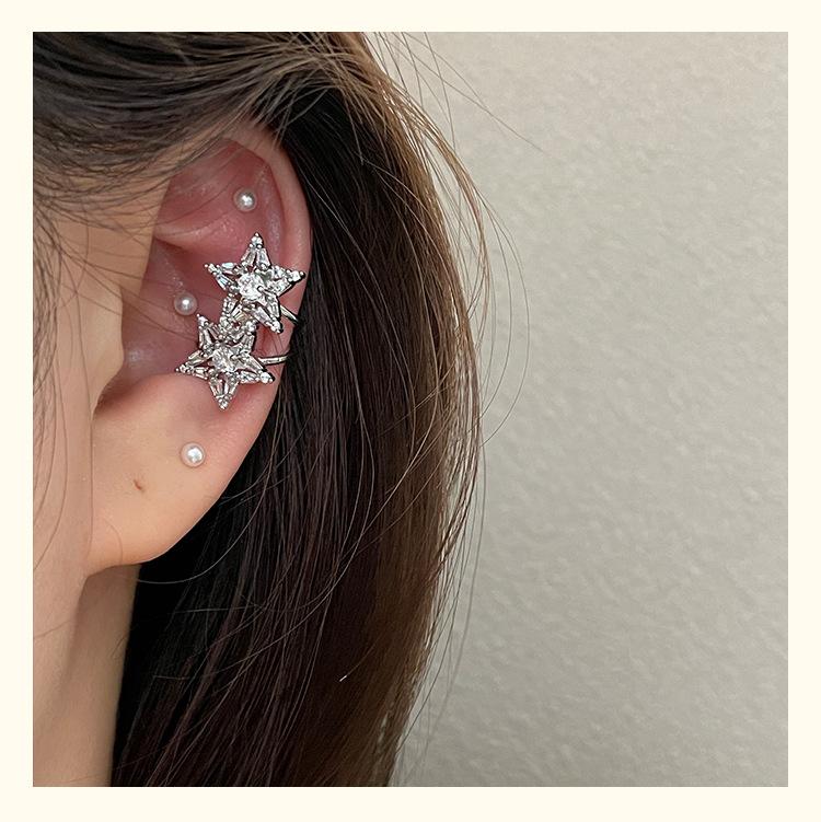 3185 super flash light luxury zircon double star non-pierced silver ear cuff