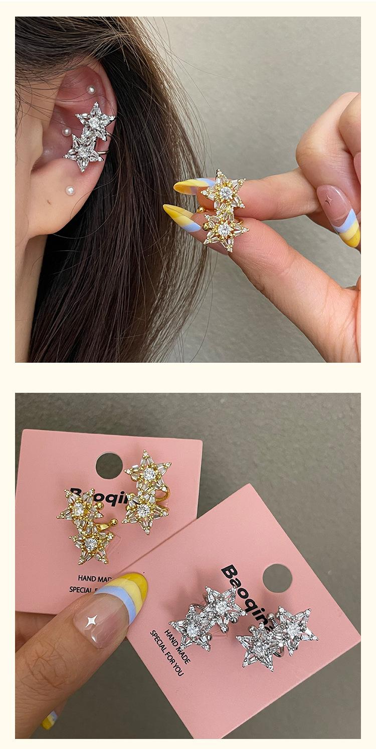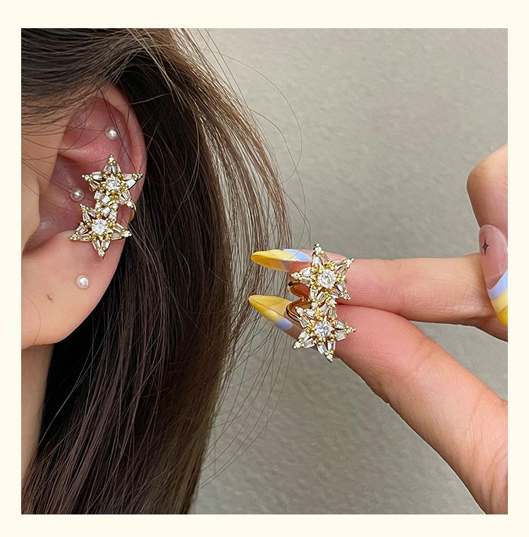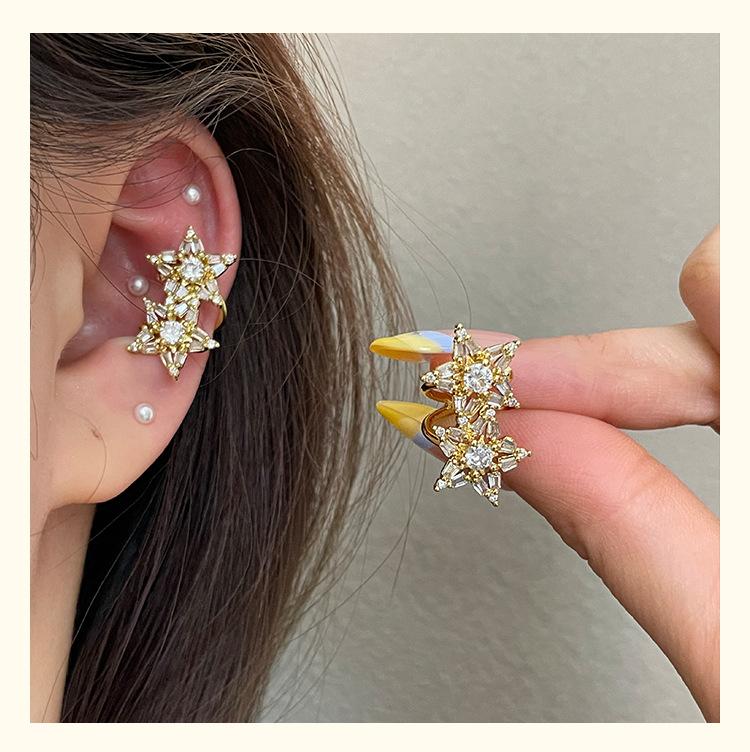 3185 super flash light luxury zircon double star gold ear cuff without piercing