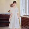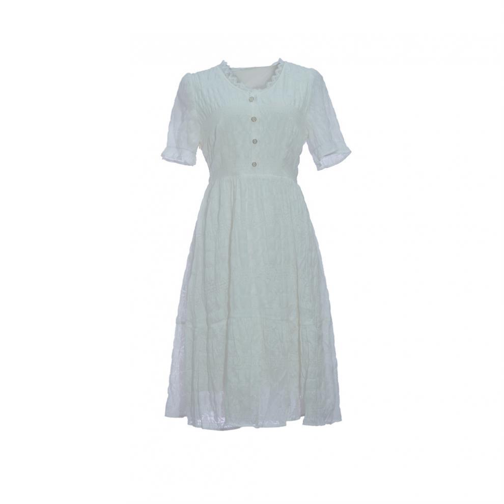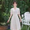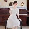 Vestido Blanco de Cuello en V Estilo Francés para Mujer, Estilo Nuevo de Verano 2024, Vestido de Hadas de Largo Medio con Encaje Patchwork Adelgazante