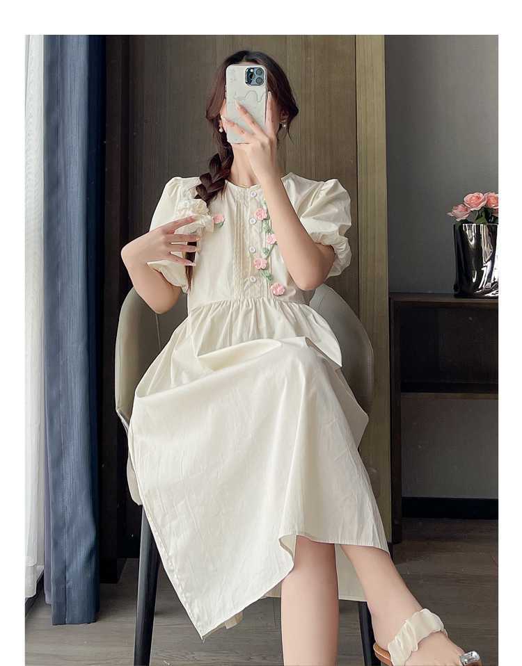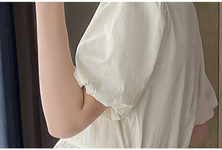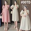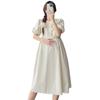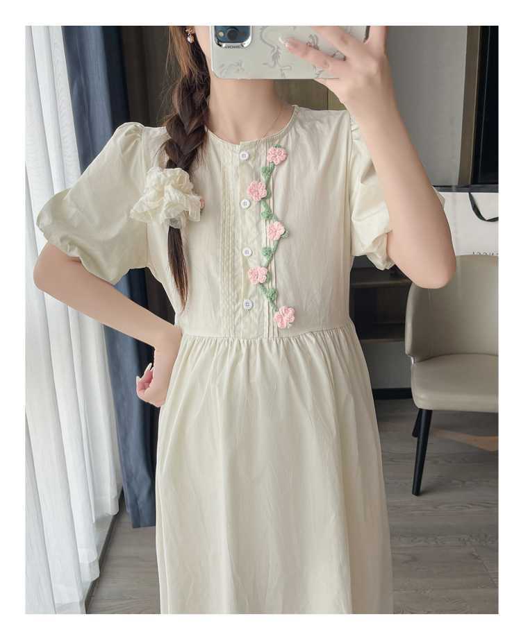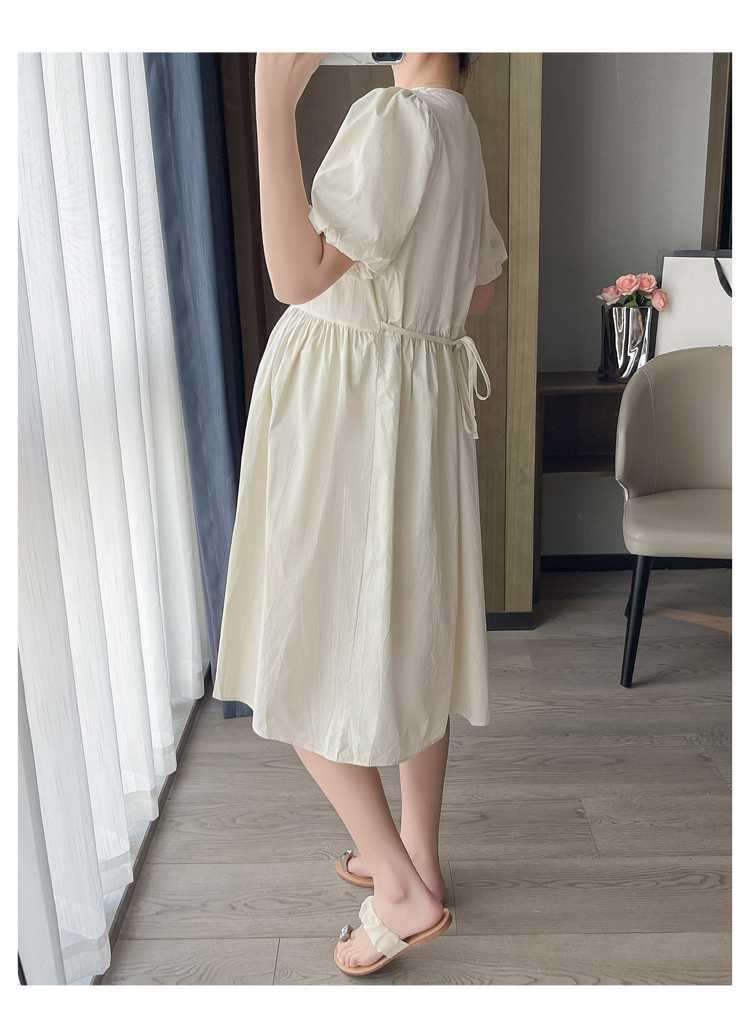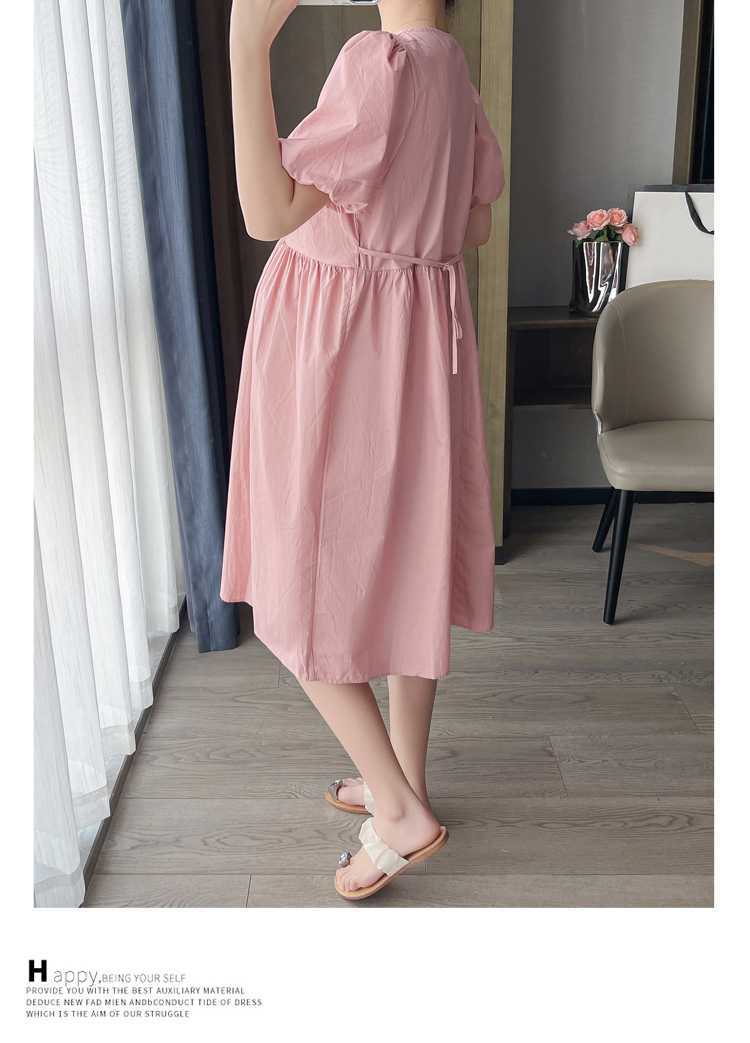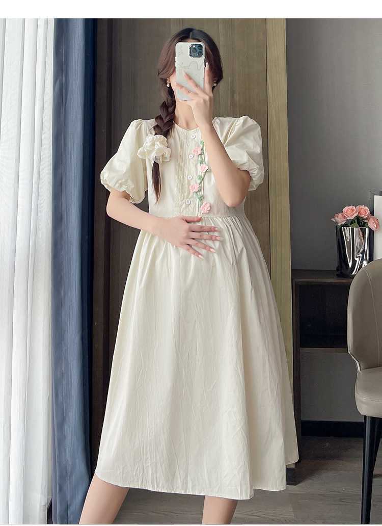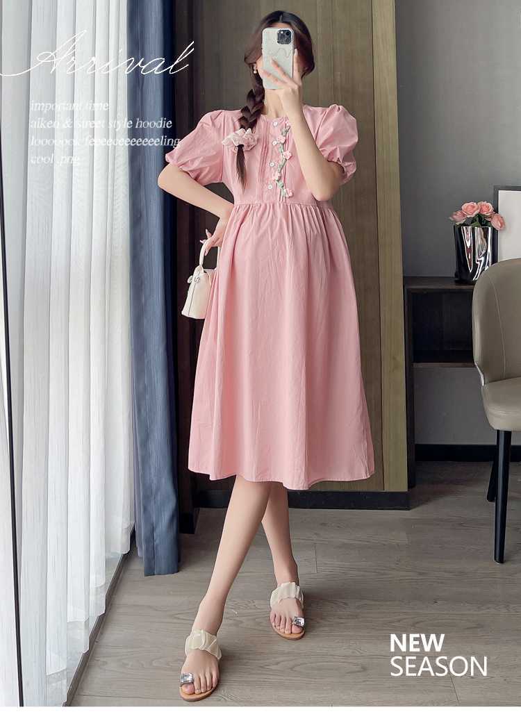 Vestido de verano de moda para embarazadas 2024, nuevo estilo, de algodón y lino, con crochet dulce, cintura alta y mangas abullonadas.