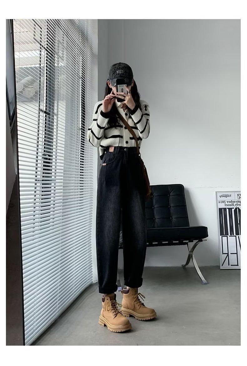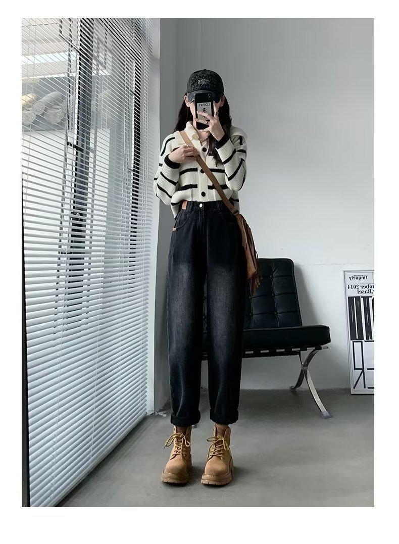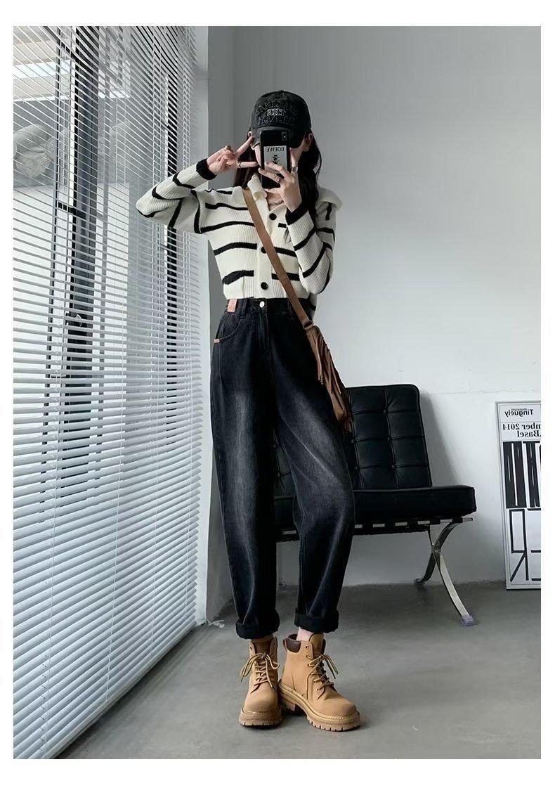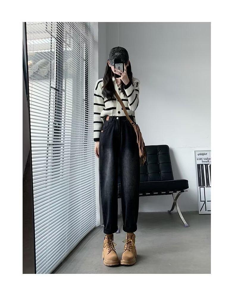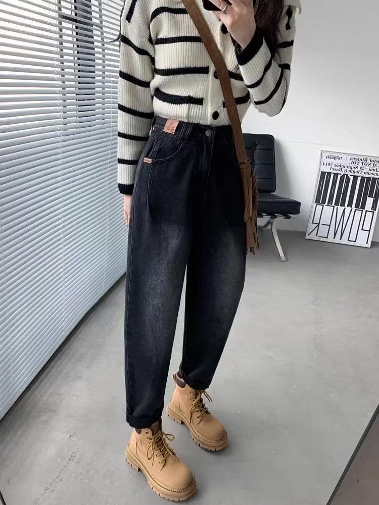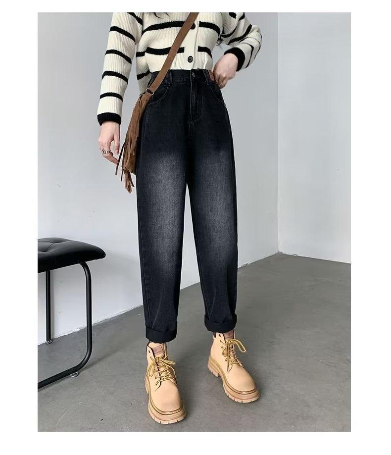 Pantalones vaqueros para mujer, otoño 2023, nuevos, con forma de pera, cintura alta, adelgazantes, sueltos, casuales, estilo harén, estilo rábano, pantalones de papá