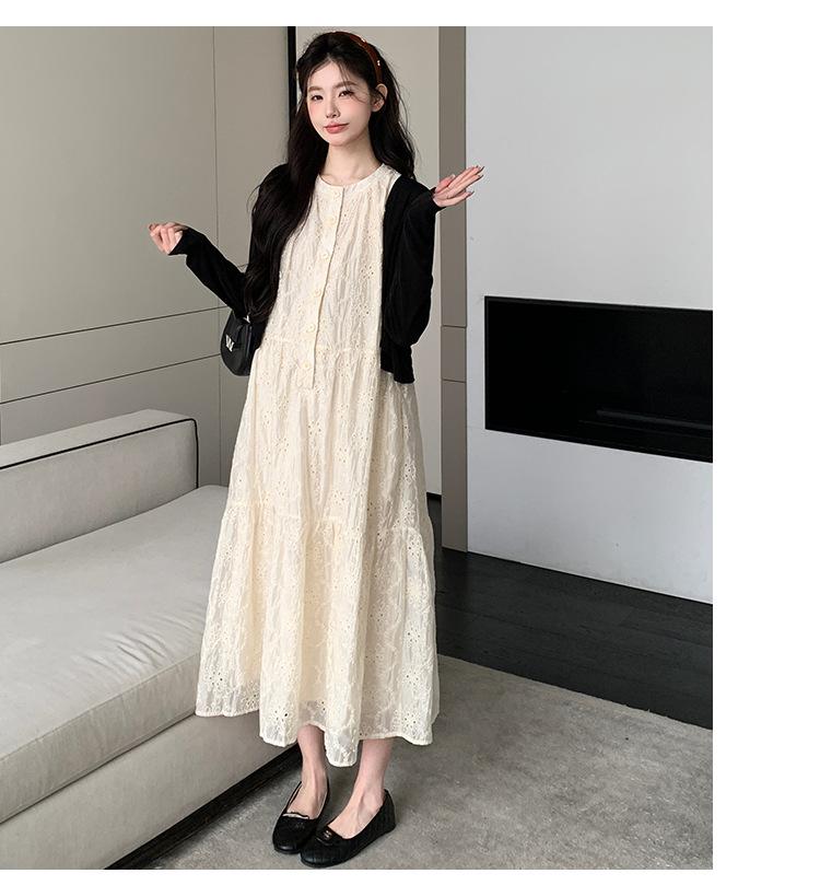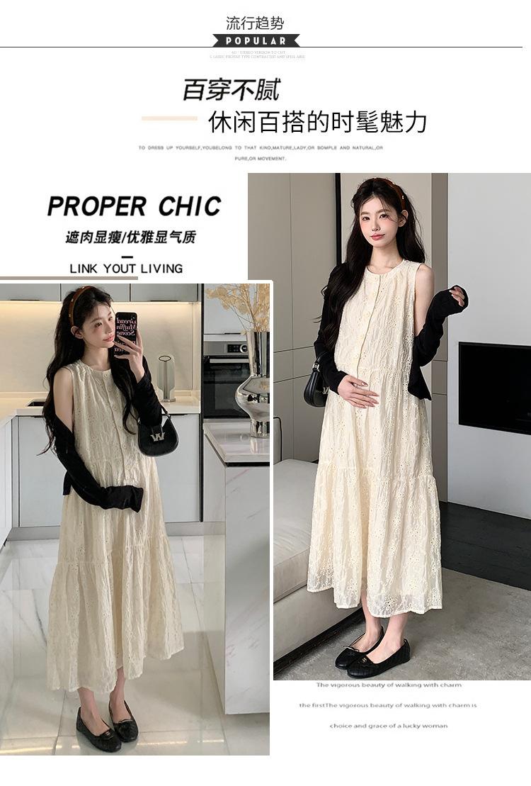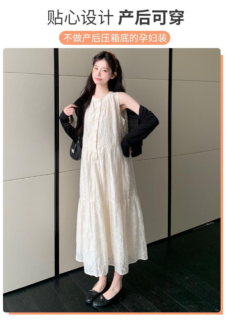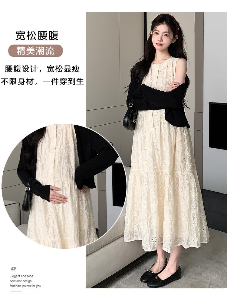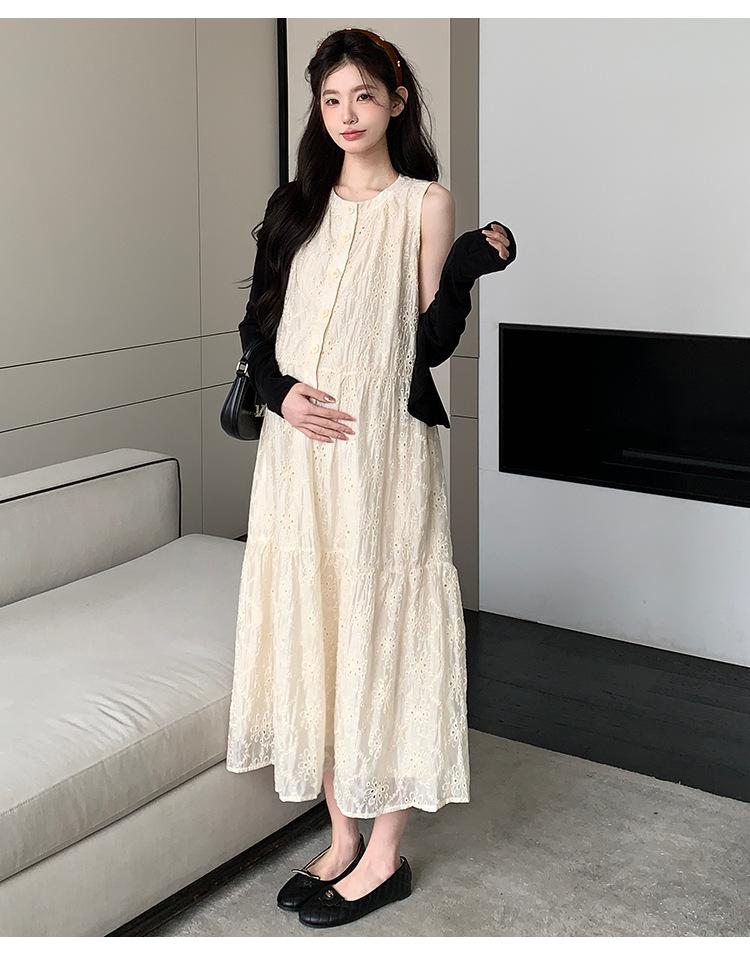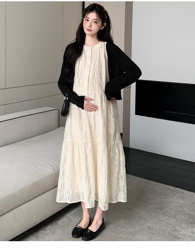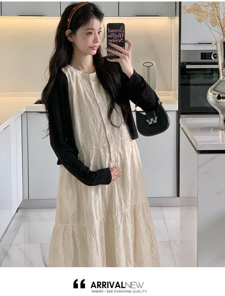 Ropa de Maternidad 2025 Verano Nuevo Encaje Recorte Estilo Coreano Vestido + Ropa de Protección Solar Traje de Maternidad de Dos Piezas Falda