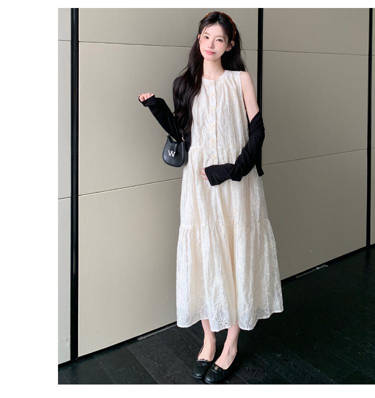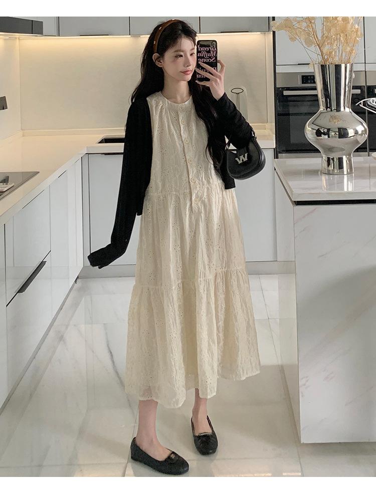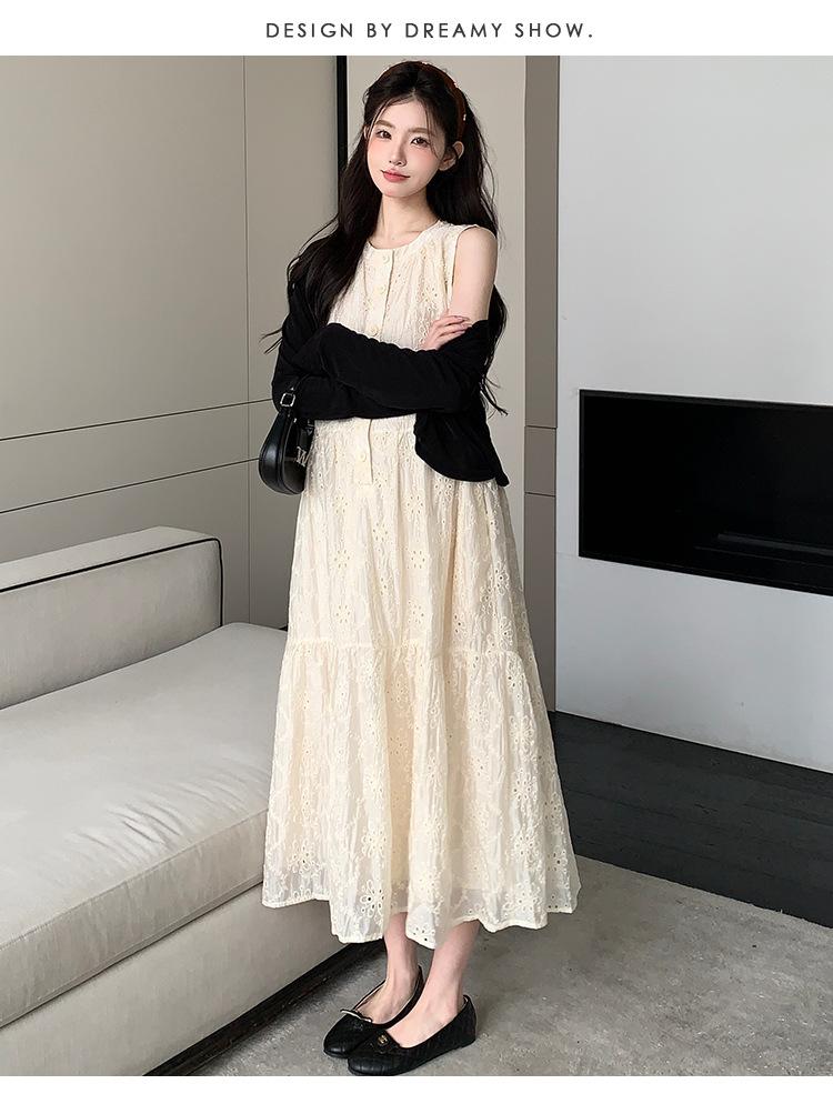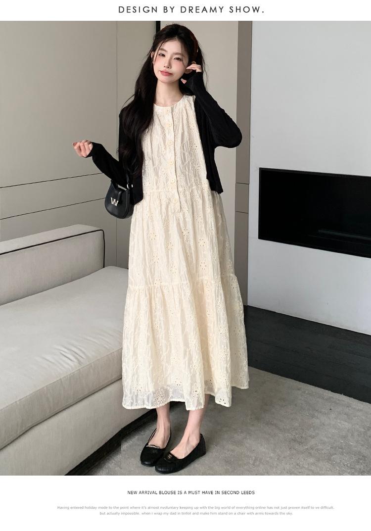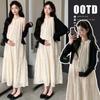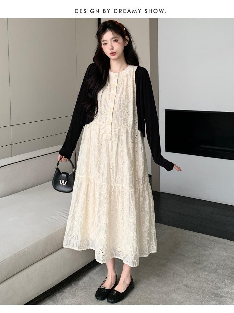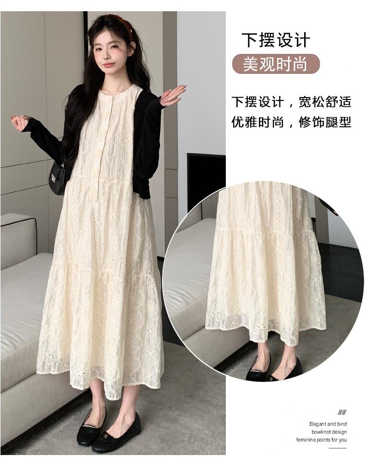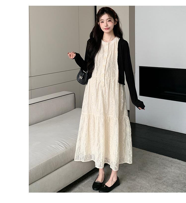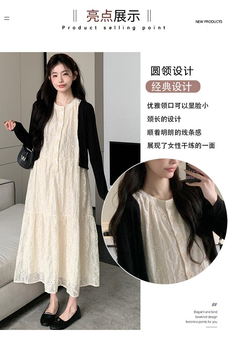 Ropa de Maternidad 2025 Verano Nuevo Encaje Recorte Estilo Coreano Vestido + Ropa de Protección Solar Traje de Maternidad de Dos Piezas Falda