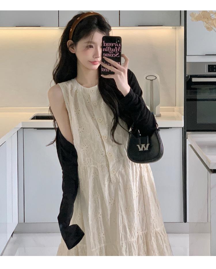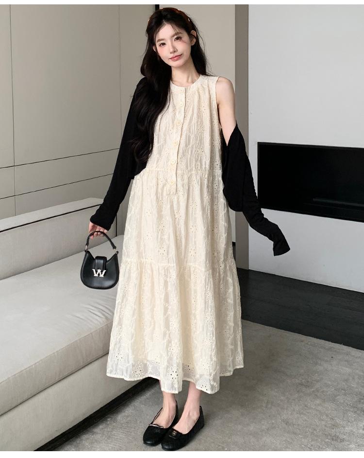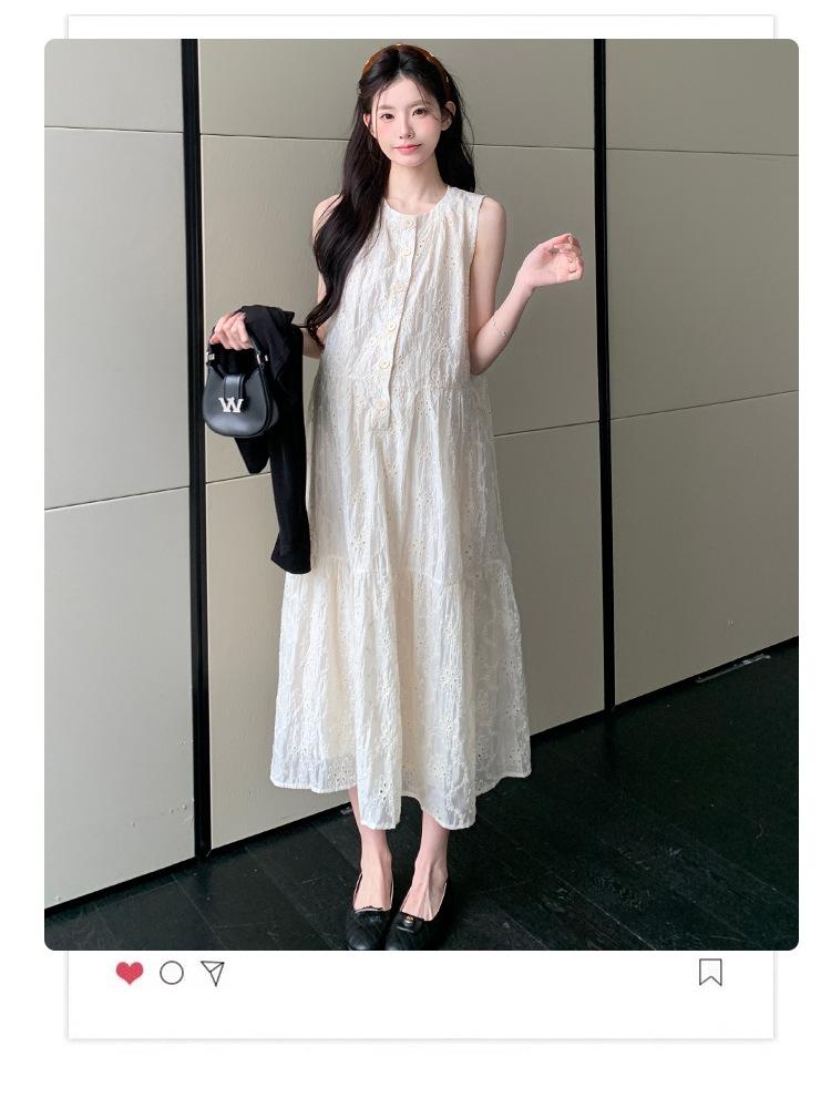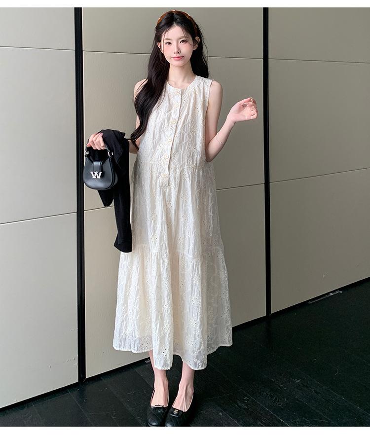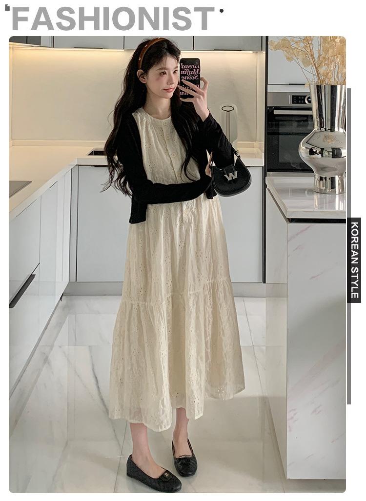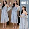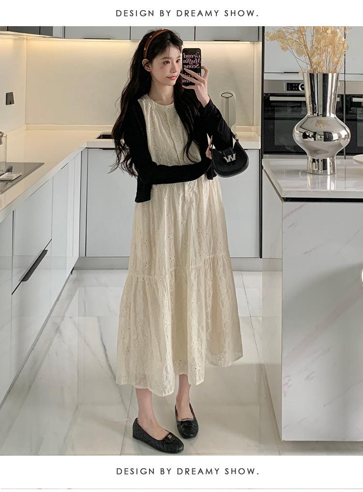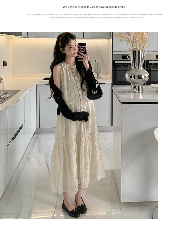 Ropa de Maternidad 2025 Verano Nuevo Encaje Recorte Estilo Coreano Vestido + Ropa de Protección Solar Traje de Maternidad de Dos Piezas Falda