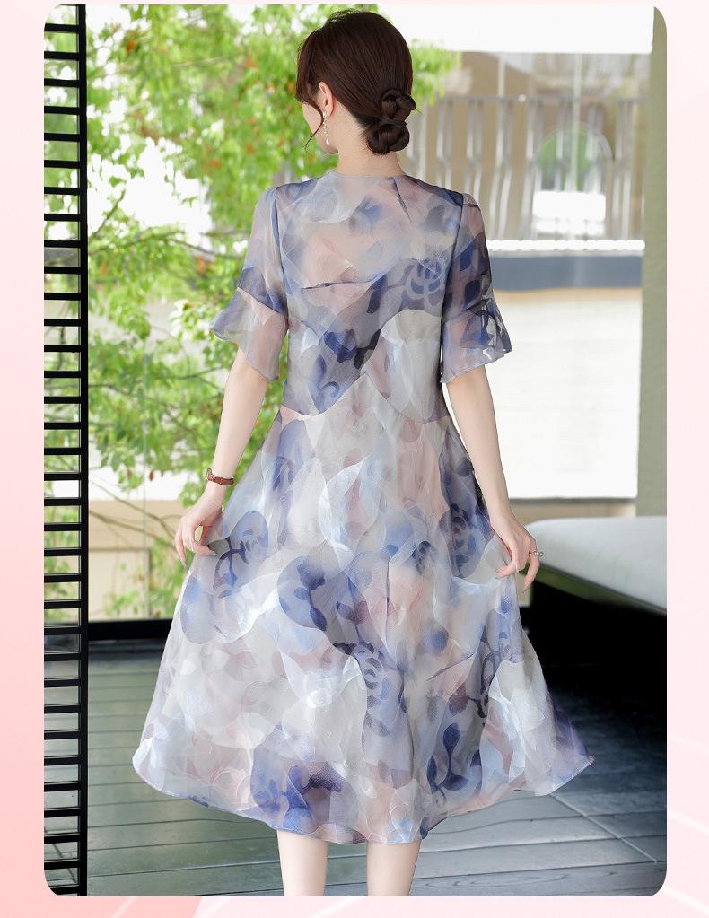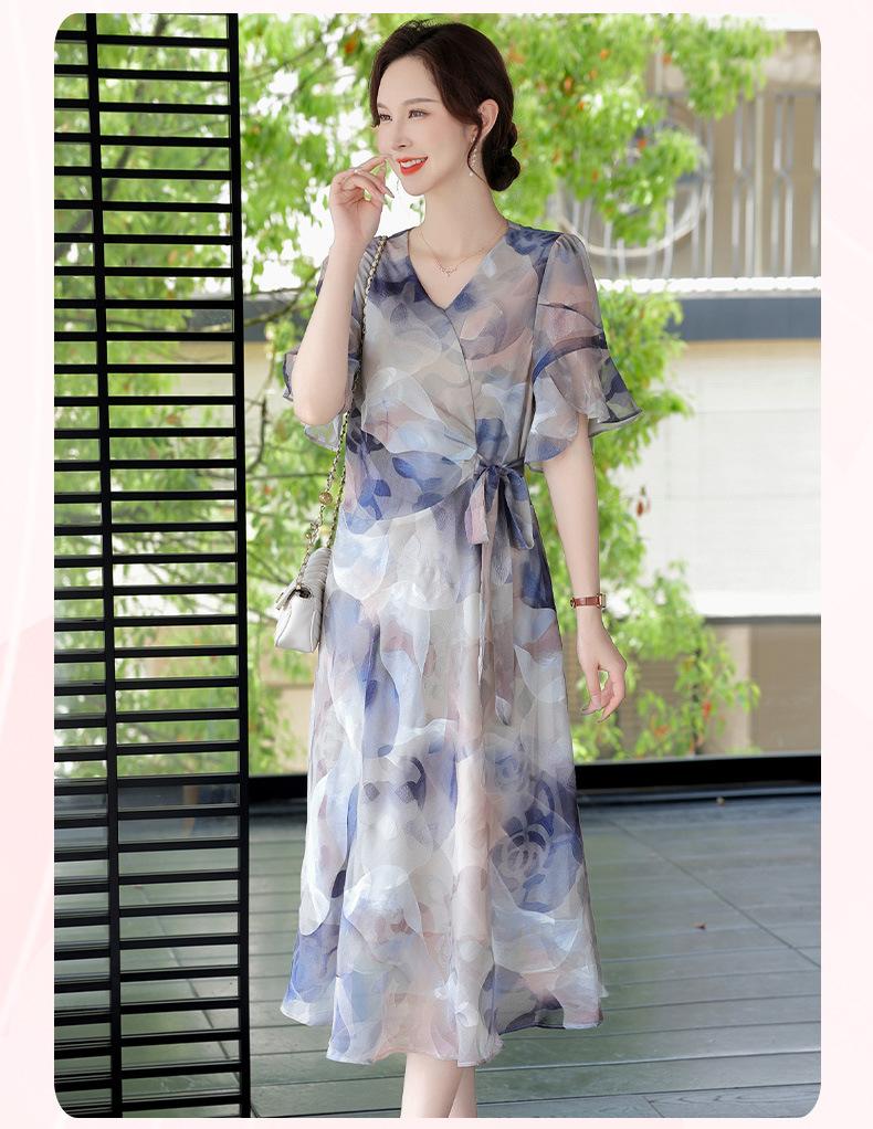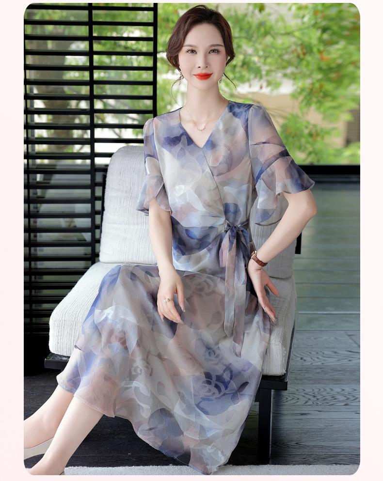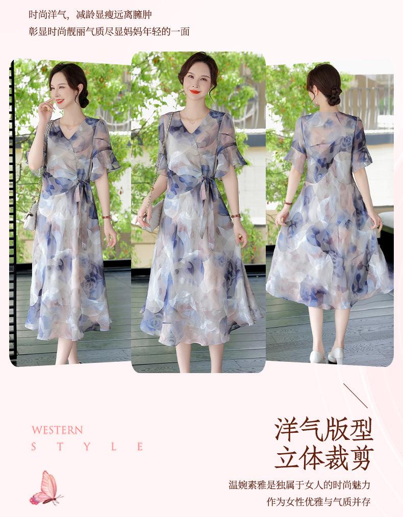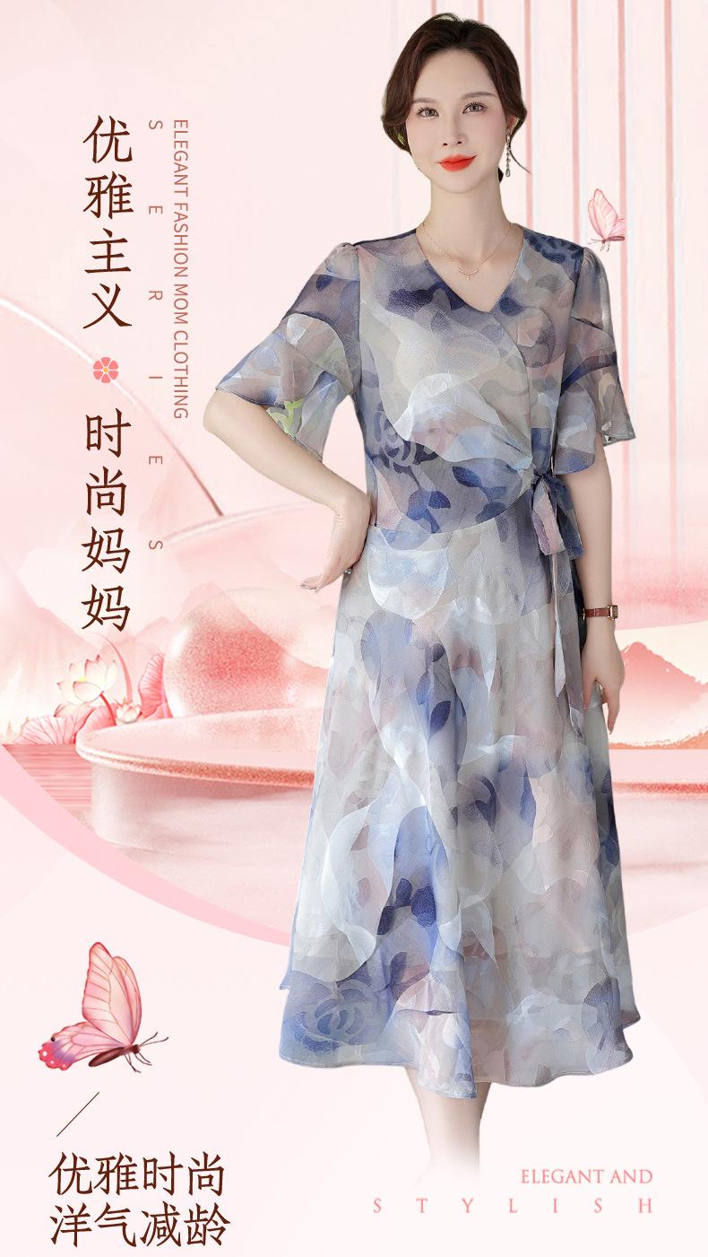 Vestido de gasa elegante para mujer, estilo madre de moda, de verano, para señoras de mediana edad, falda de 40 y 50 años
