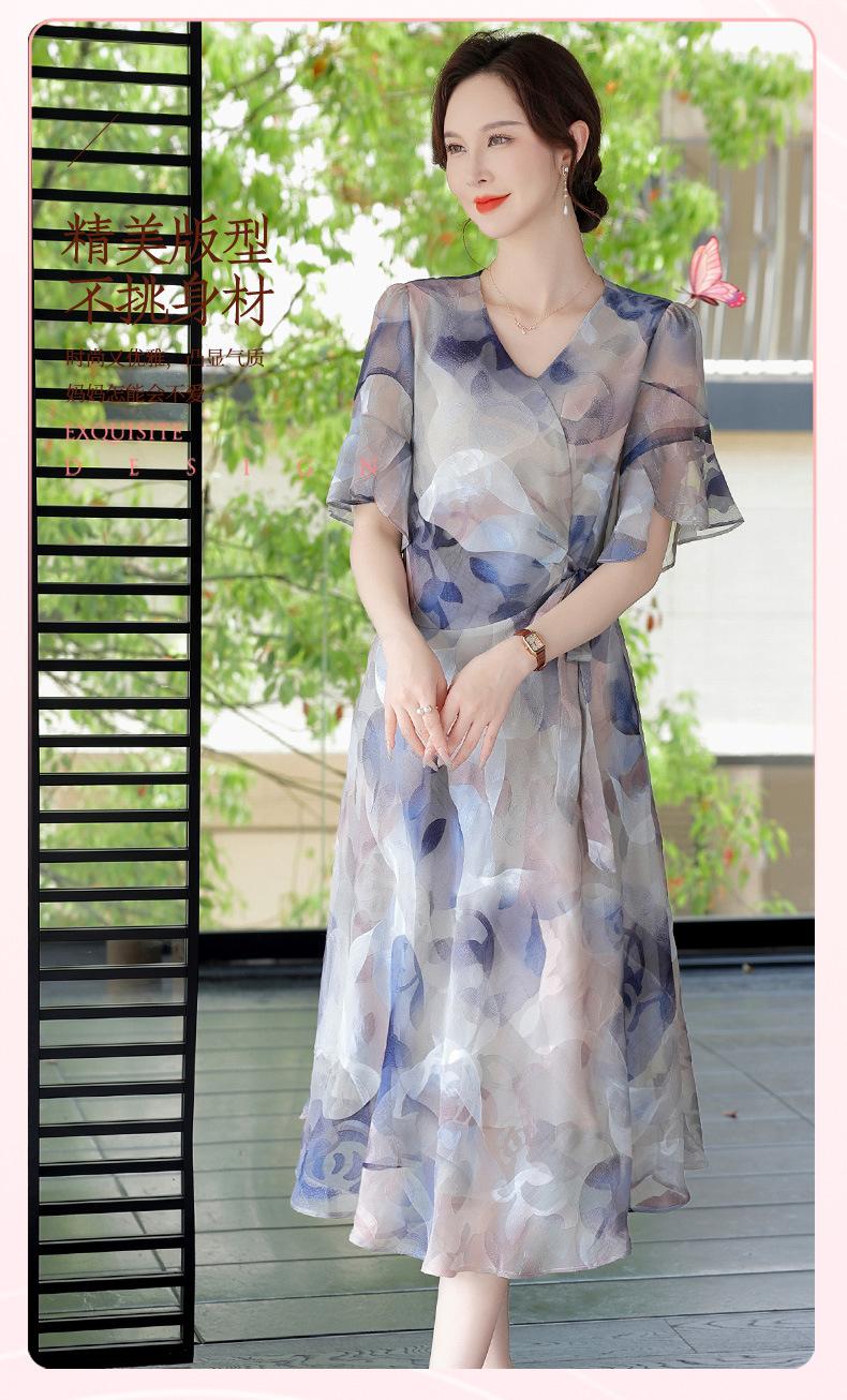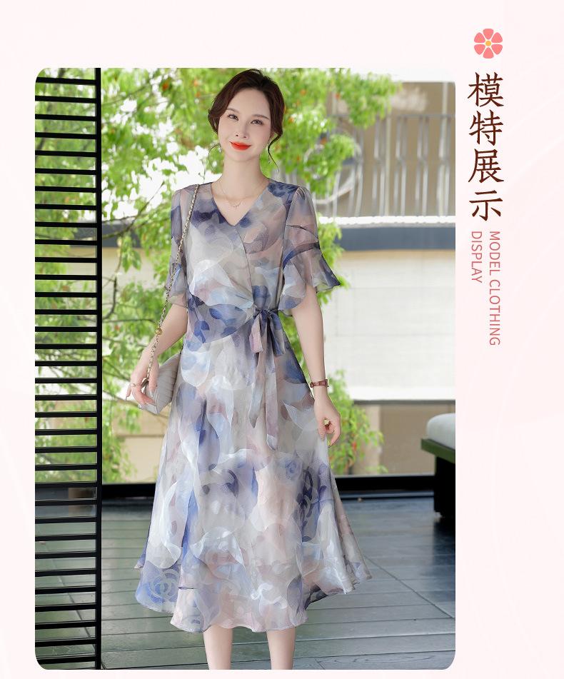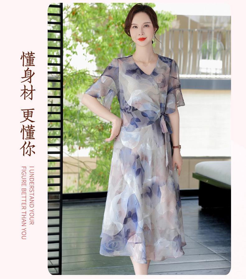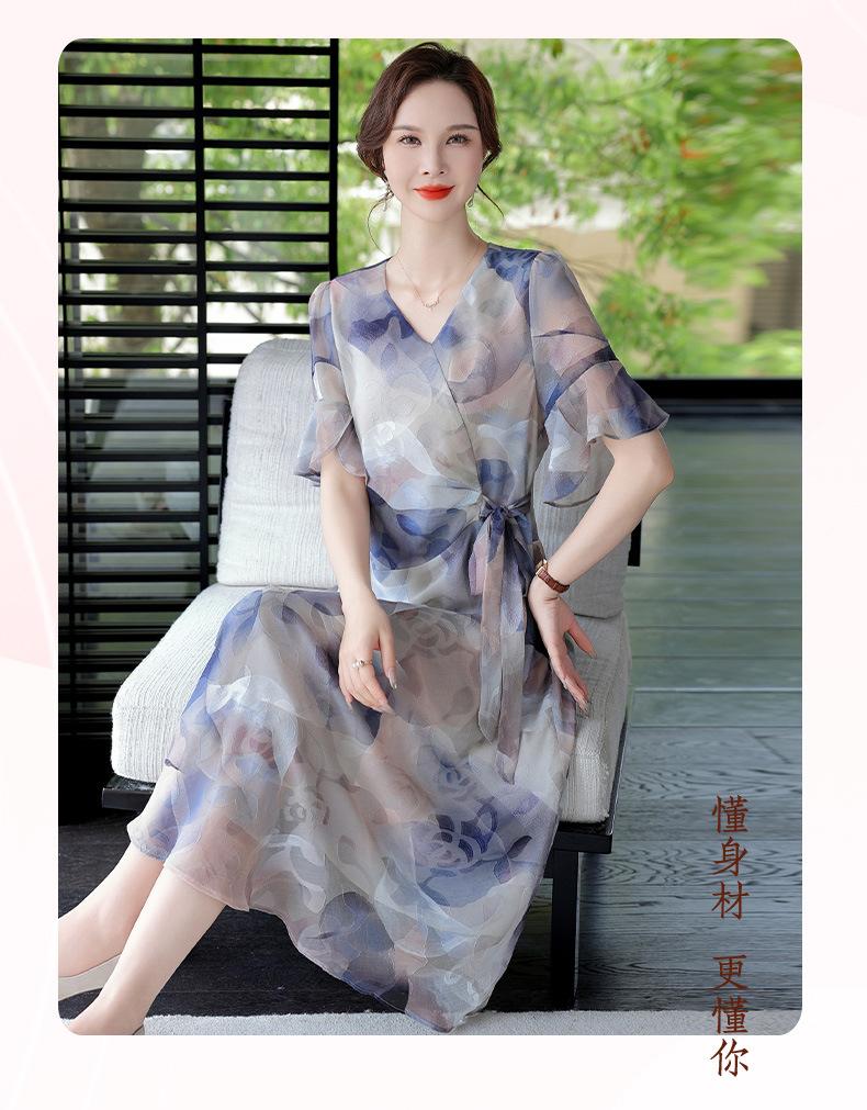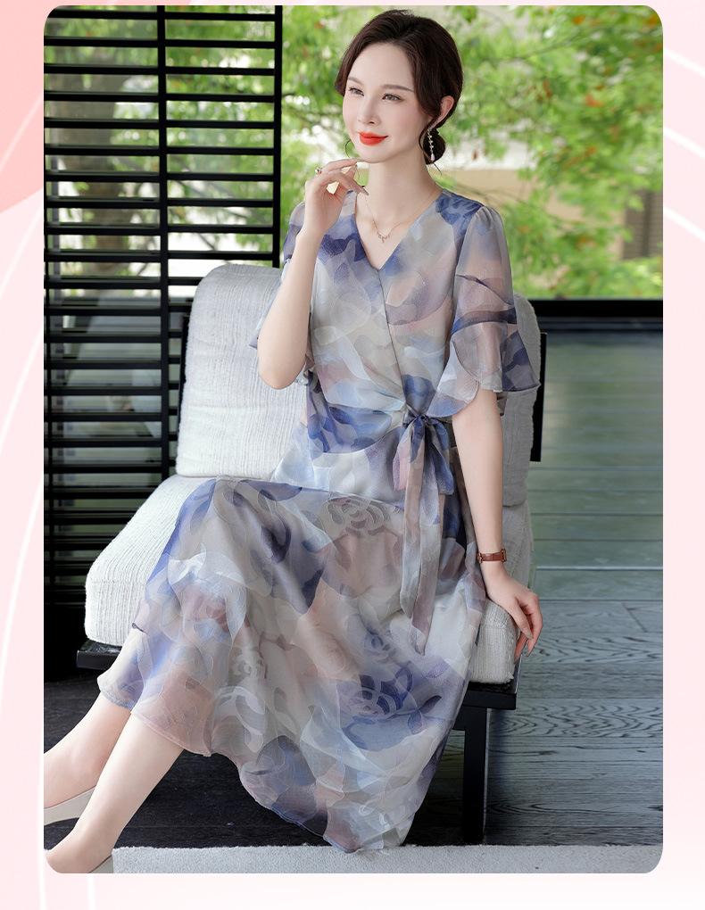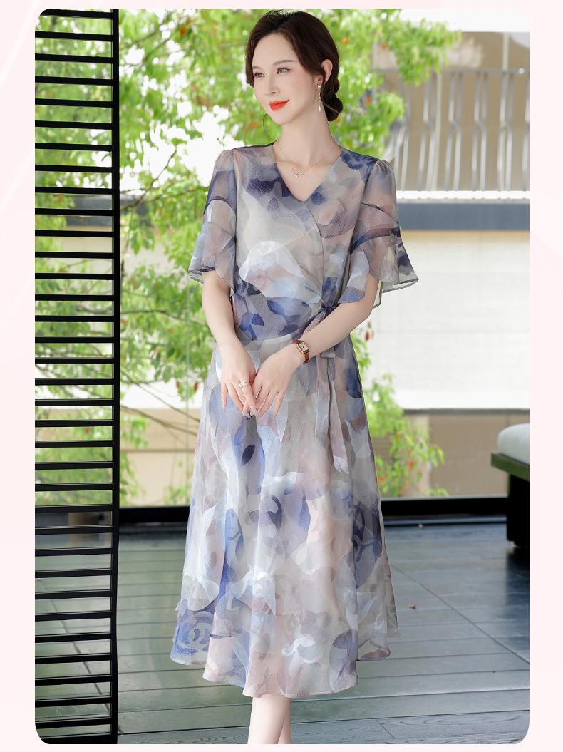 Vestido de gasa elegante para mujer, estilo madre de moda, de verano, para señoras de mediana edad, falda de 40 y 50 años