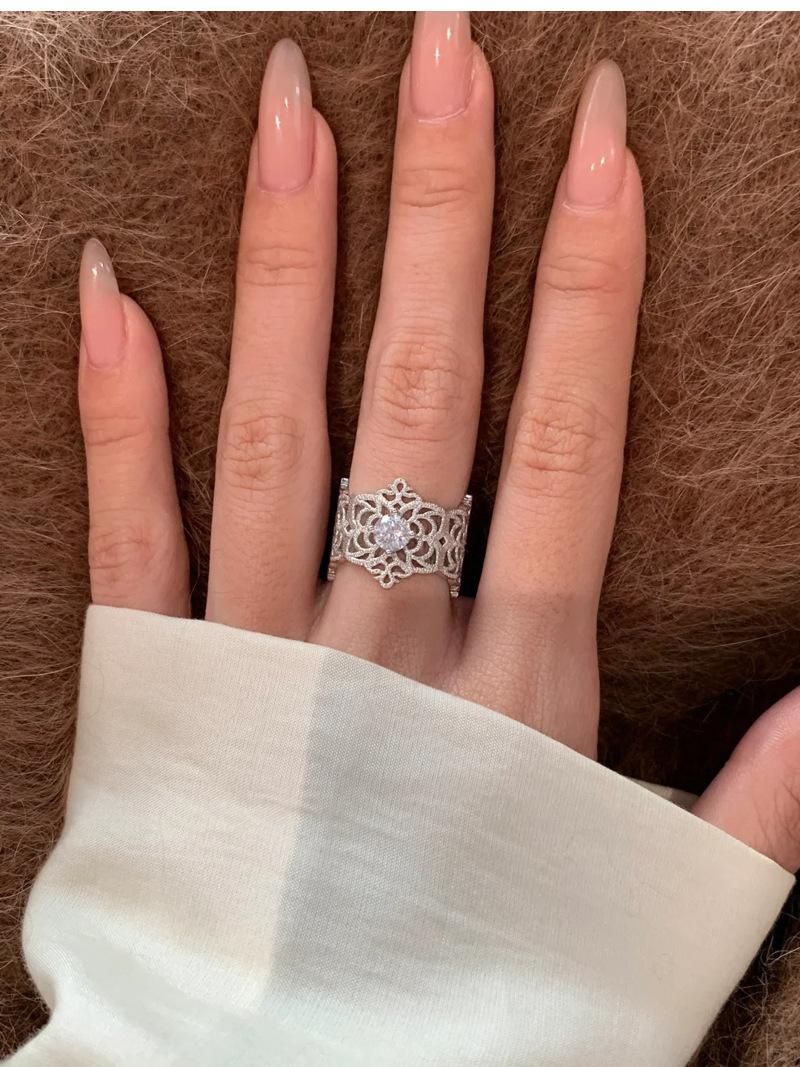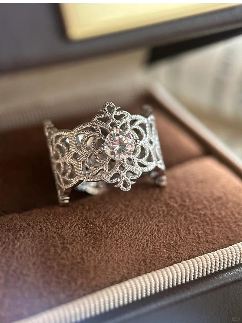 Anillo de encaje de diamantes estilo europeo y americano 2025 para mujer, diseño nicho, lujo ligero de alta gama, anillo ajustable de apertura para combinar con todo