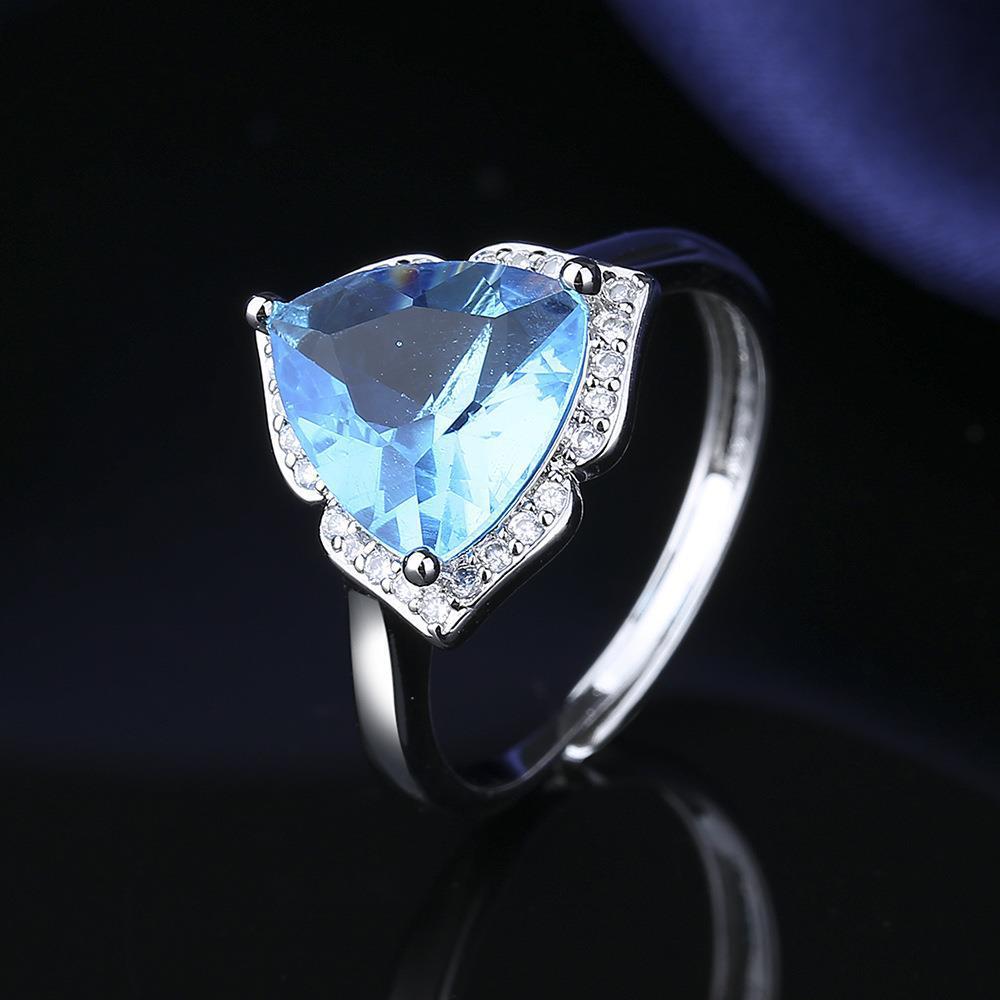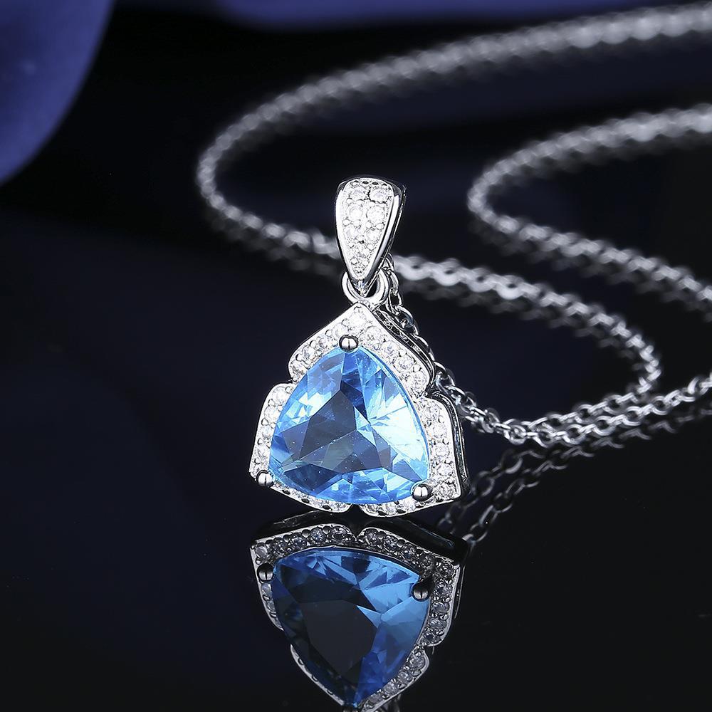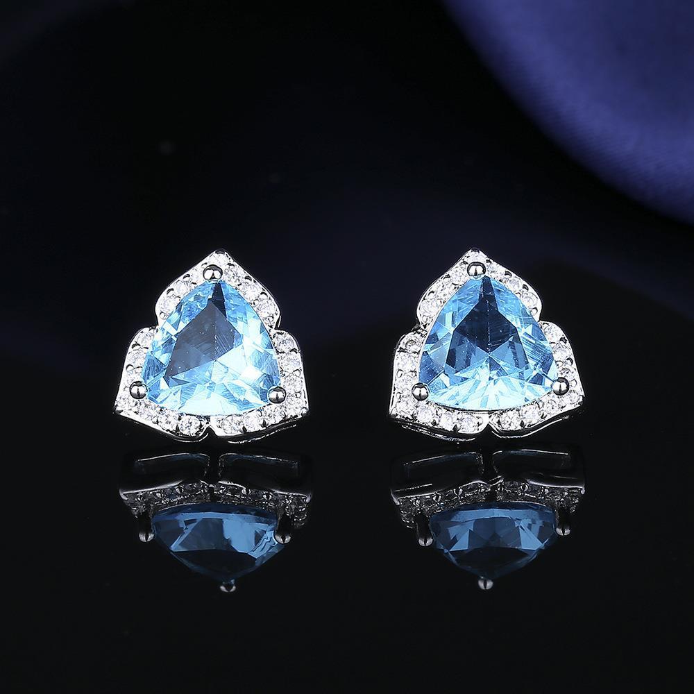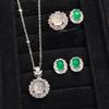 Conjunto de anillo, collar y pendientes de circonitas naturales de color aguamarina, elegante y a la moda, de estilo europeo y americano, muy popular en joyería para mujer.