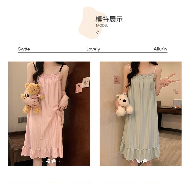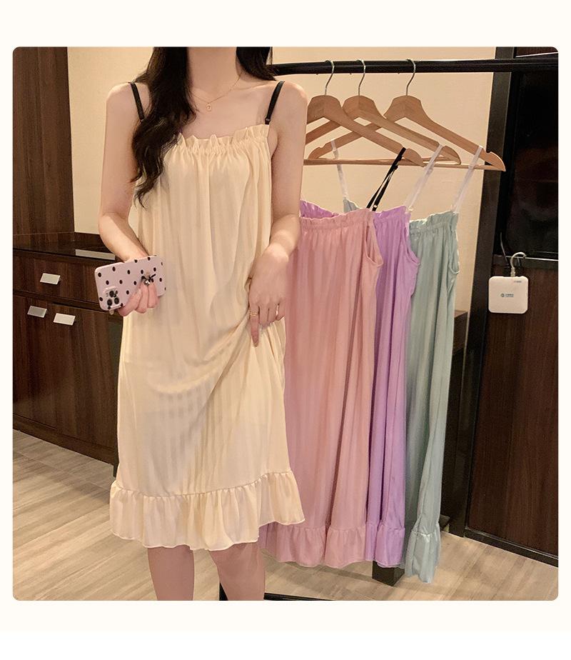 Color Sólido Sexy Chica Japonesa Verano Nuevo Estilo Hada Pijama con Almohadillas para el Busto y Tirantes, Vestidos de Mujer al Mayoreo