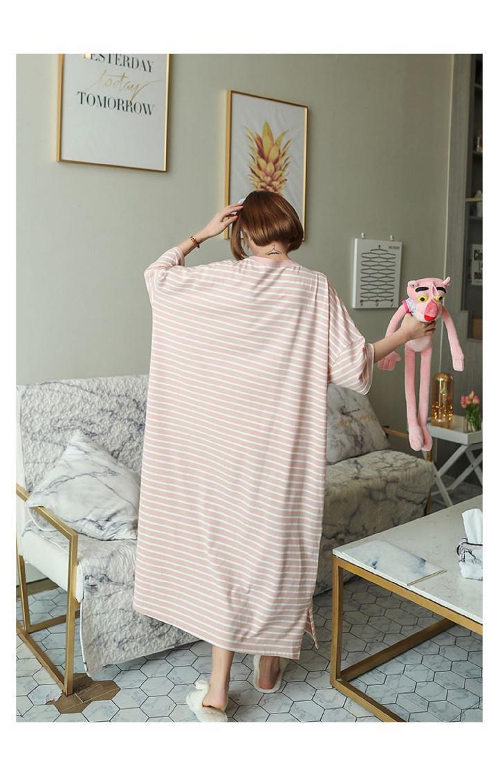 Camisón de seda de leche a rayas de verano para mujer, pijama largo de manga corta, ropa de casa holgada y dulce, vestido de abrigo