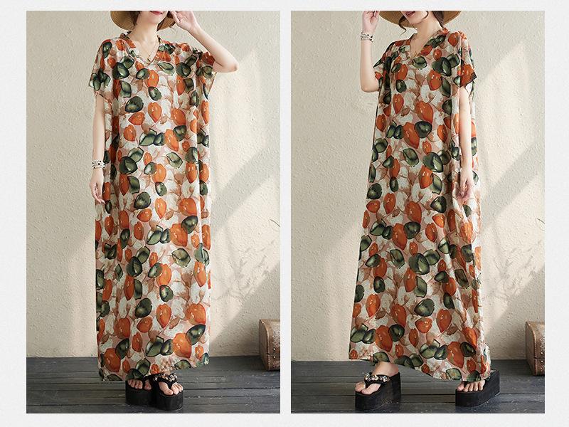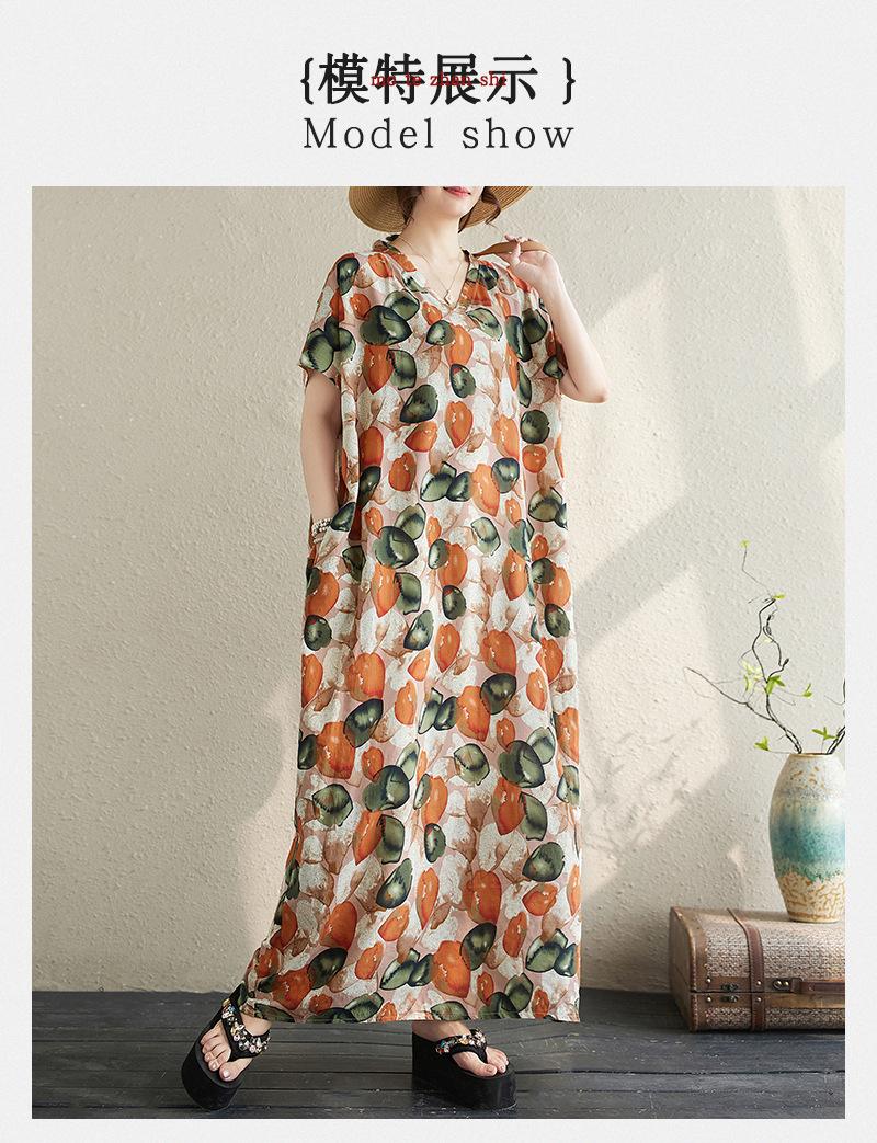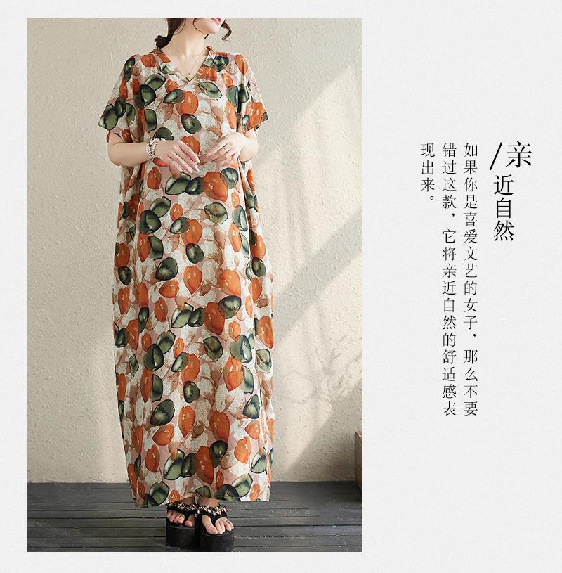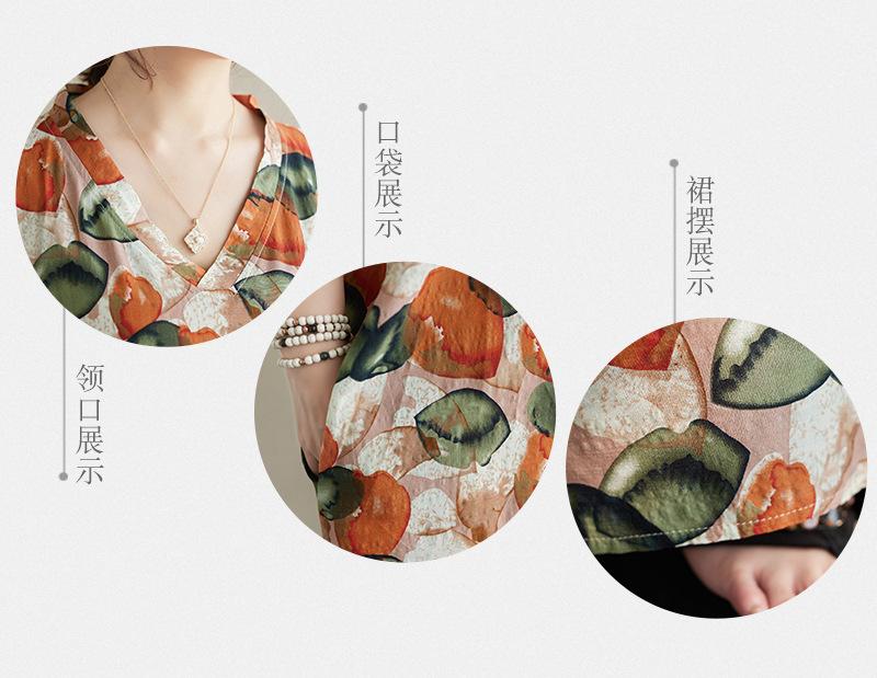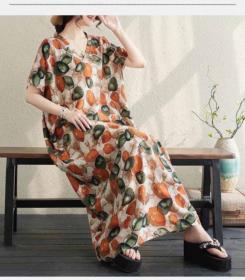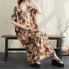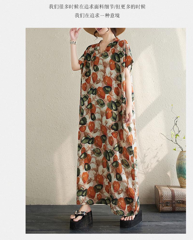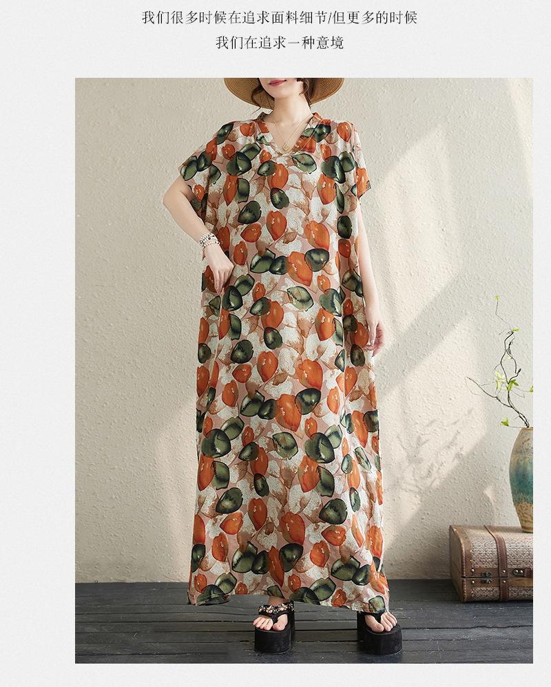 2024 Verano Nuevo Artístico Retro Suelto Cuello en V Manga Corta Bohemio Playa Vestido Grande de Vuelo Mujeres