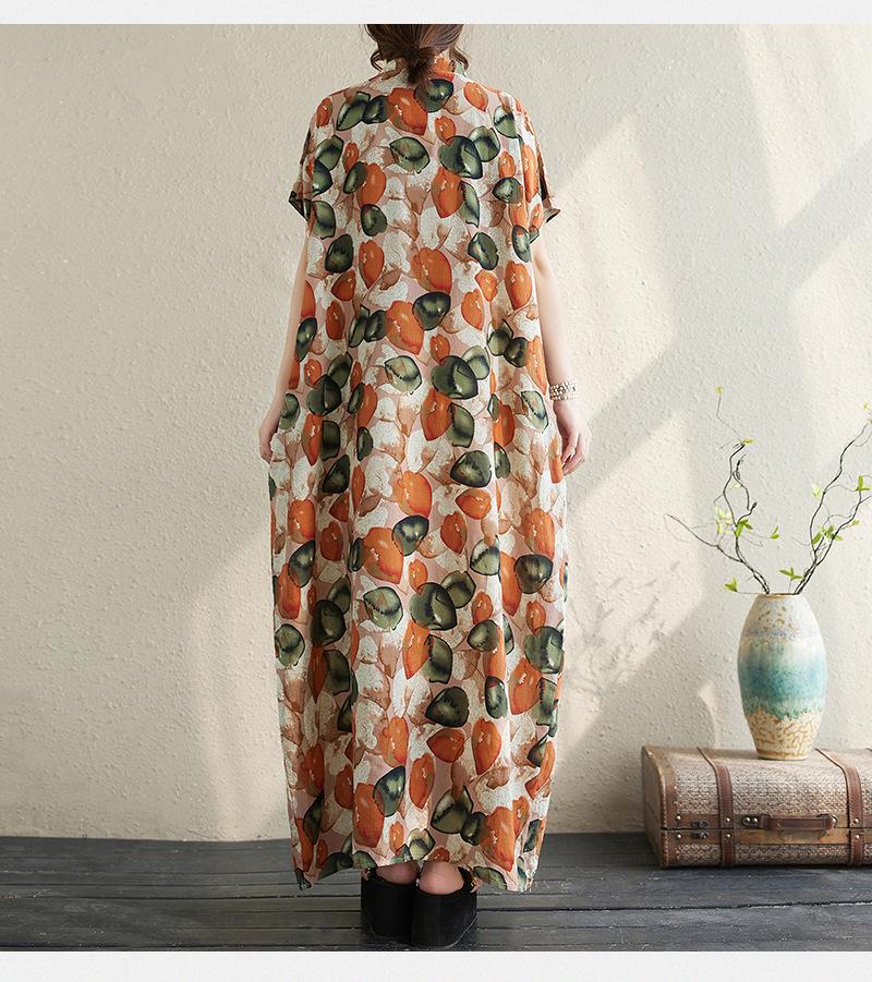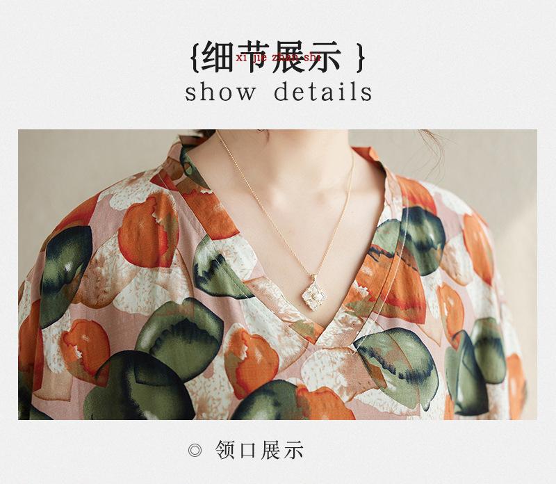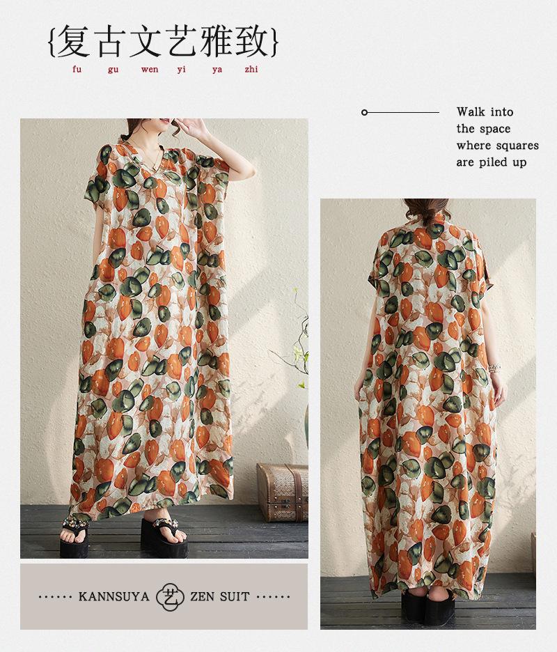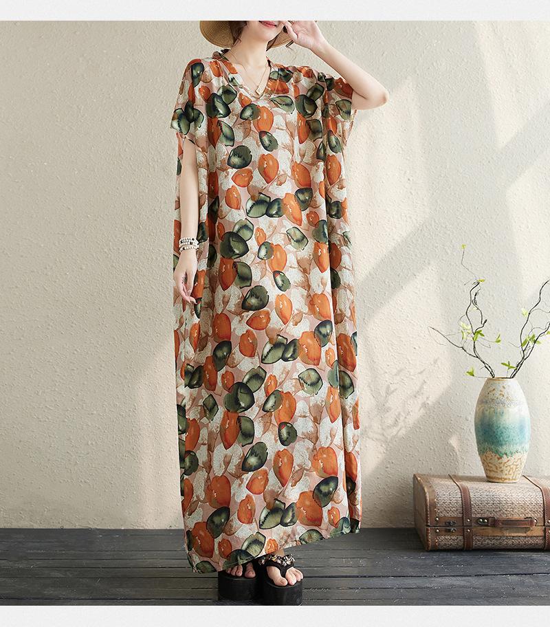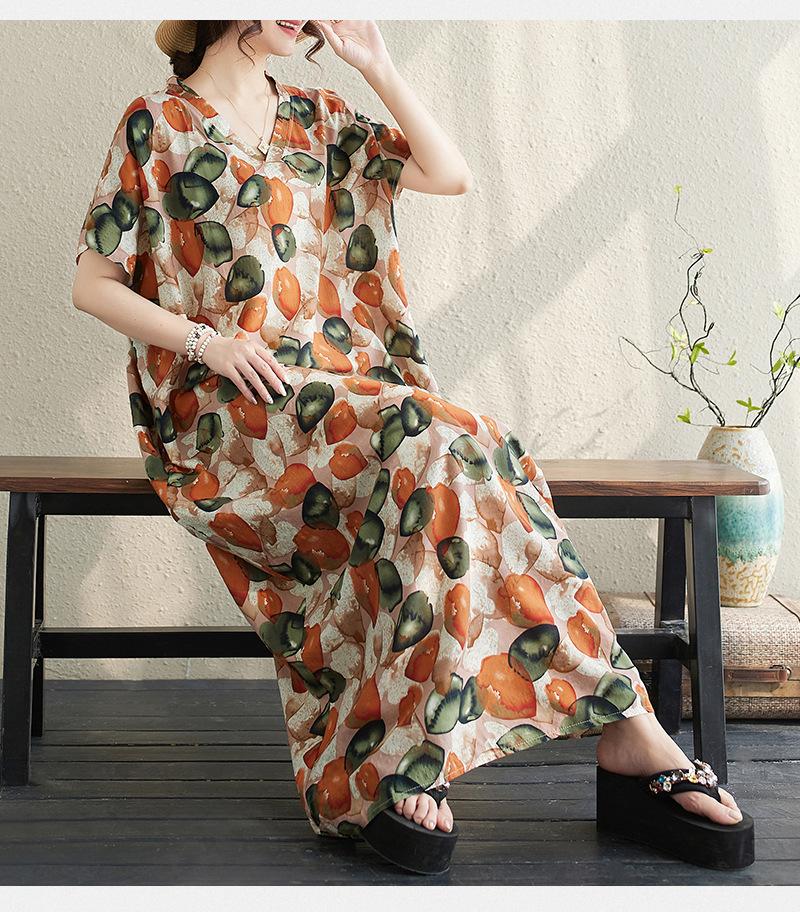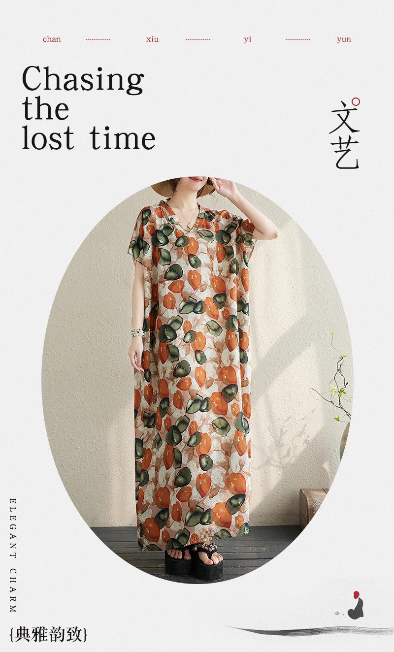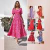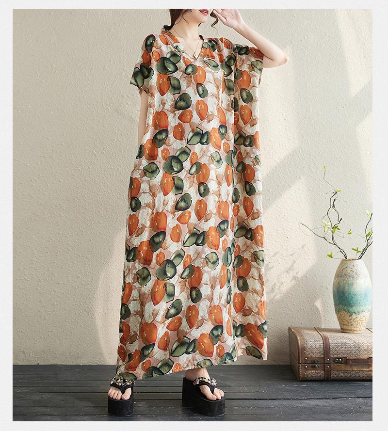 2024 Verano Nuevo Artístico Retro Suelto Cuello en V Manga Corta Bohemio Playa Vestido Grande de Vuelo Mujeres
