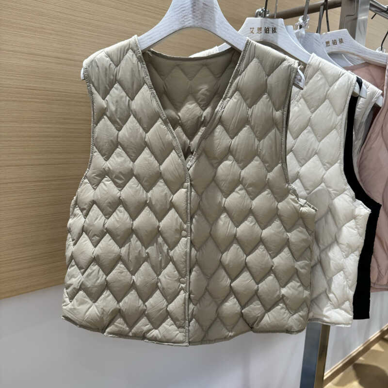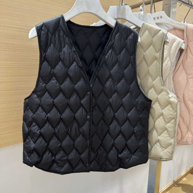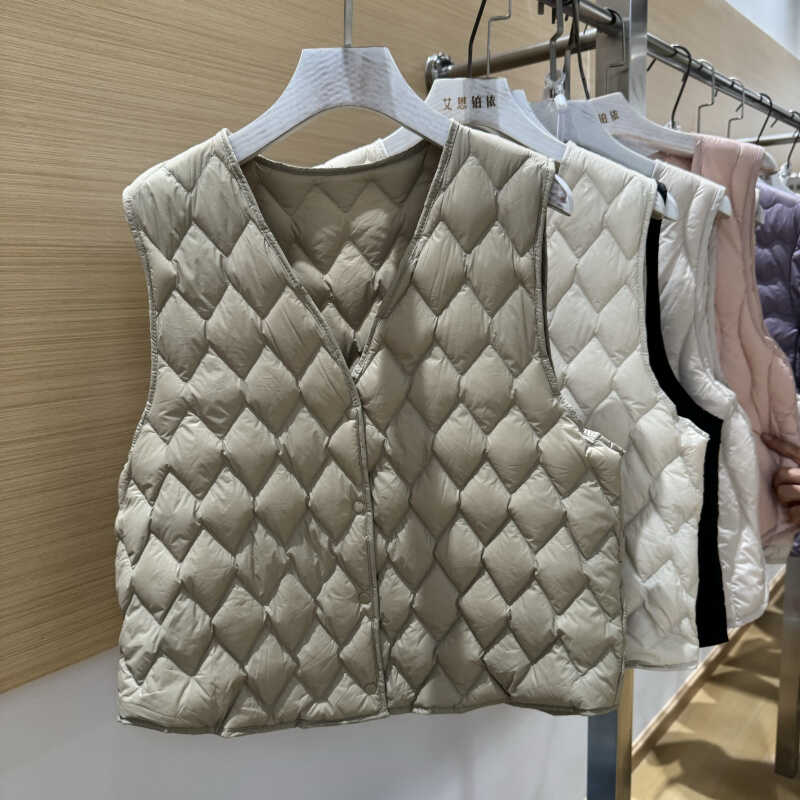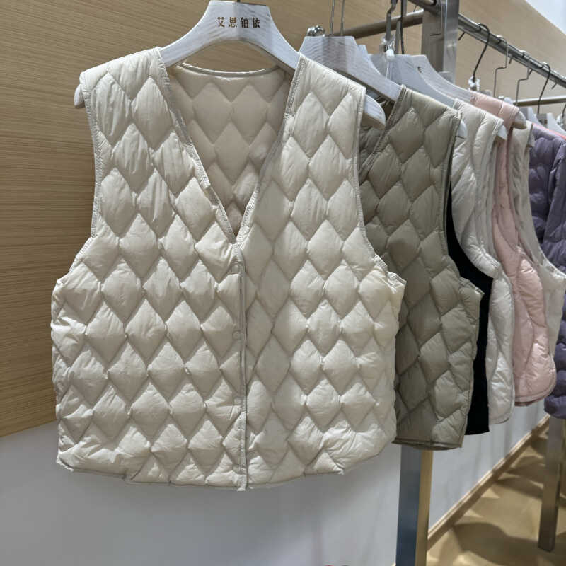 Plumón de pato blanco Chaleco ligero de plumón para mujer con cuello en V Chaleco Waistoutwear Chaqueta cálida 2024 Tendencia de otoño e invierno