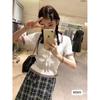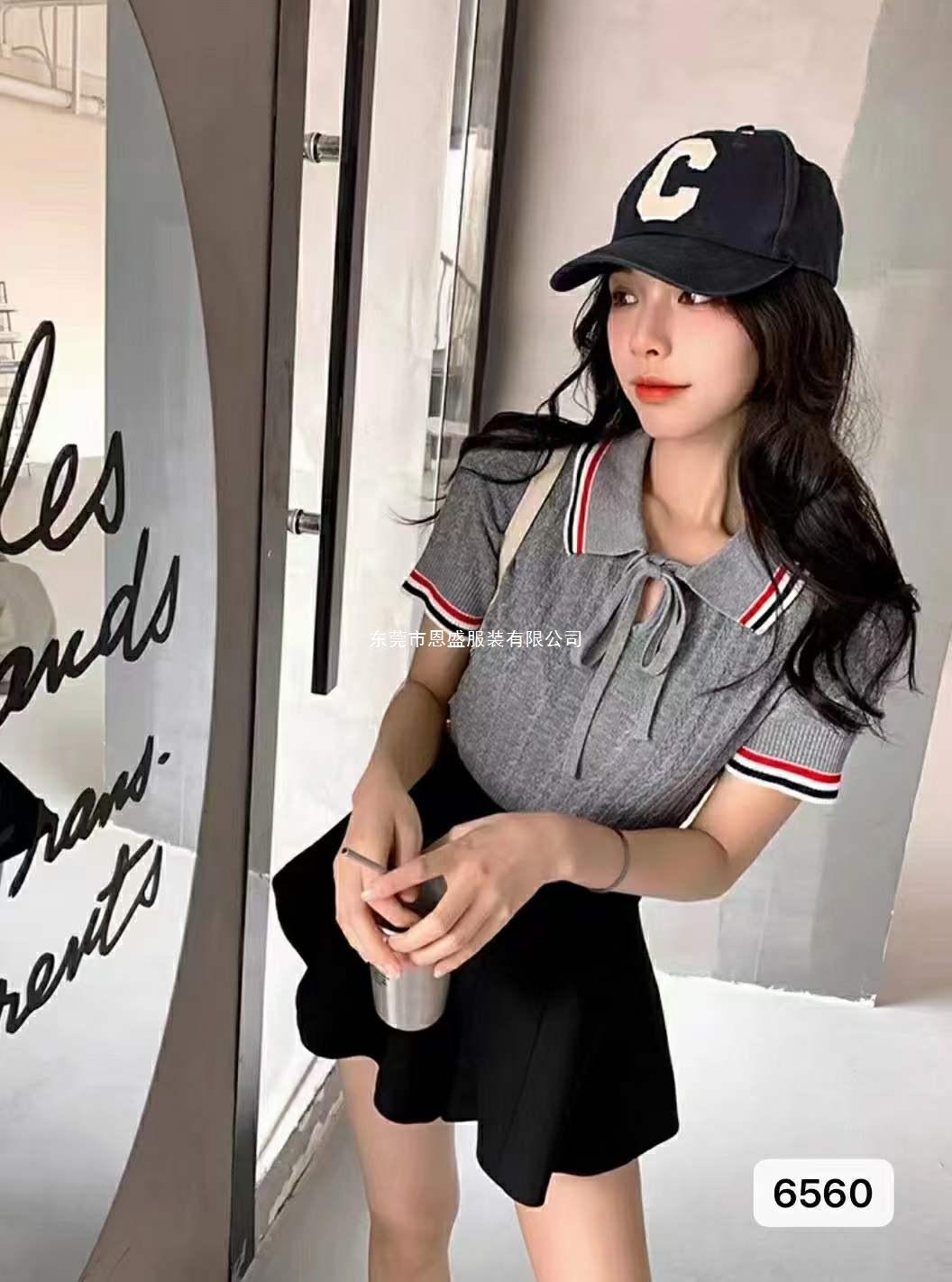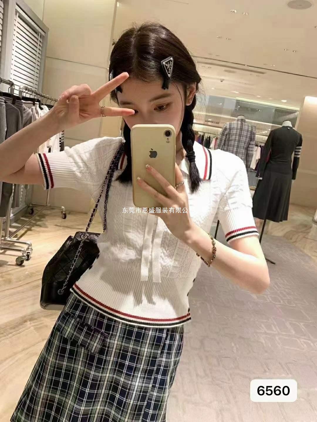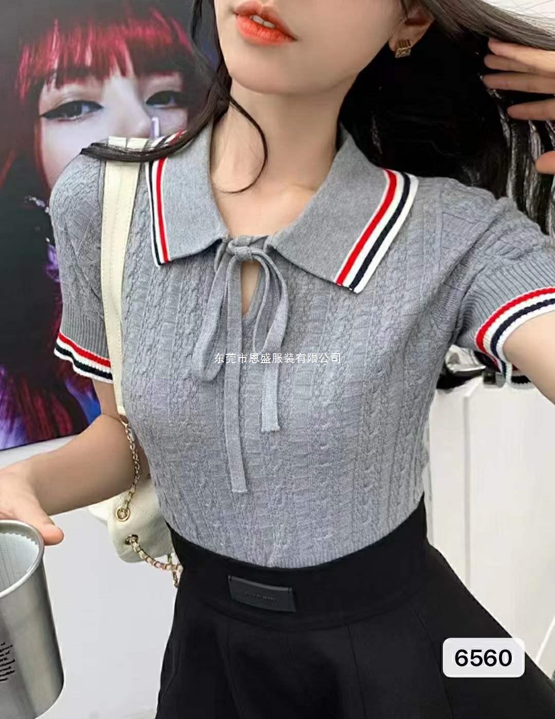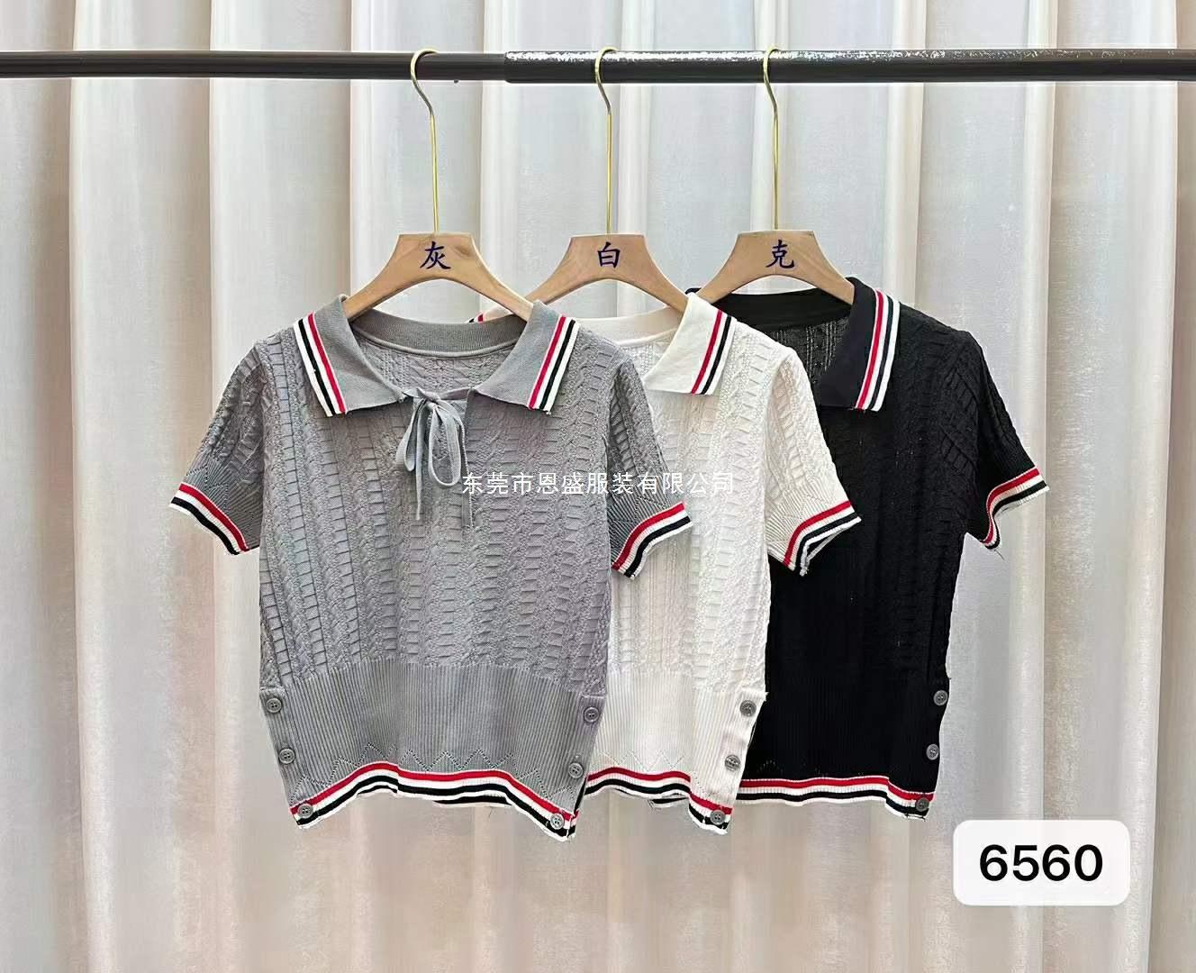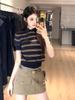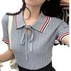 Suéter estilo preppy de verano Tb que reduce la edad, elástico, con aspecto adelgazante, de punto con solapa de lana a rayas de color, cuello polo con tira