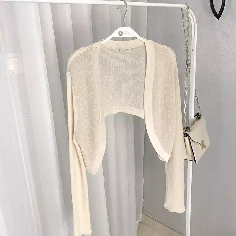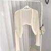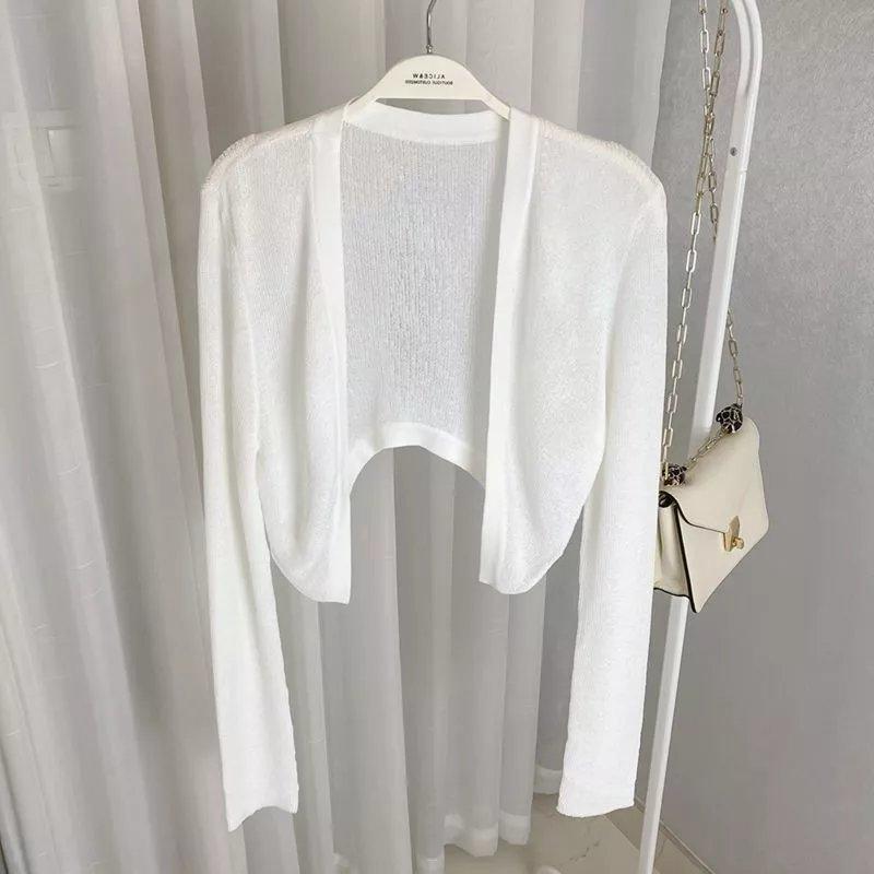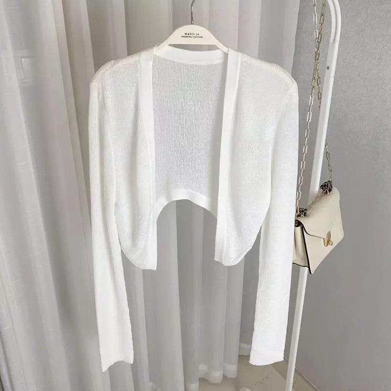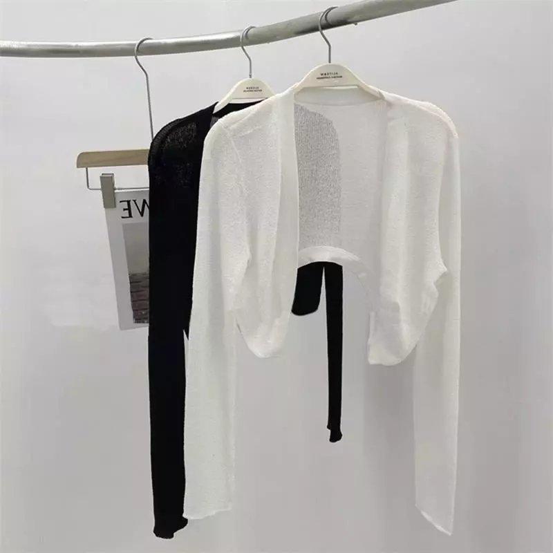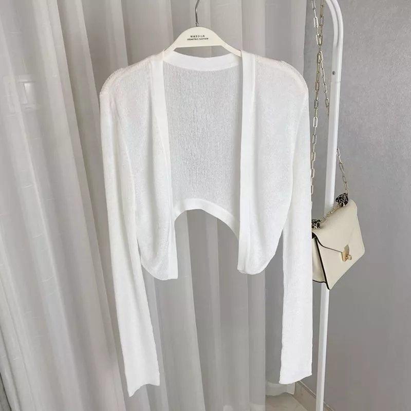 Chaqueta tipo cárdigan de punto de seda de hielo, cintura fina, chal de mujer, verano, con falda de tirantes, blusa con protección solar y aire acondicionado.