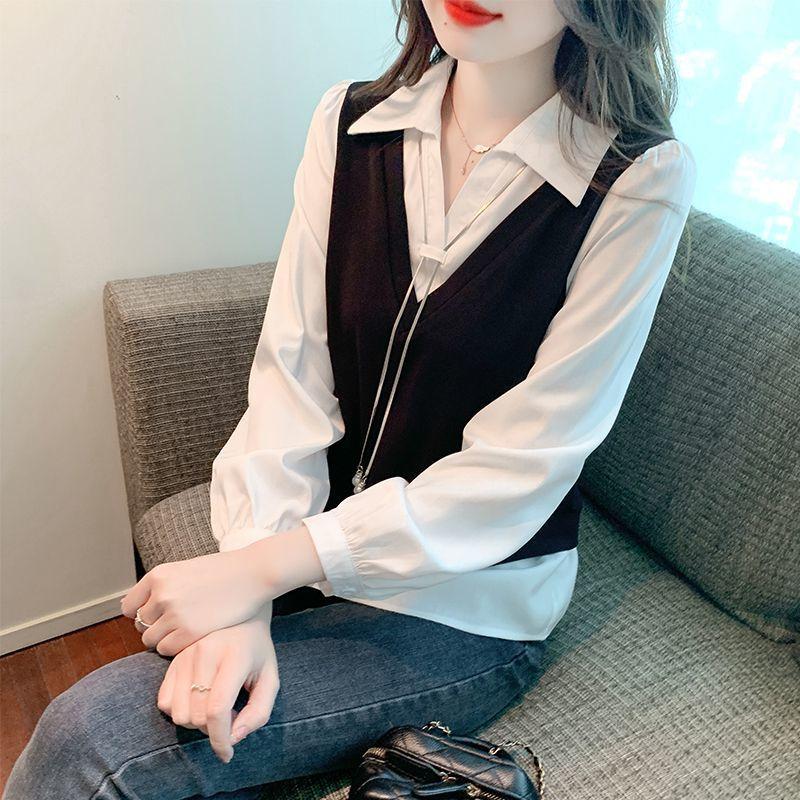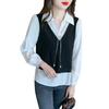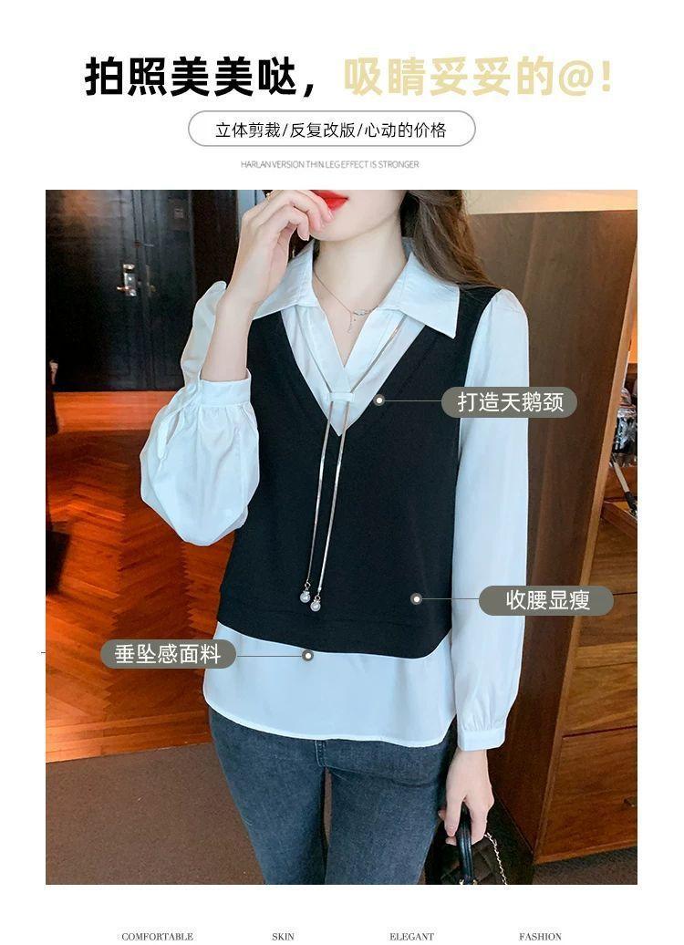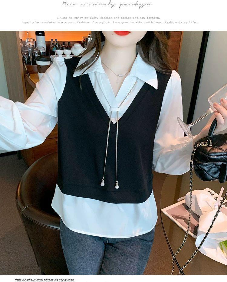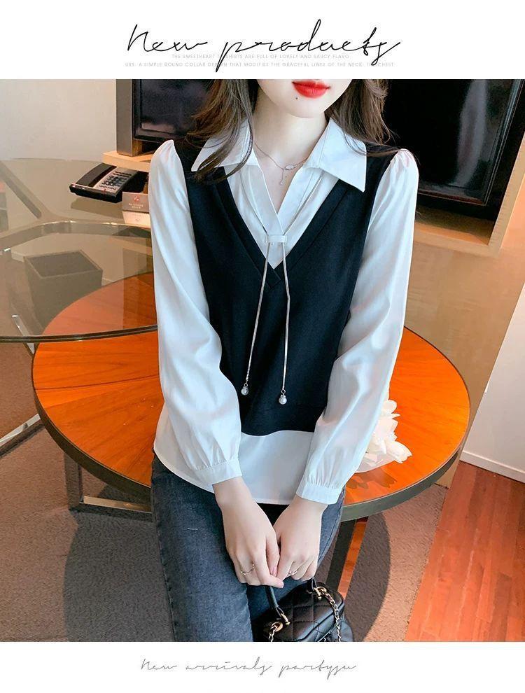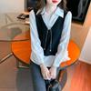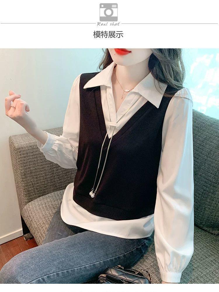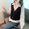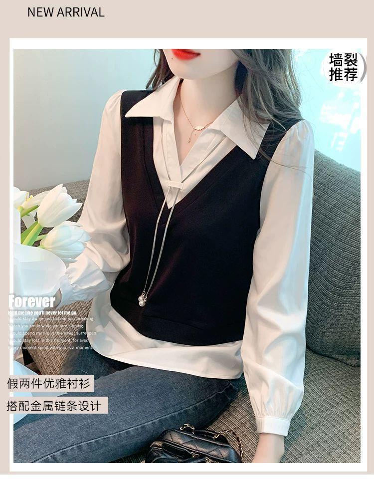 Camisa de manga larga de moda con cuello falso de dos piezas para mujer, otoño 2024, nuevo otoño, versión coreana versátil para mujer