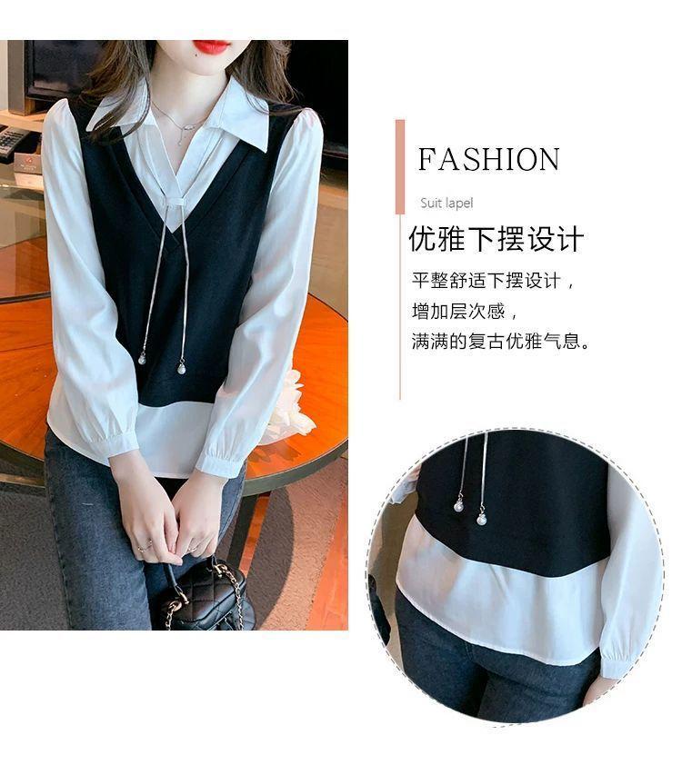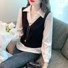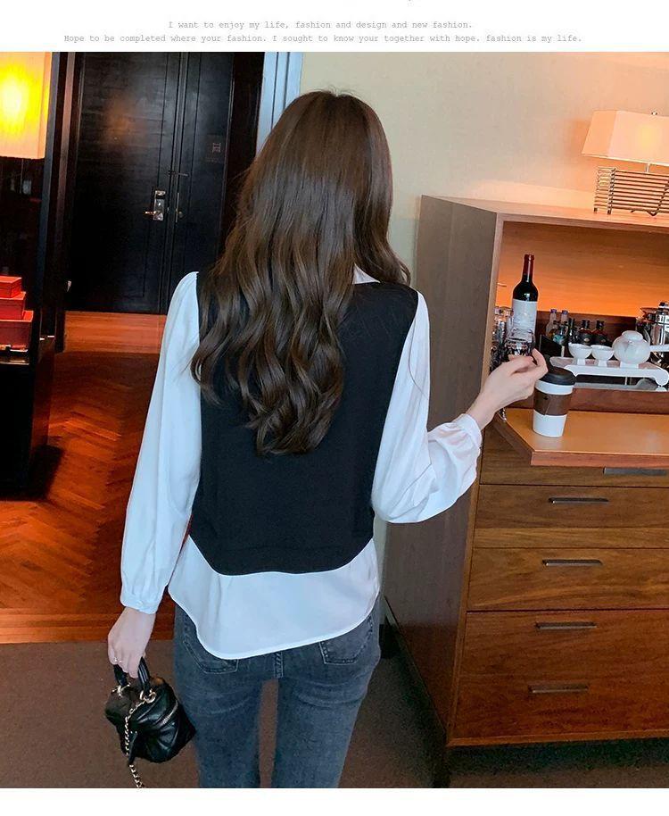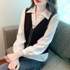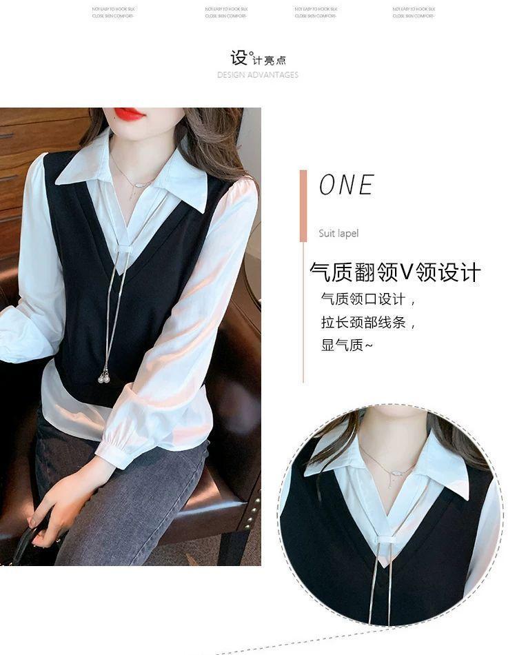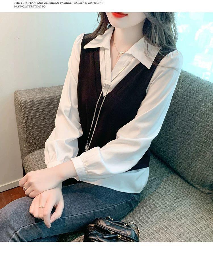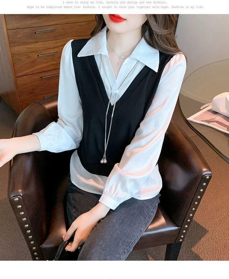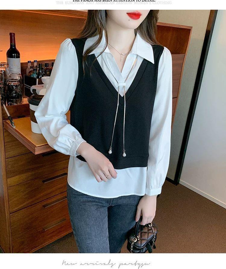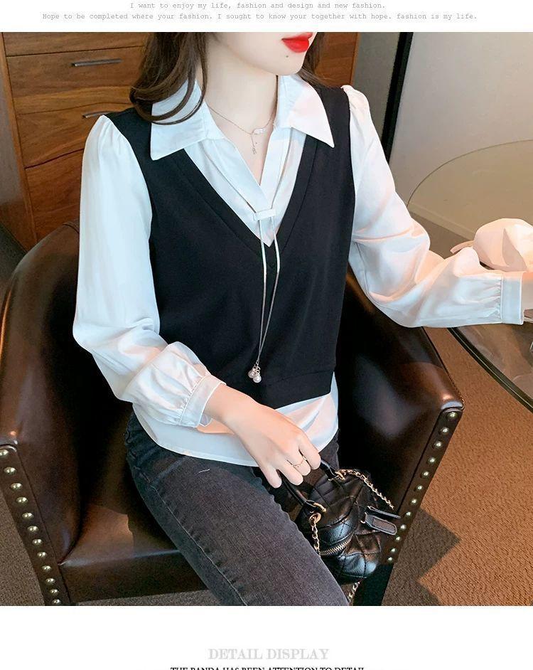 Camisa de manga larga de moda con cuello falso de dos piezas para mujer, otoño 2024, nuevo otoño, versión coreana versátil para mujer