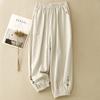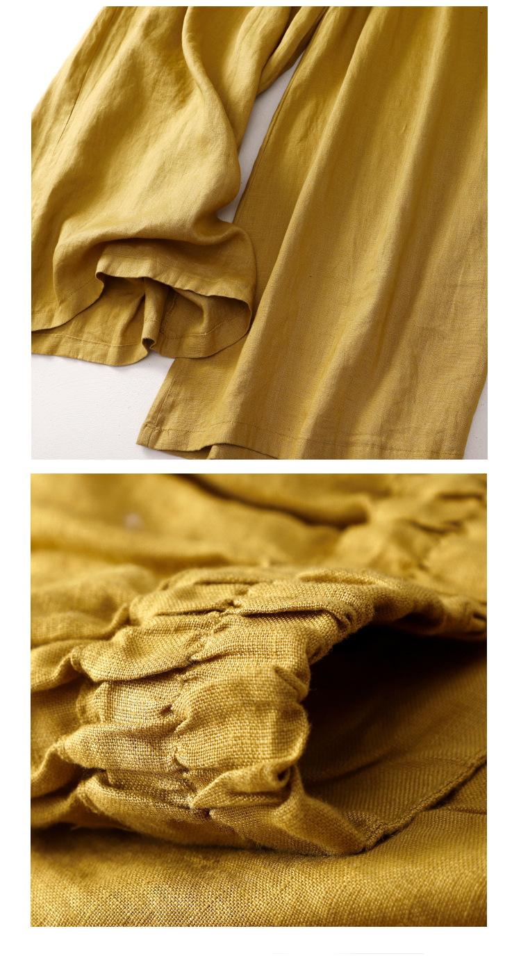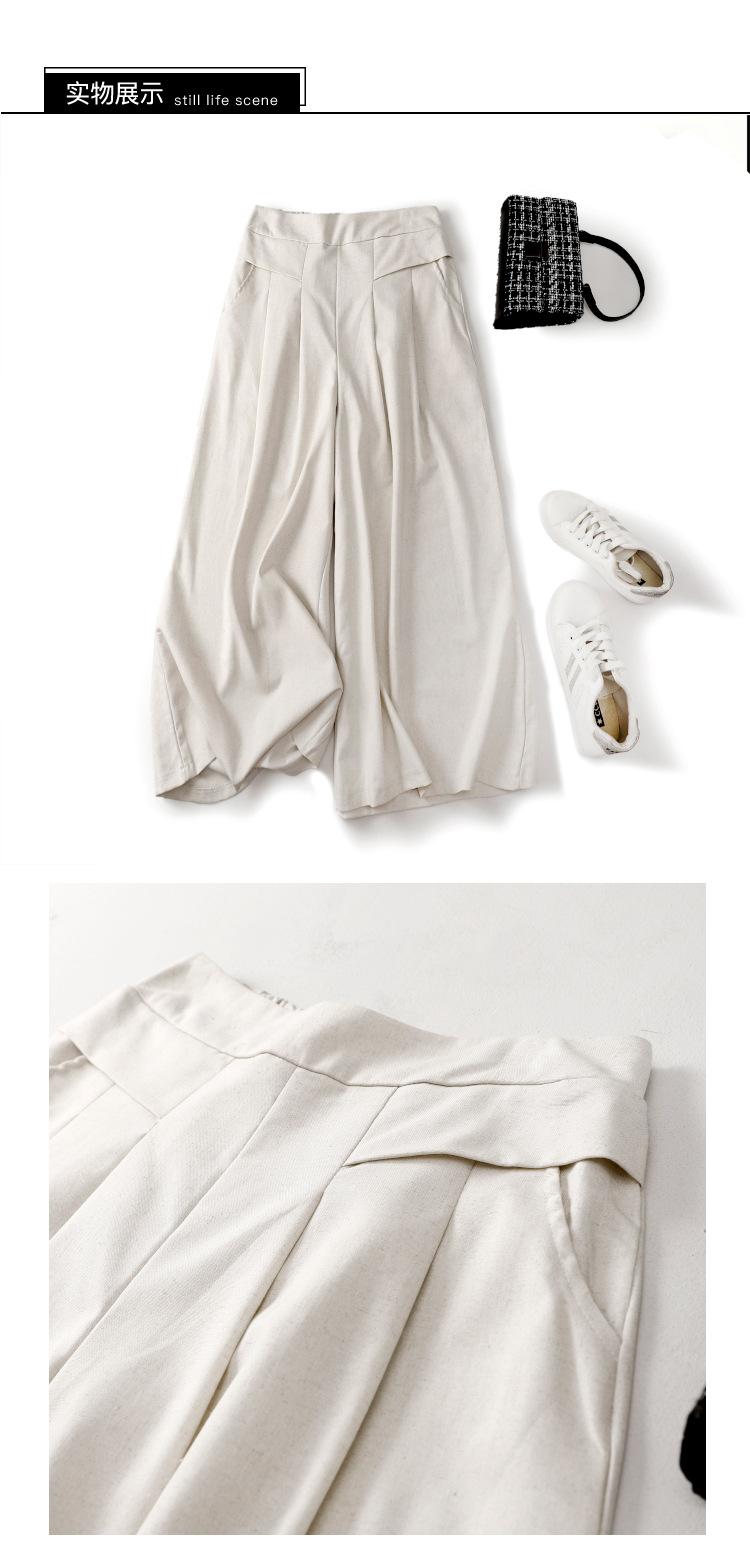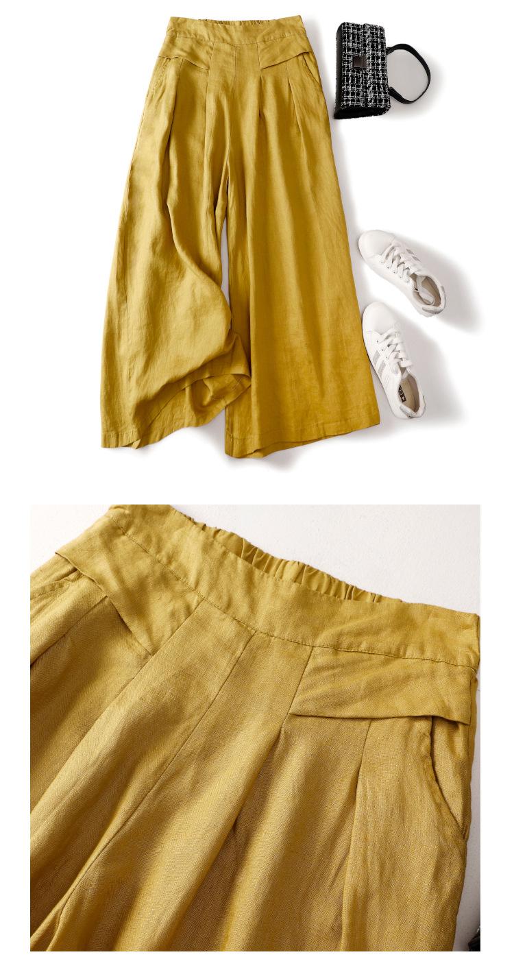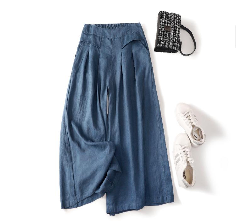 Pantalones de pierna ancha y corte holgado de algodón y lino de color liso para mujer, de tiro alto, informales, adelgazantes, talla real, 2024, 1186