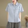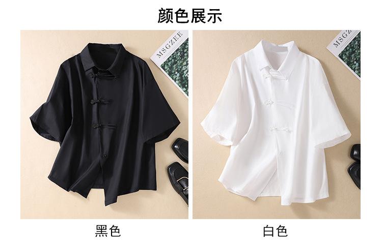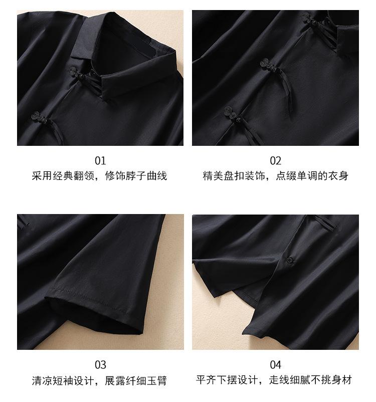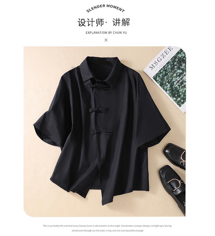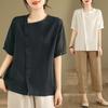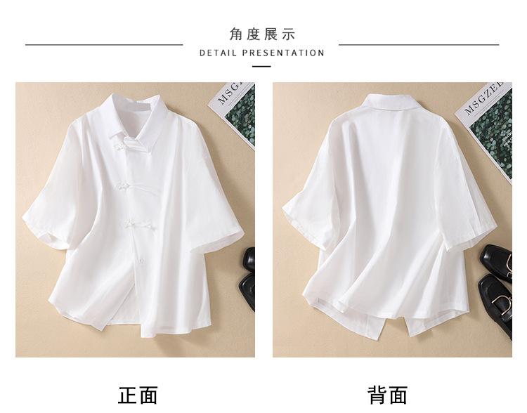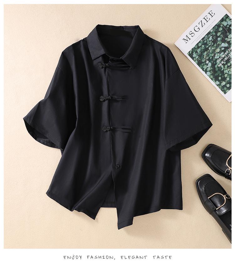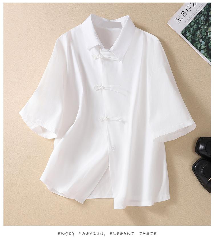 Camisa de manga corta con botones inclinados y sueltos, estilo artístico, para mujer, n.° 7529, verano 2024