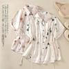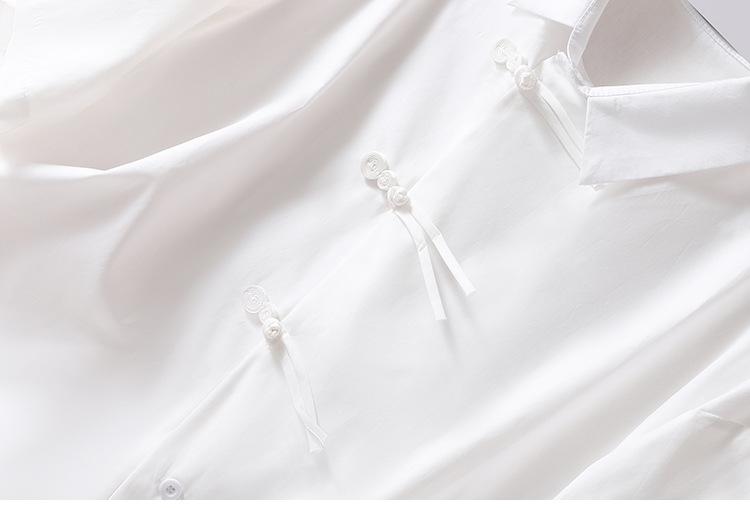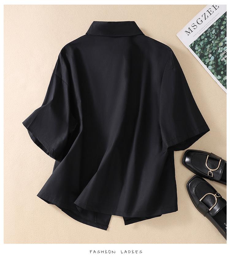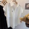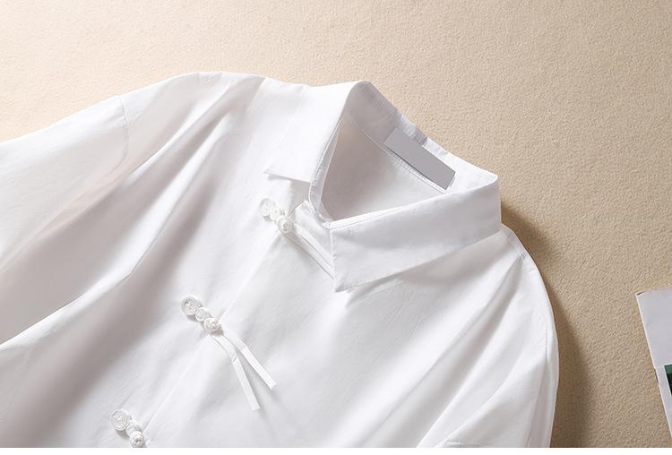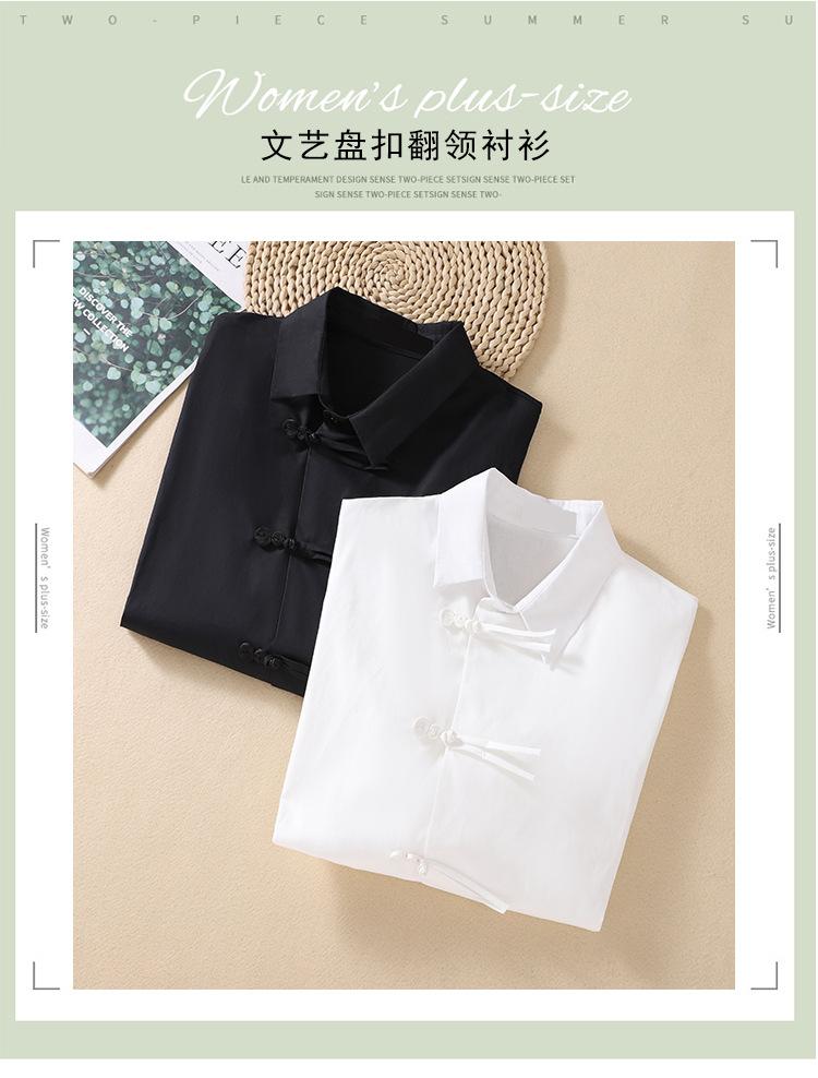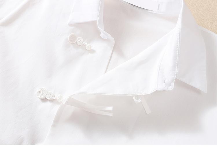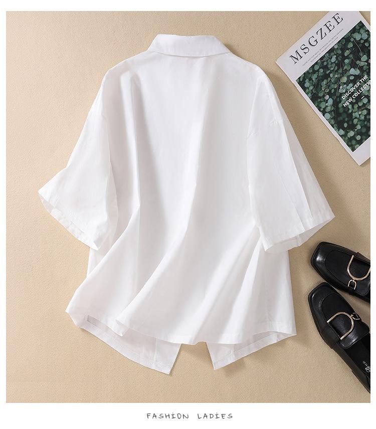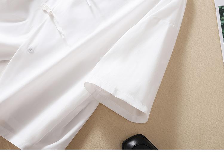 Camisa de manga corta con botones inclinados y sueltos, estilo artístico, para mujer, n.° 7529, verano 2024