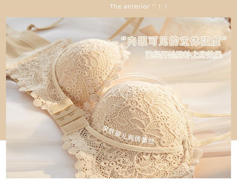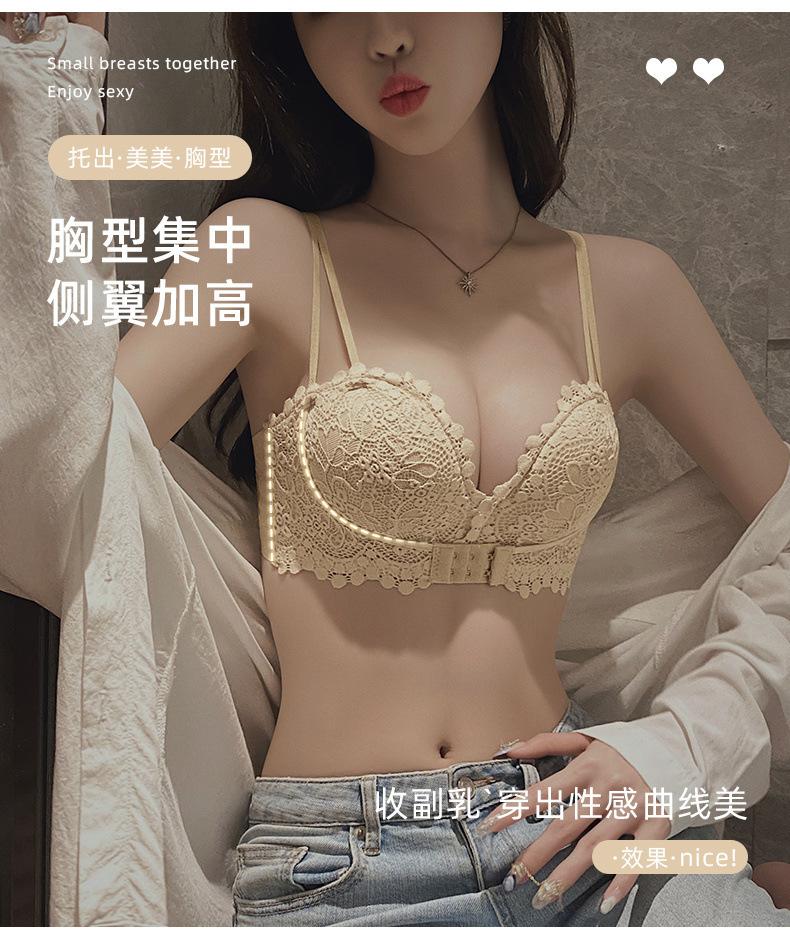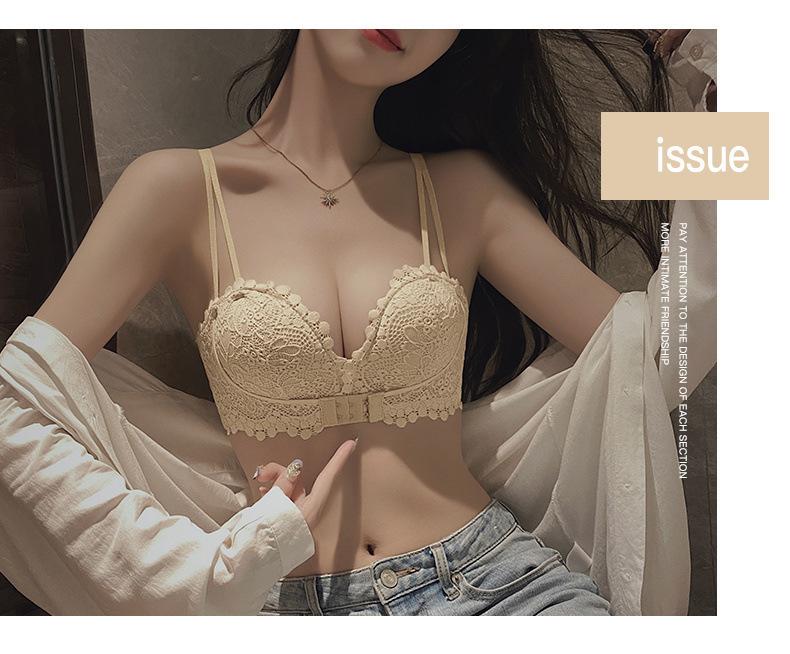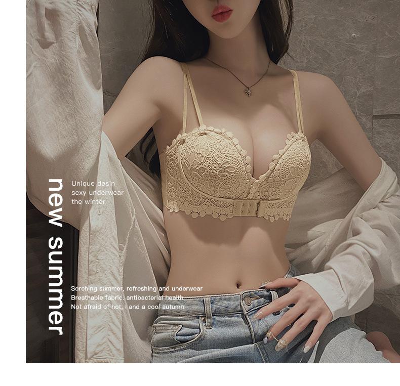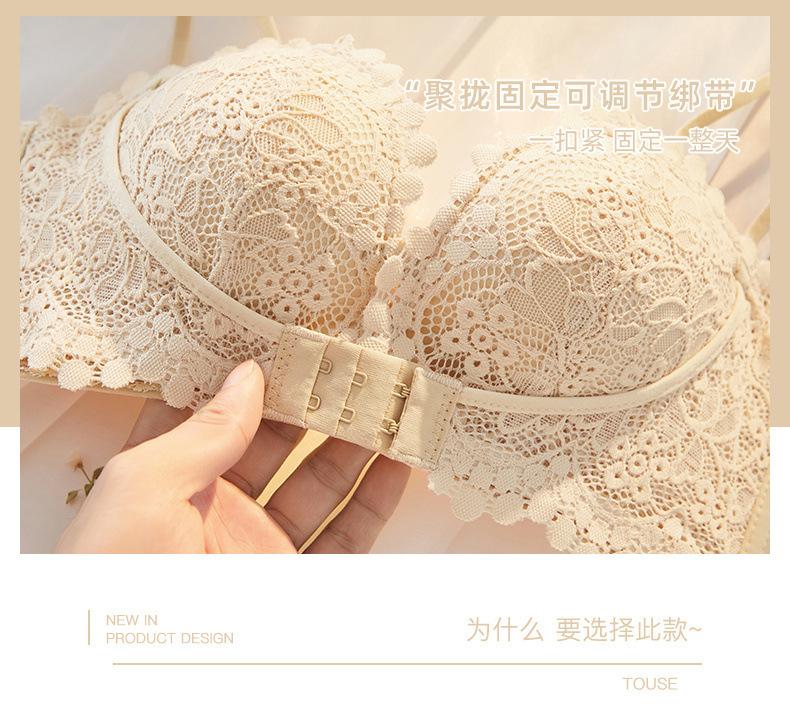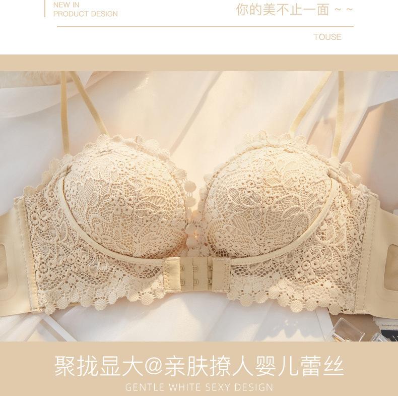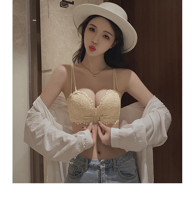 Lencería Sexy de Encaje para Mujeres con Pechos Pequeños, Pechos Grandes, Anticaída, Set de Brasier Push-Up sin Tirantes con Botón Frontal
