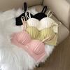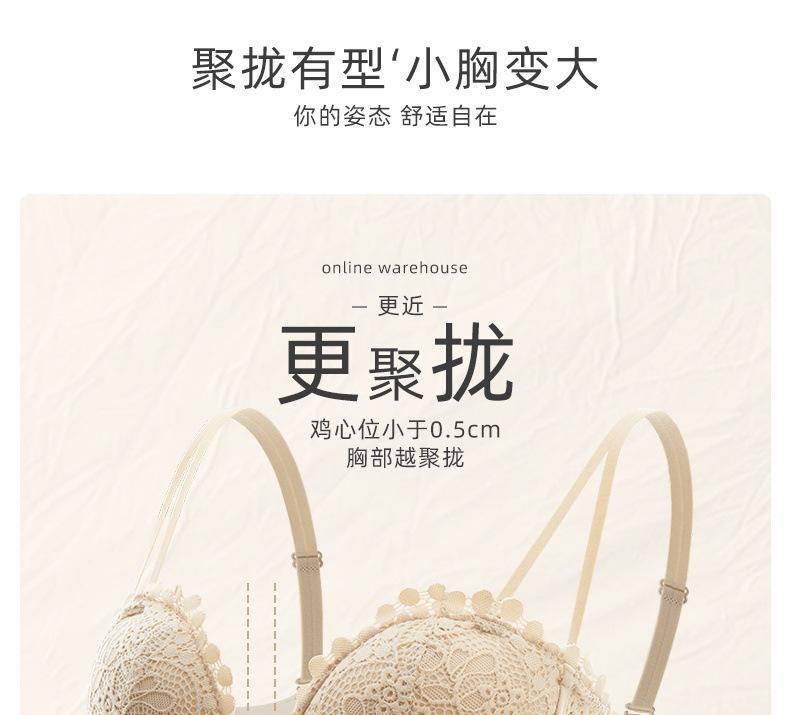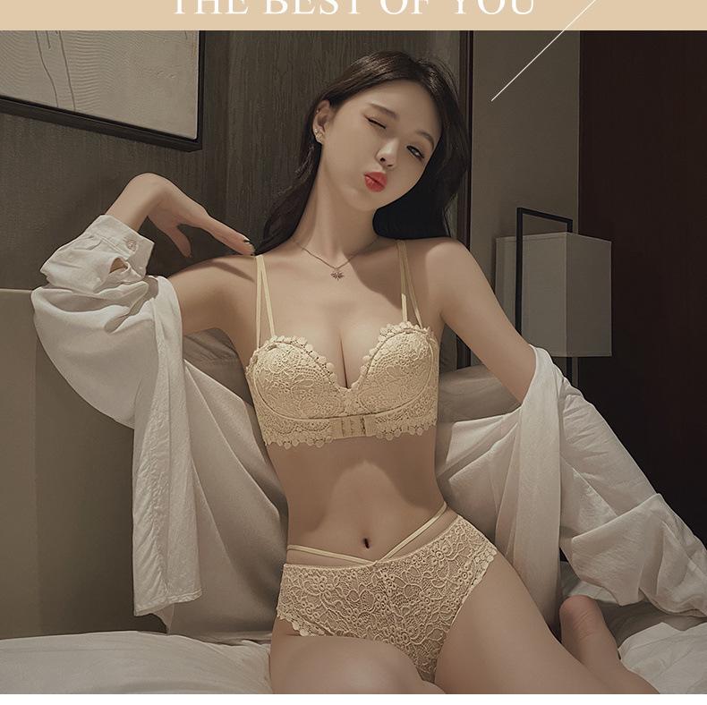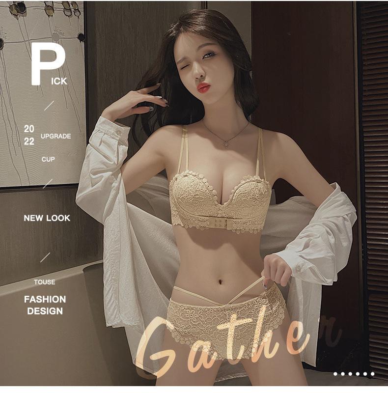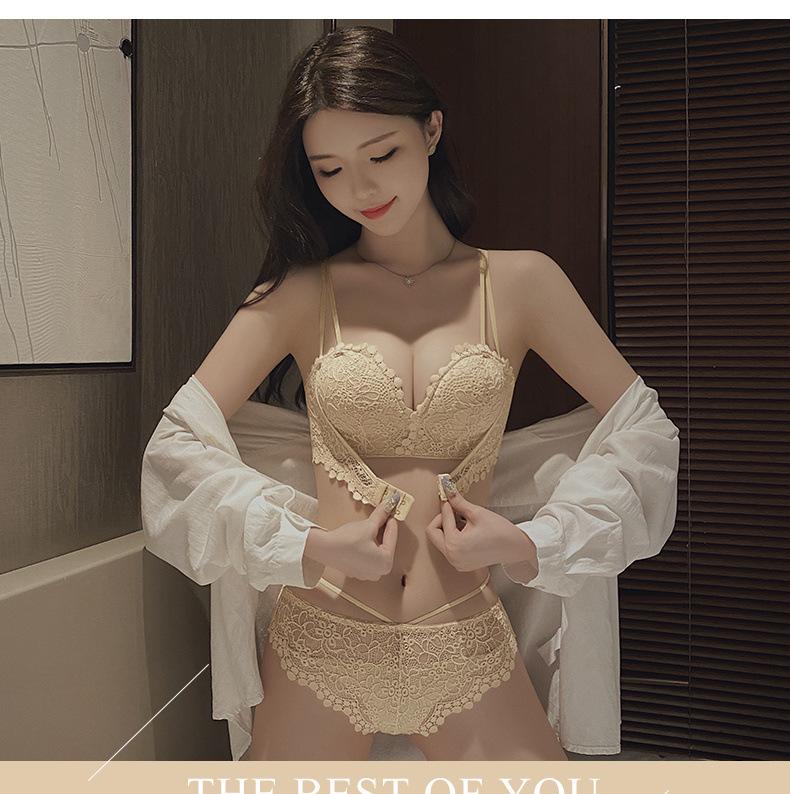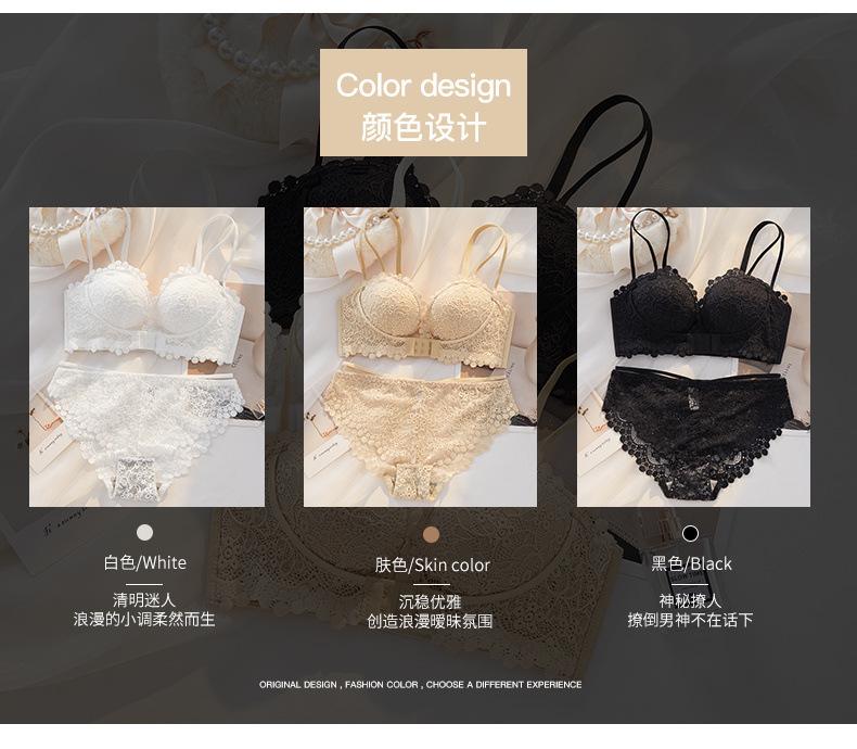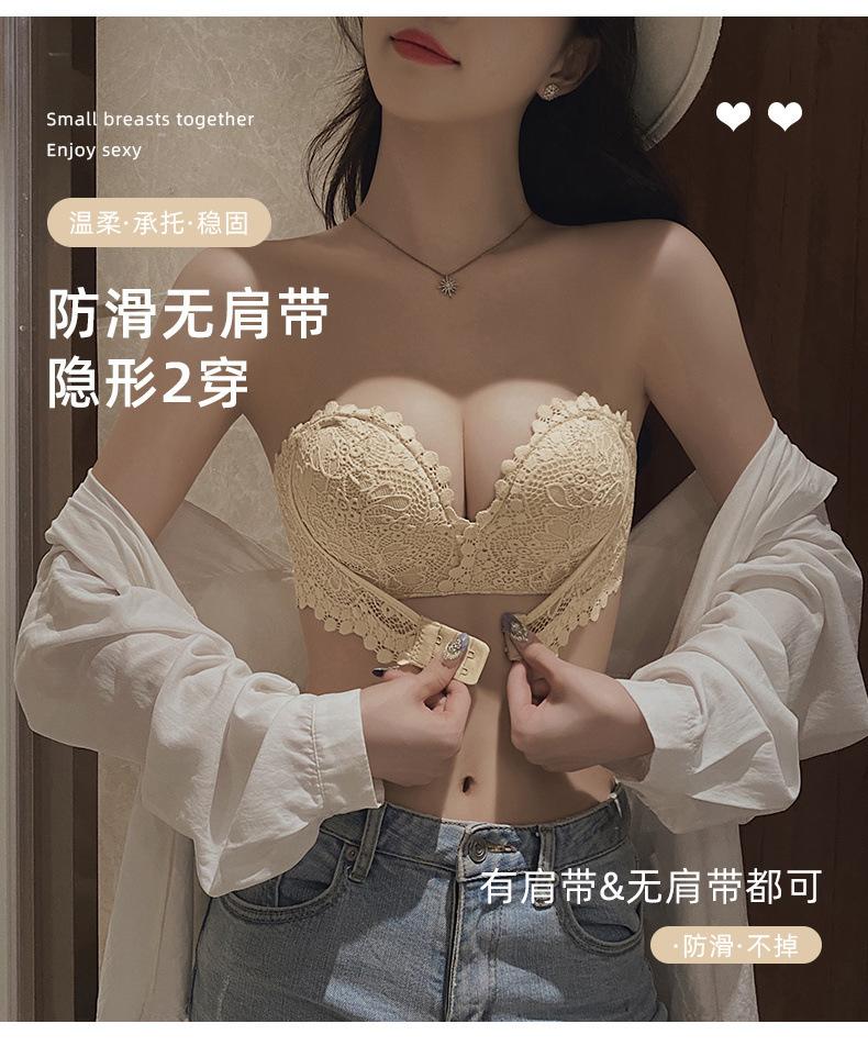 Lencería Sexy de Encaje para Mujeres con Pechos Pequeños, Pechos Grandes, Anticaída, Set de Brasier Push-Up sin Tirantes con Botón Frontal