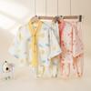 Pijamas para niños, finos, de verano, de manga larga, para niños y niñas, con dibujos animados, aire acondicionado, ropa de casa, conjunto de pijamas de primavera y otoño