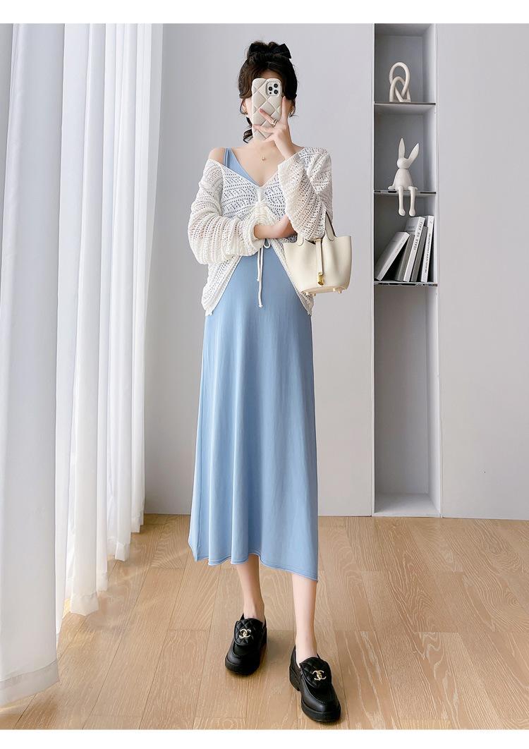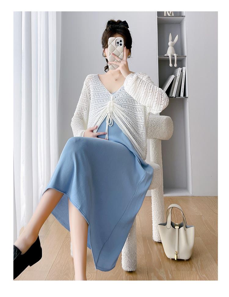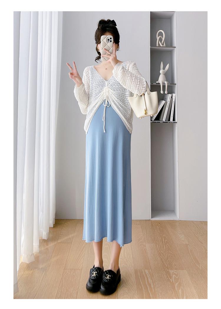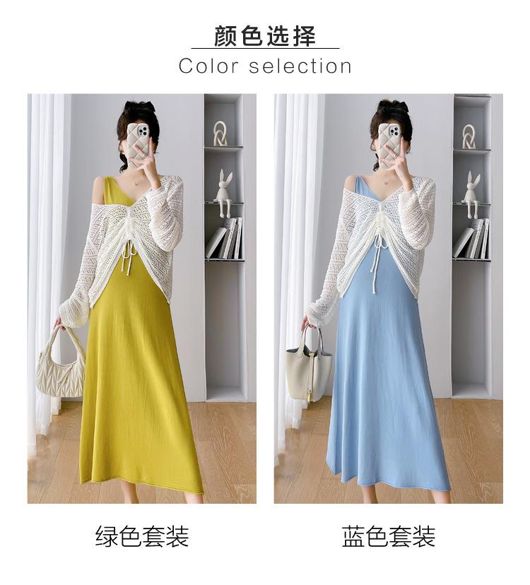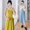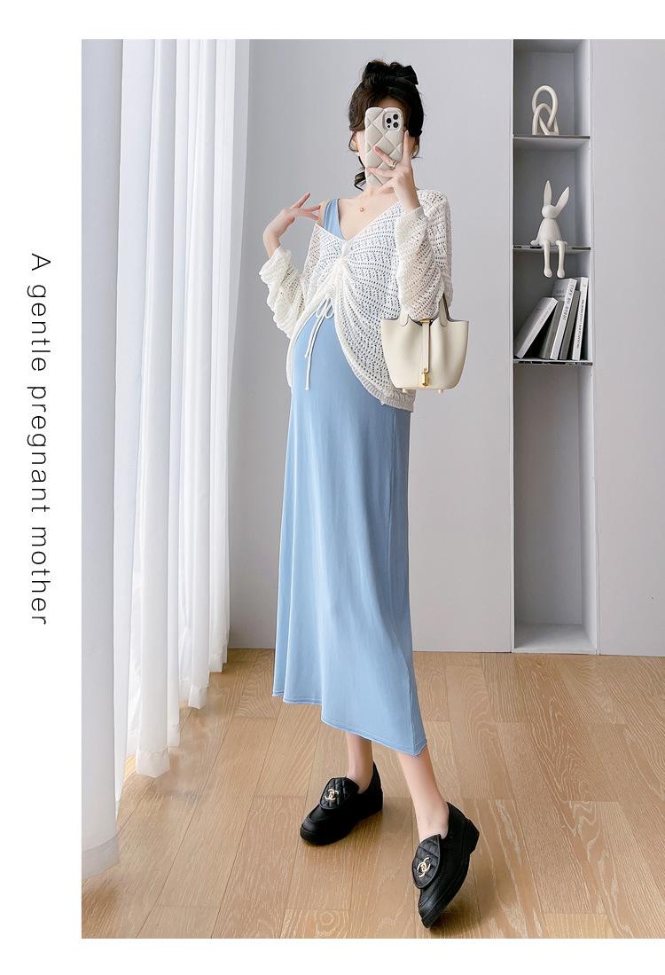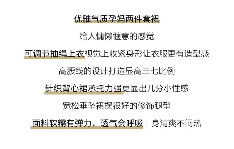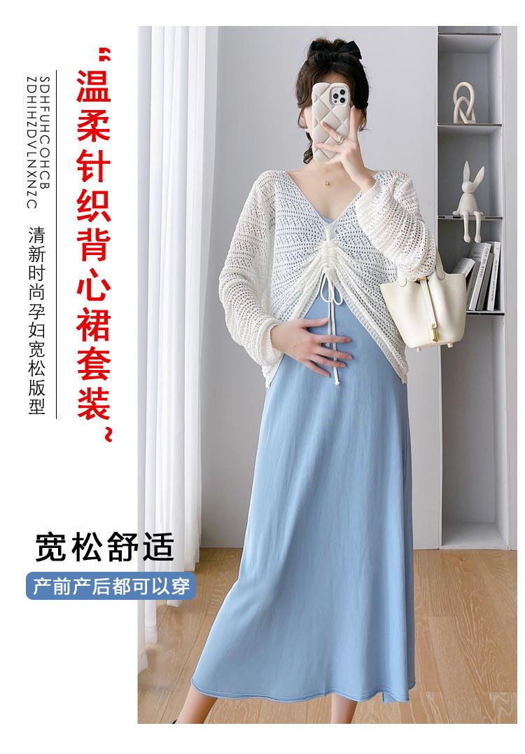 Ropa de maternidad primavera nueva dulce moda cuello en V tejido top falda con tirantes conjunto de dos piezas vestido suelto para embarazadas