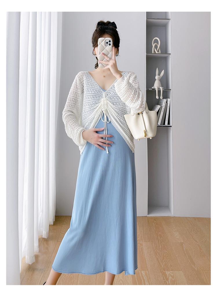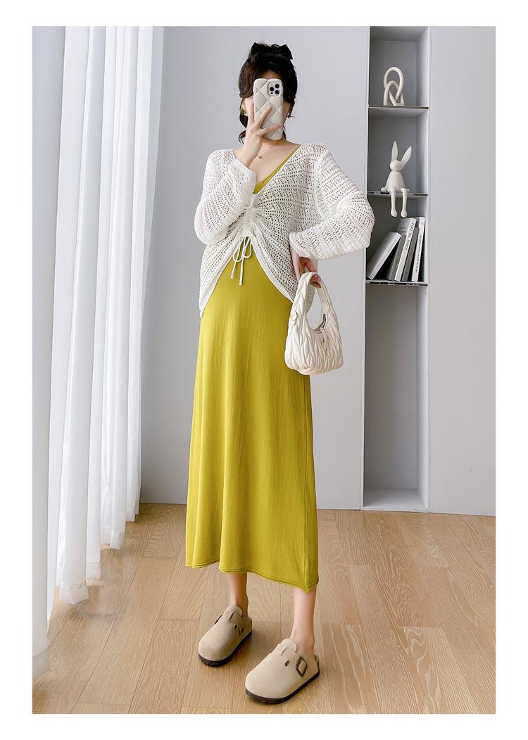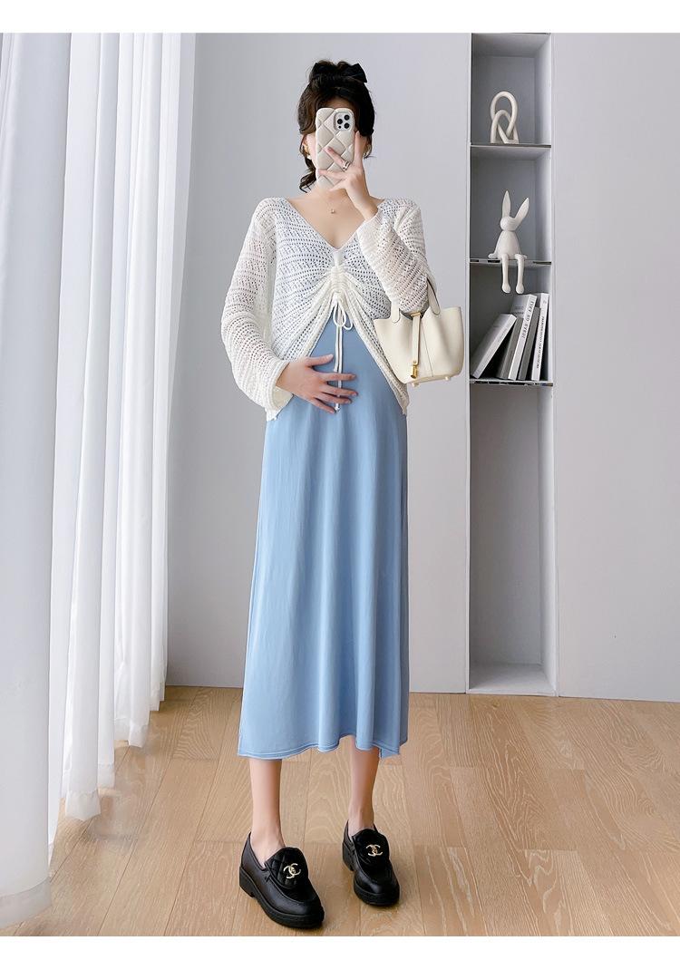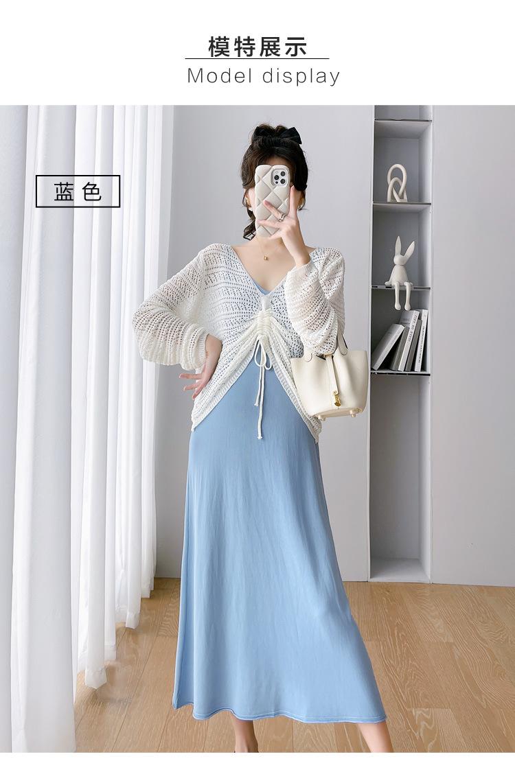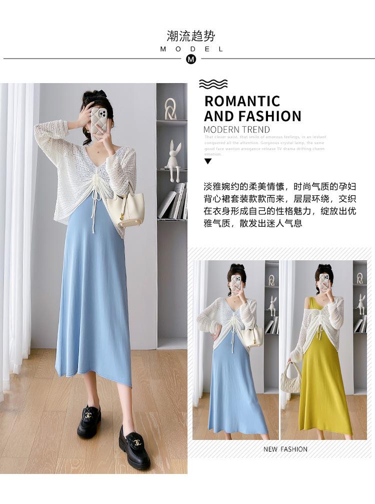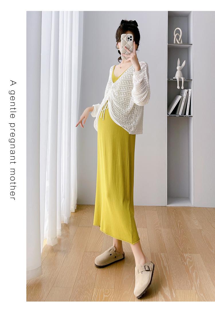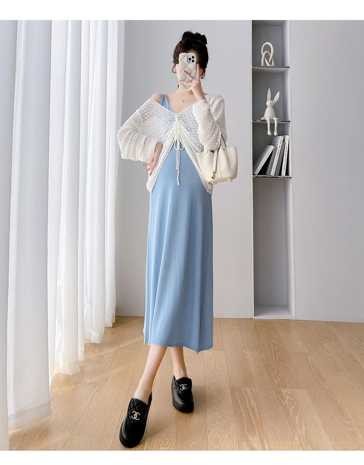 Ropa de maternidad primavera nueva dulce moda cuello en V tejido top falda con tirantes conjunto de dos piezas vestido suelto para embarazadas