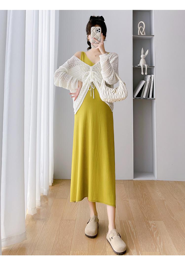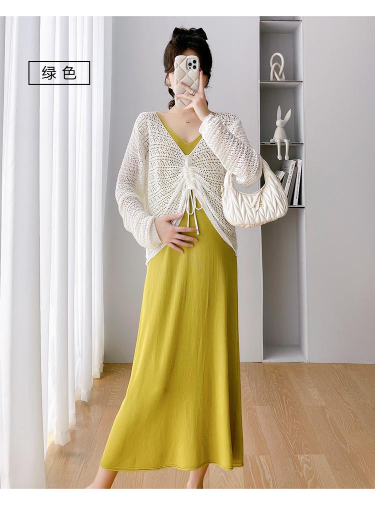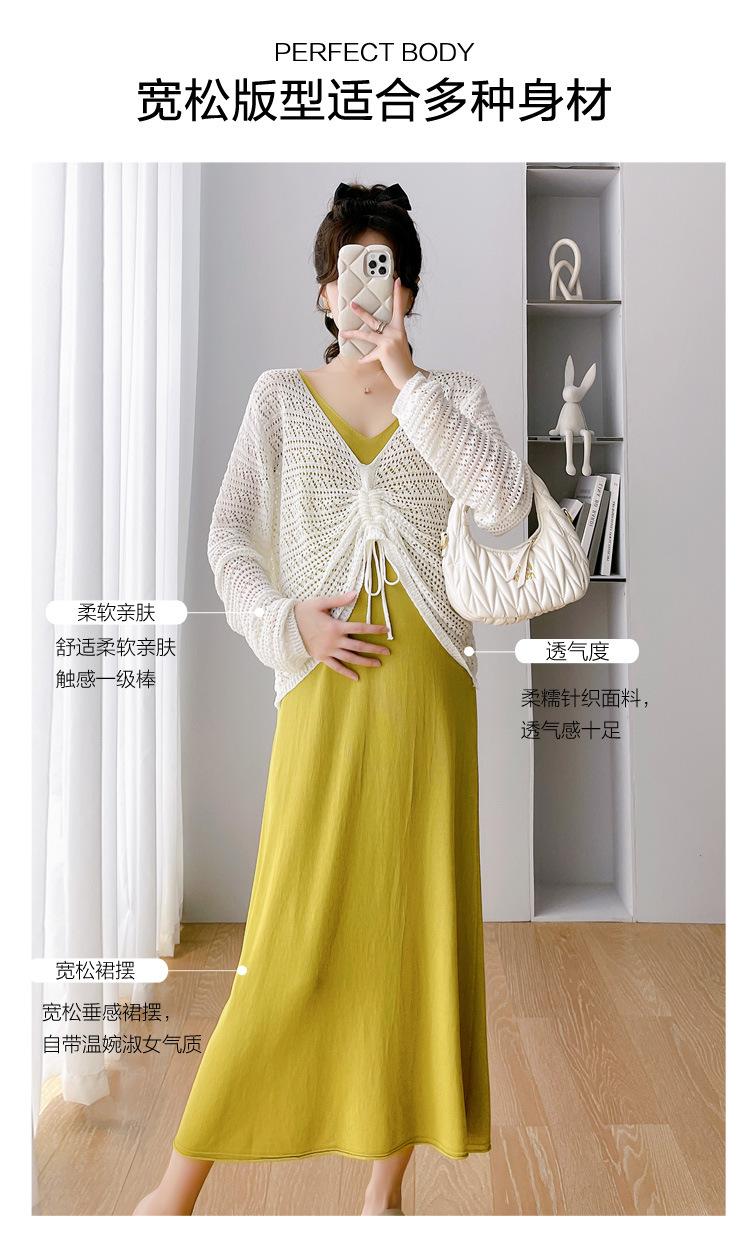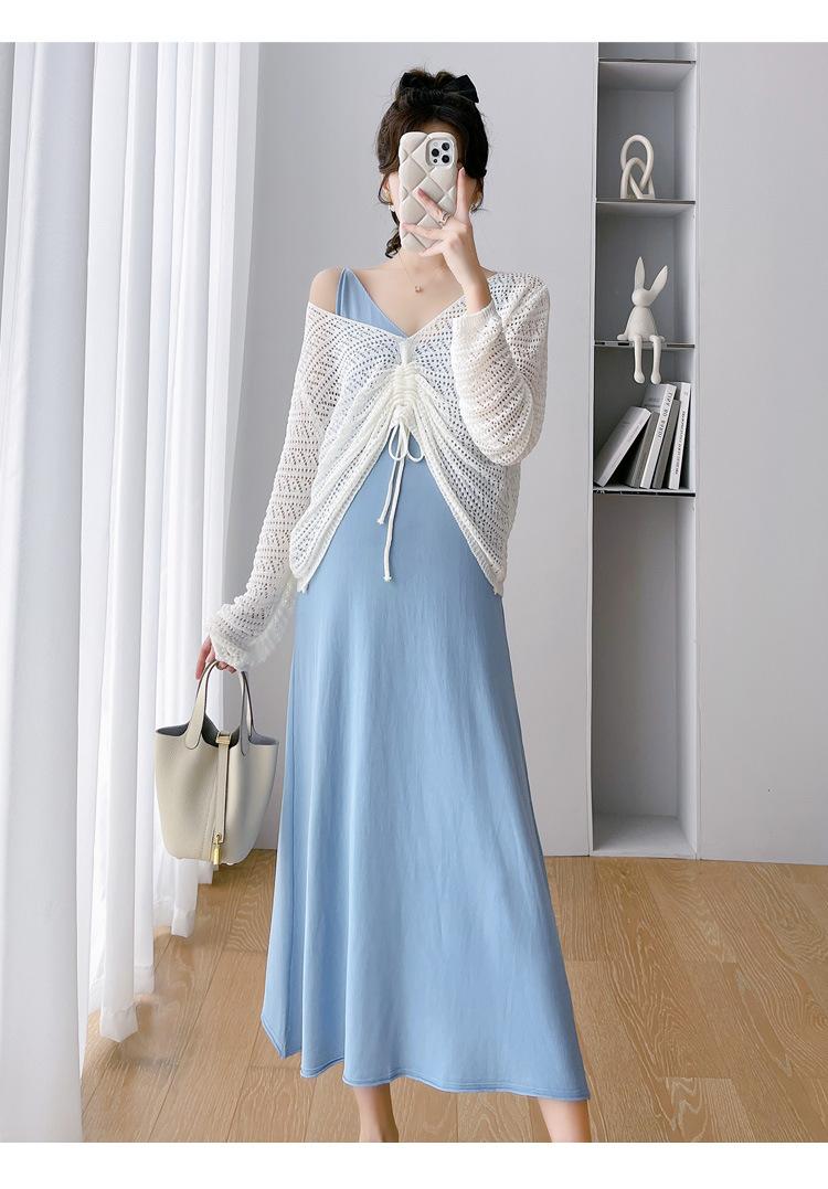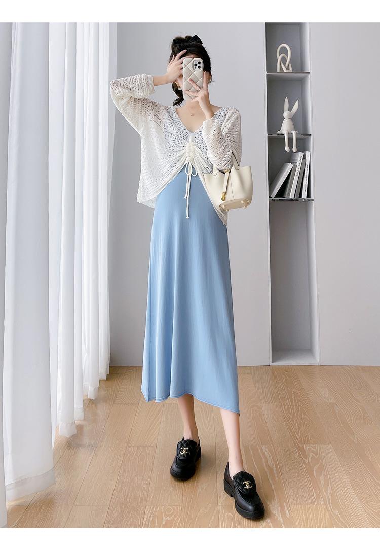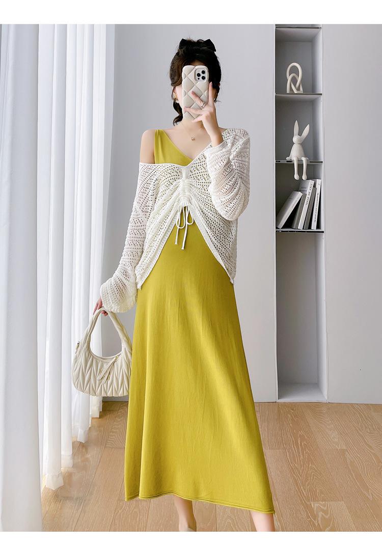 Ropa de maternidad primavera nueva dulce moda cuello en V tejido top falda con tirantes conjunto de dos piezas vestido suelto para embarazadas