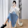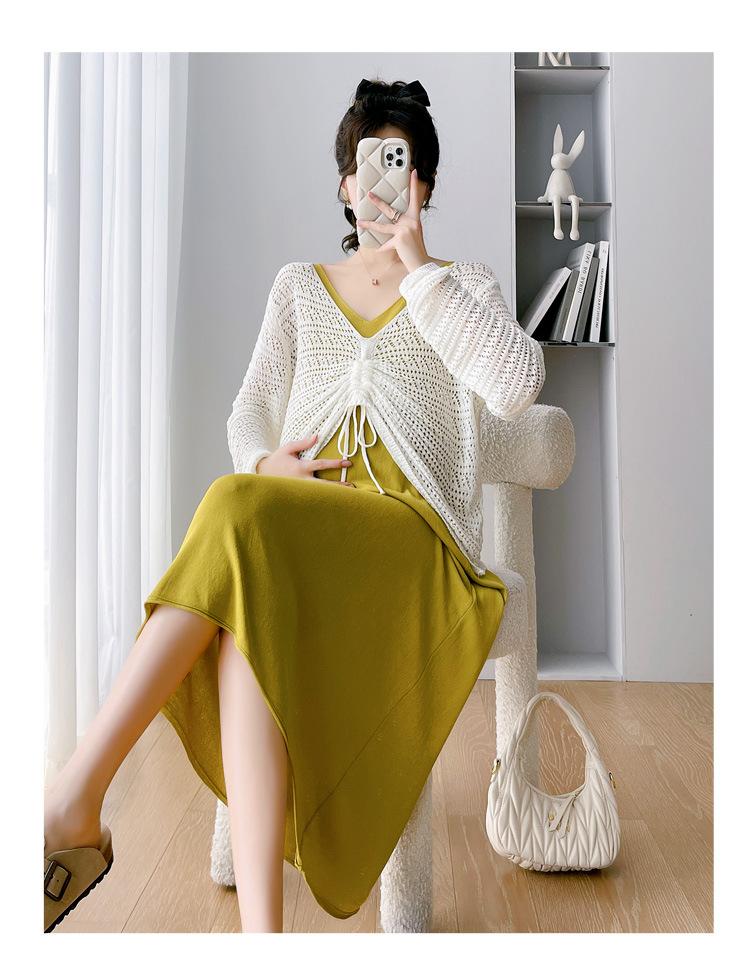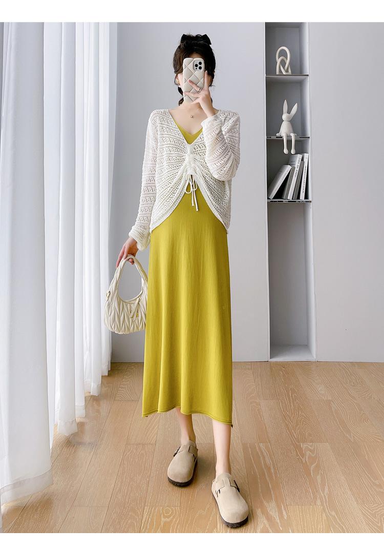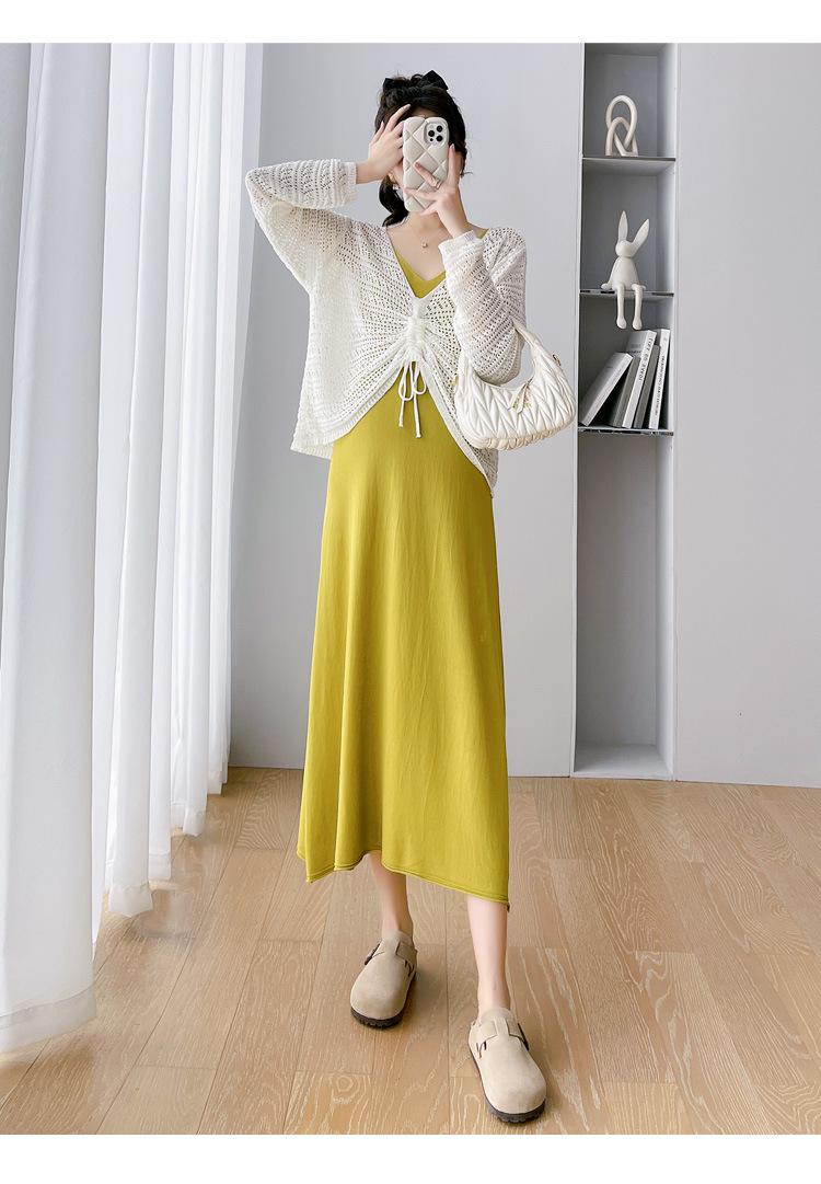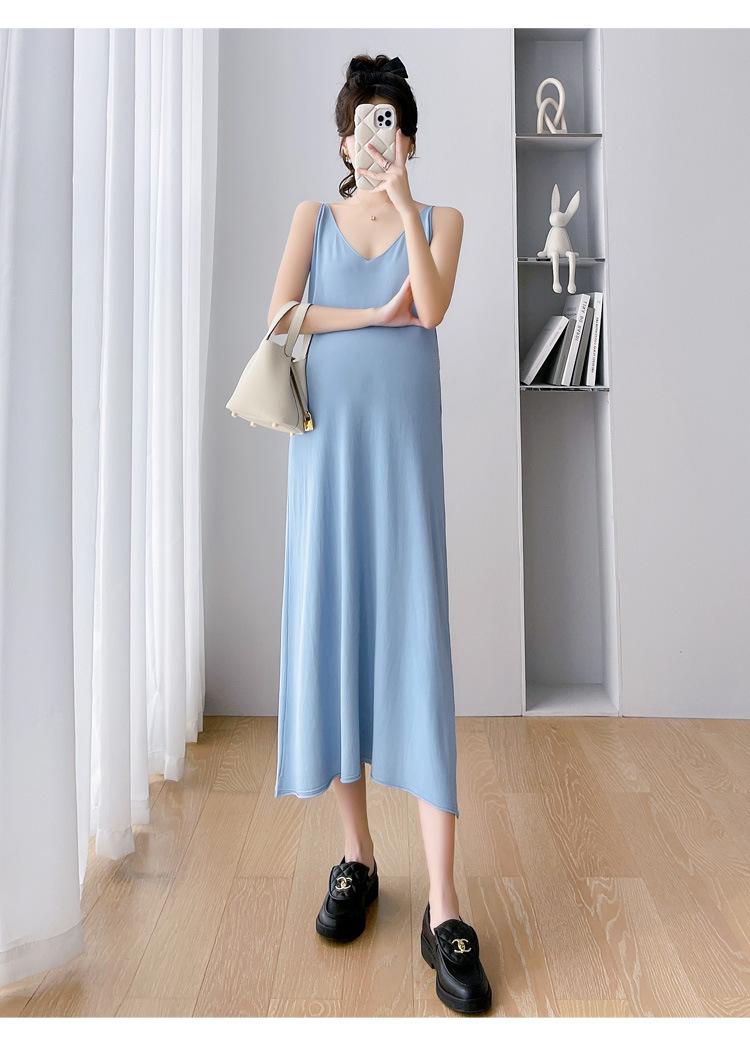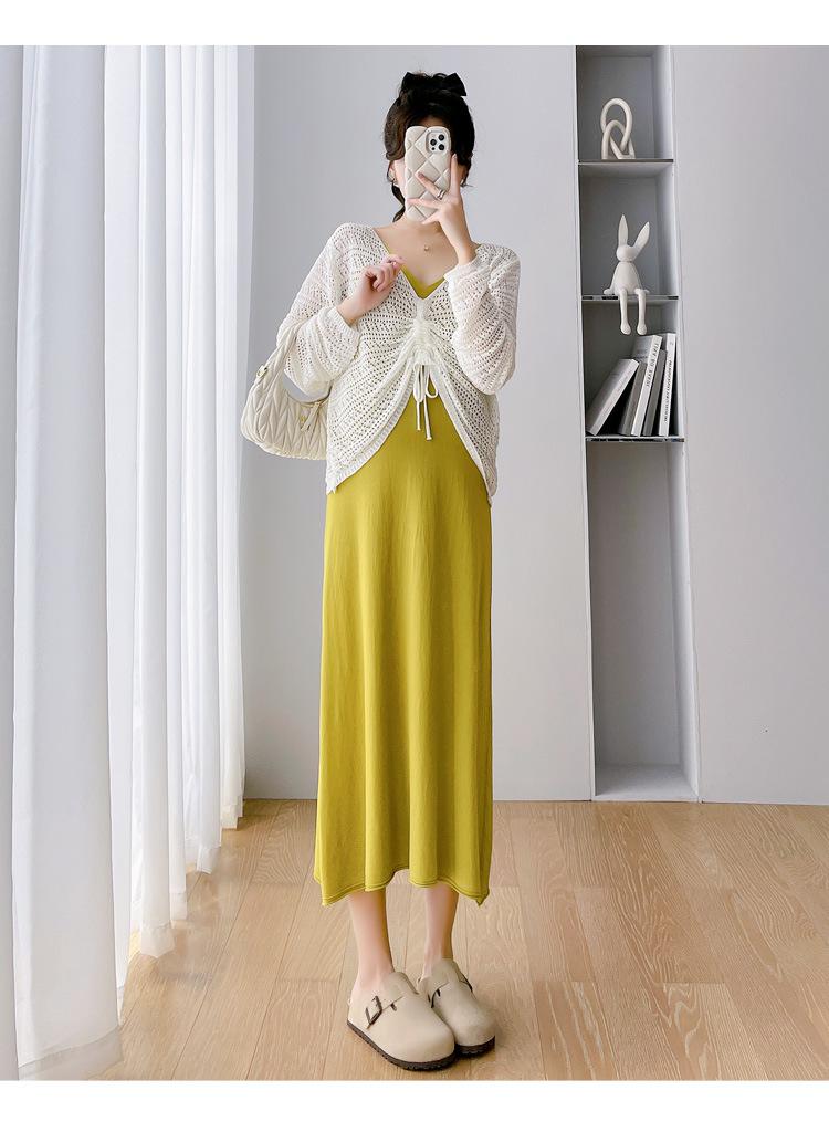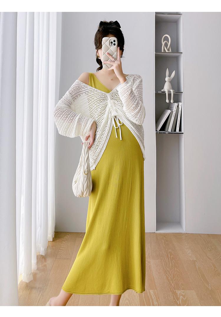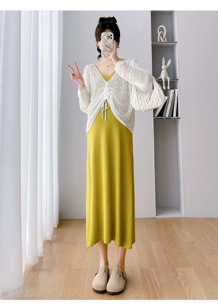 Ropa de maternidad primavera nueva dulce moda cuello en V tejido top falda con tirantes conjunto de dos piezas vestido suelto para embarazadas